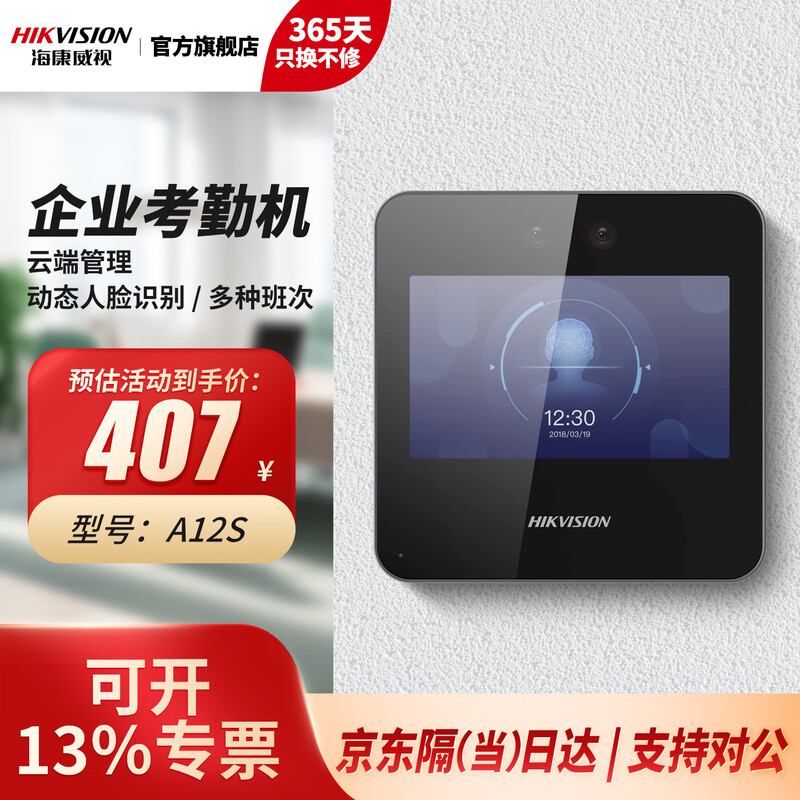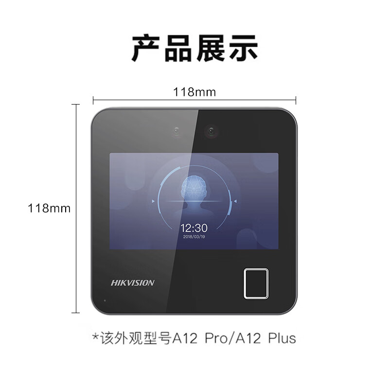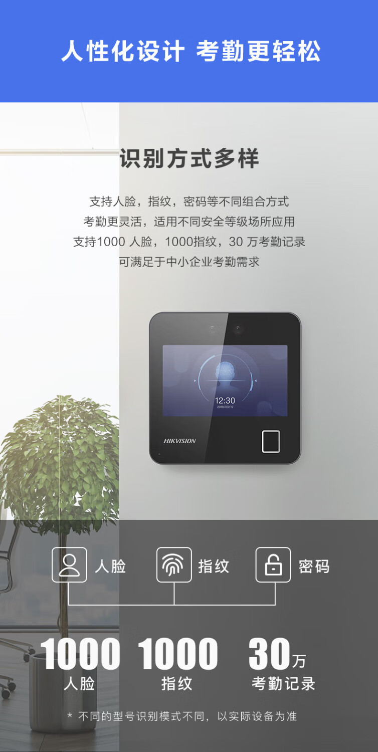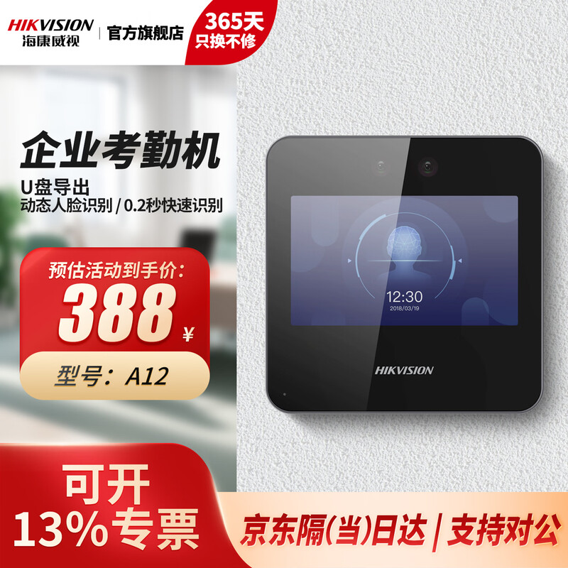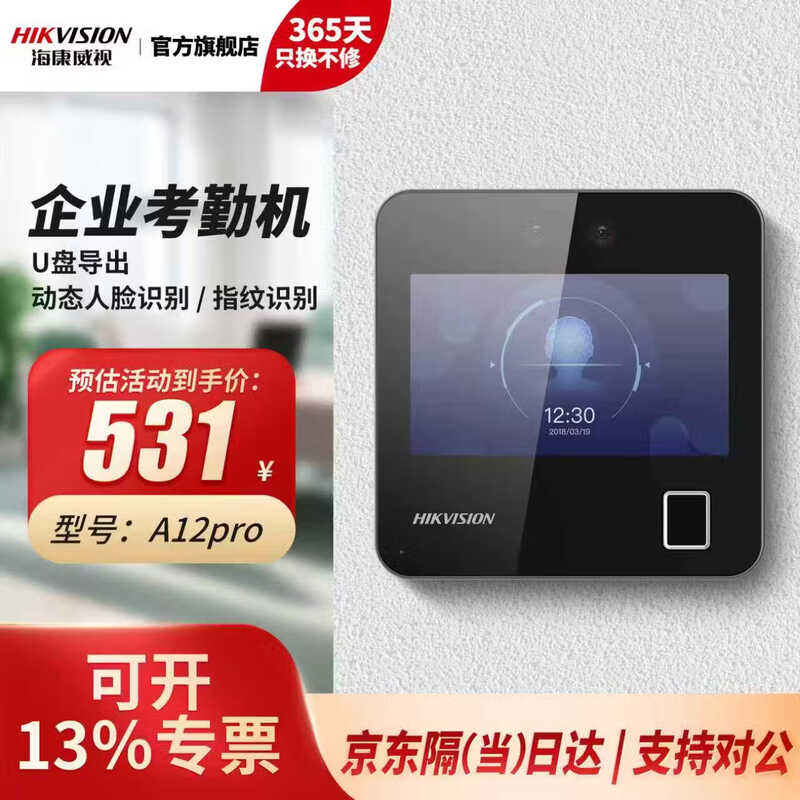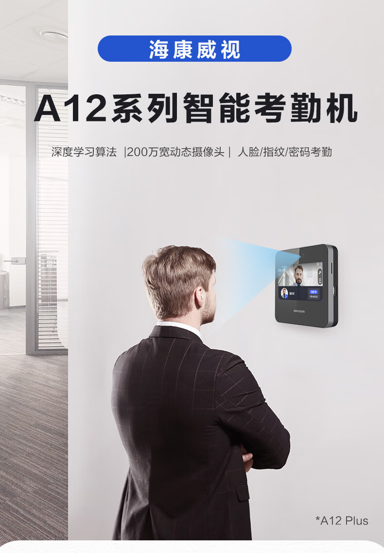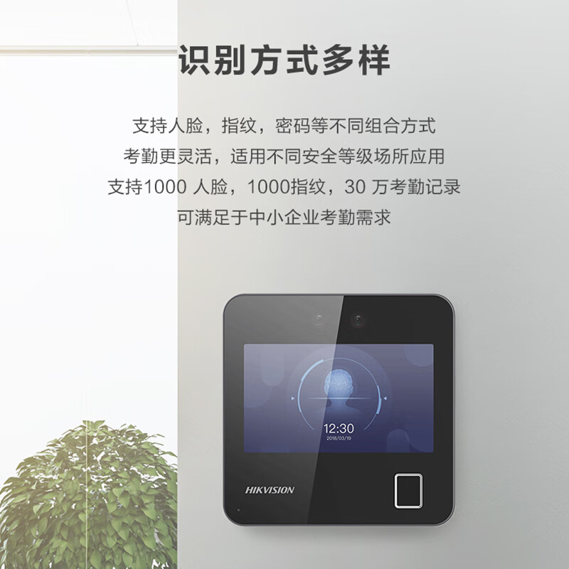 海康威视(HIKVISION) 动态人脸识别考勤打卡机 人脸指纹密码打卡机 公司企业办公室员工签到打卡A12
