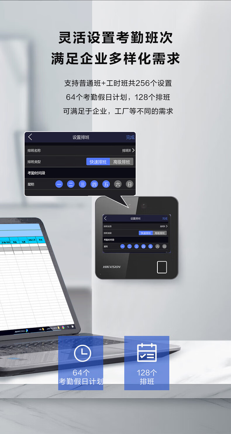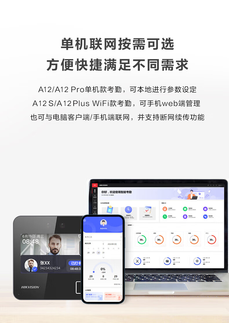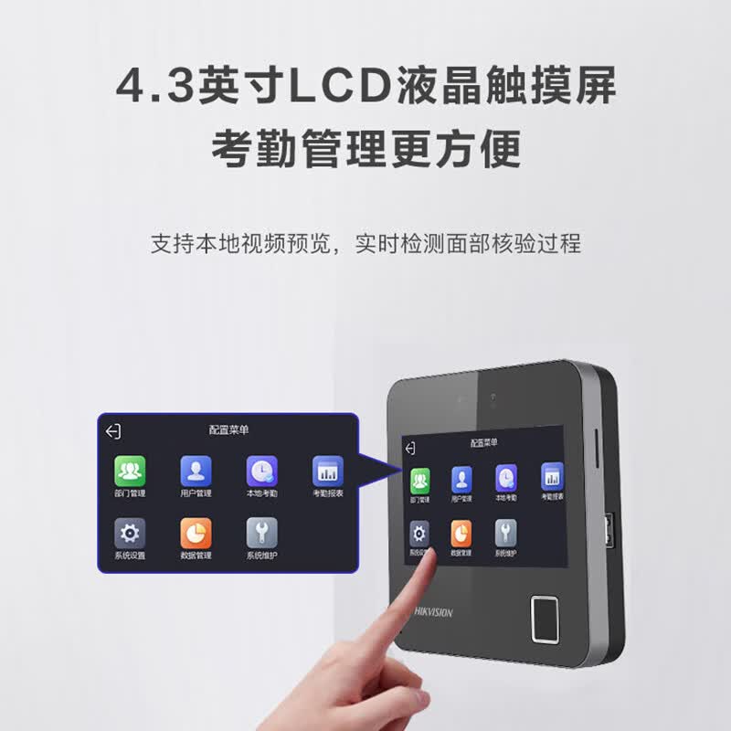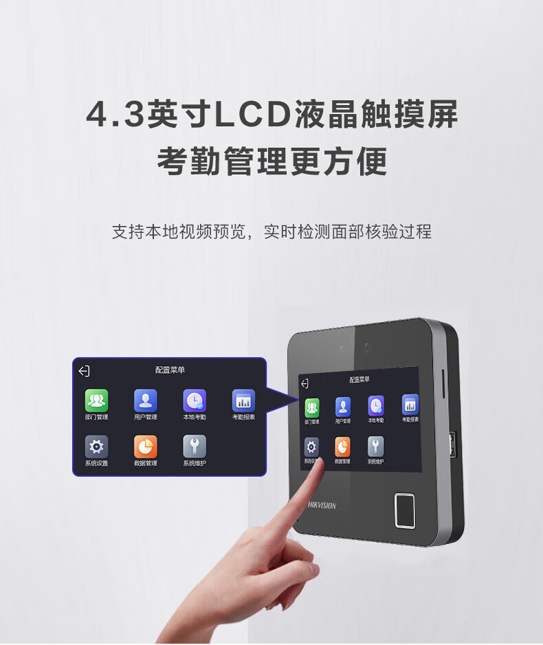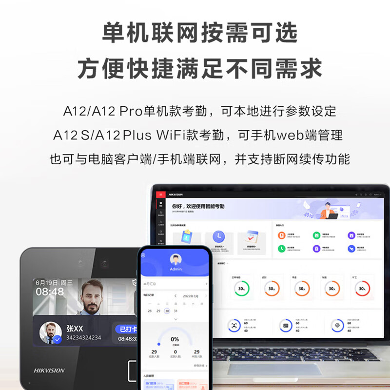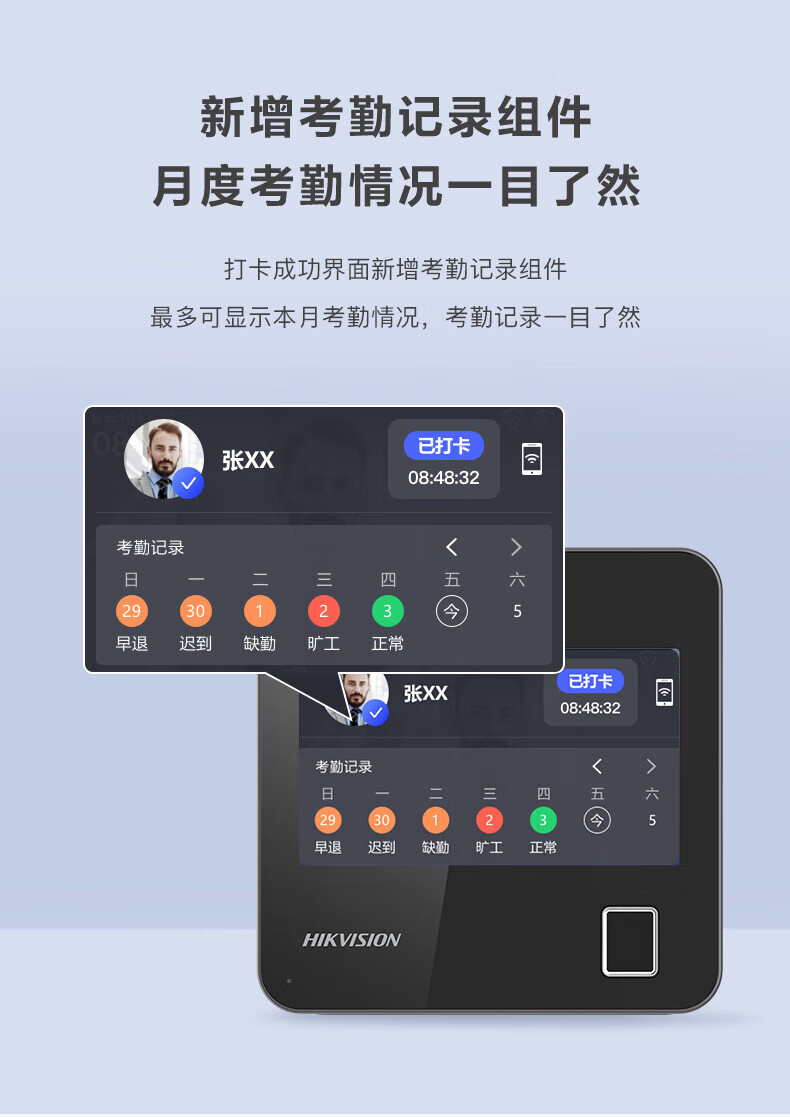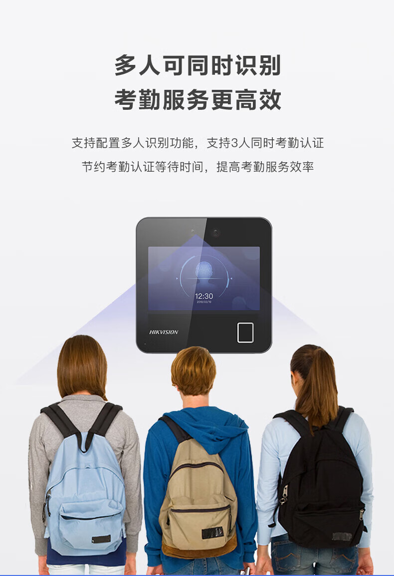 海康威视(HIKVISION) 动态人脸识别考勤打卡机 人脸指纹密码打卡机 公司企业办公室员工签到打卡A12