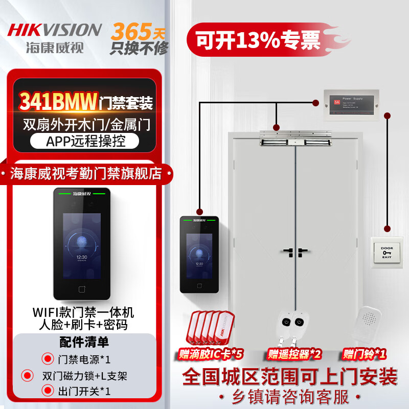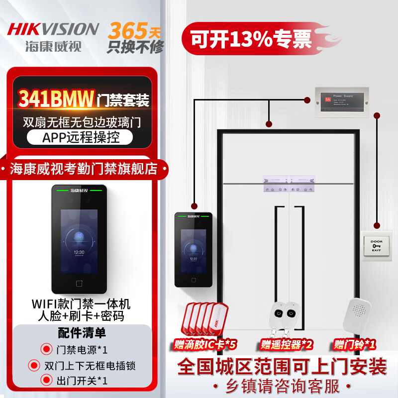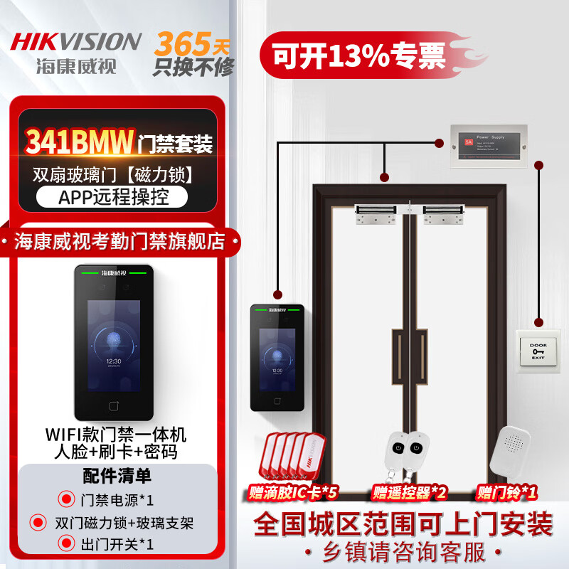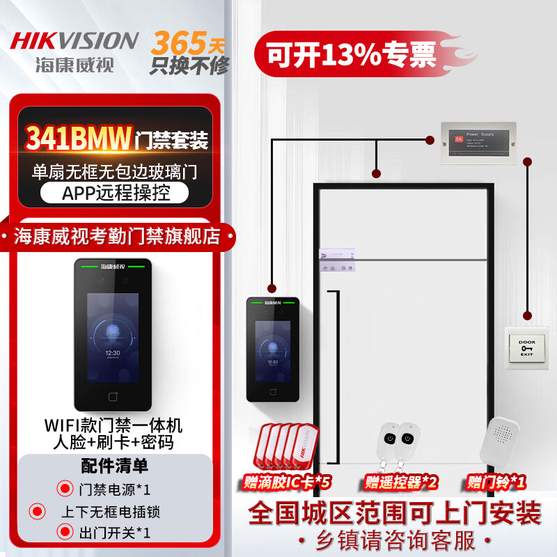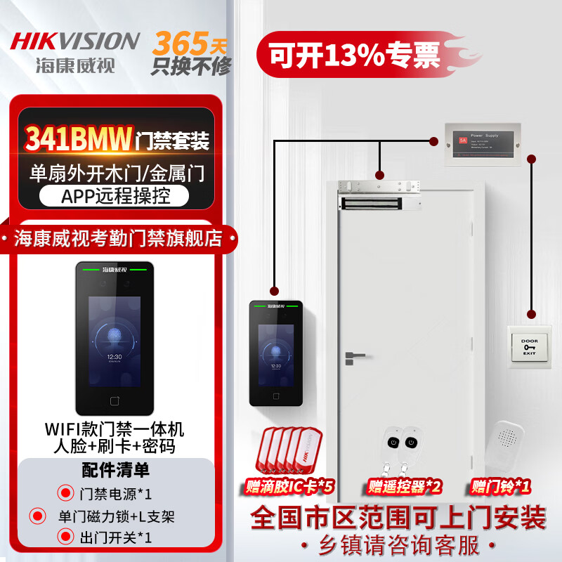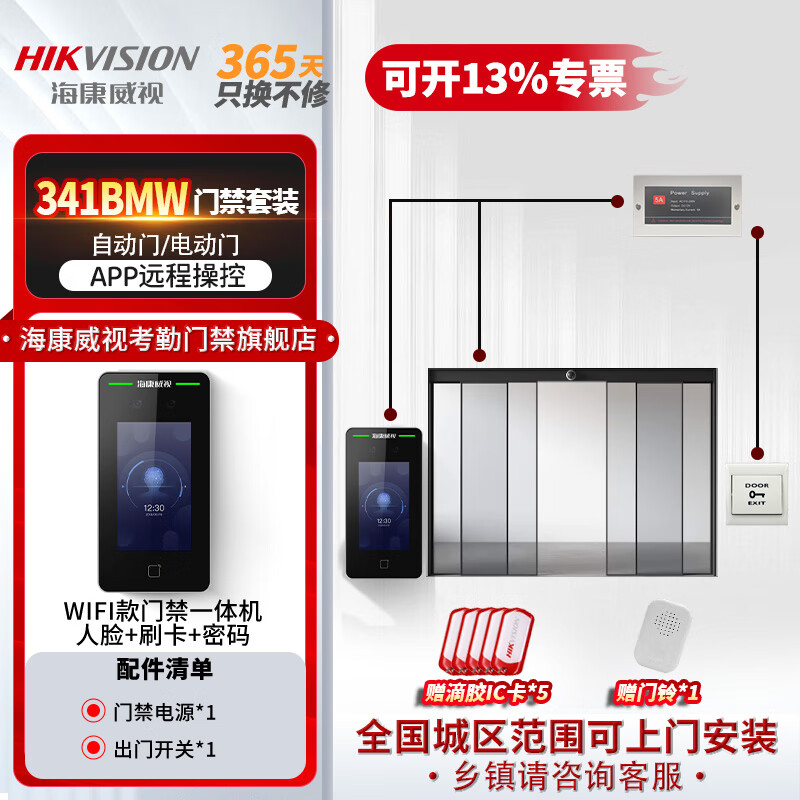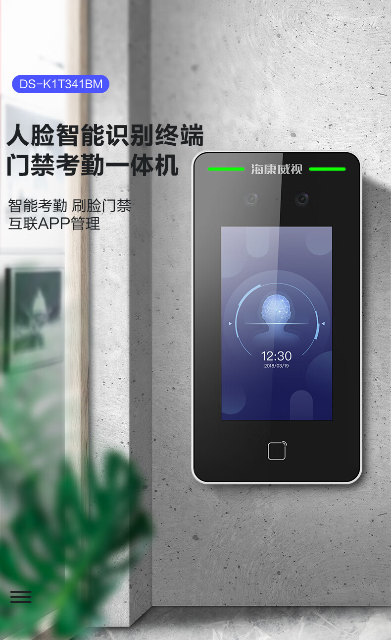海康威视(HIKVISION)动态人脸识别门禁考勤一体机上班打卡工厂企业别墅公寓可视对讲刷卡门禁一体机341BM