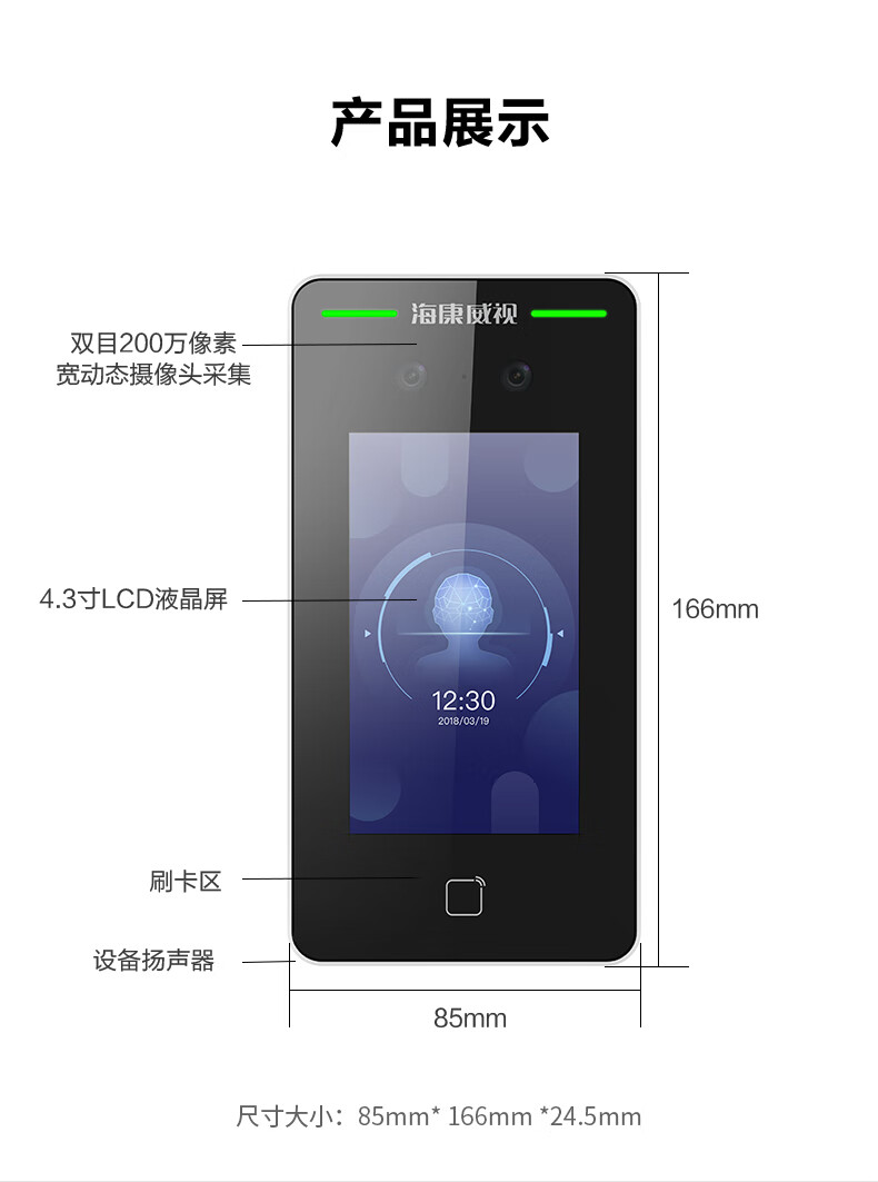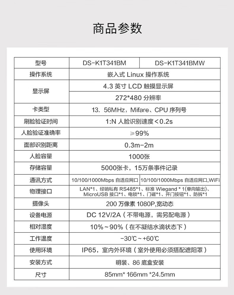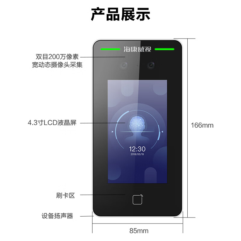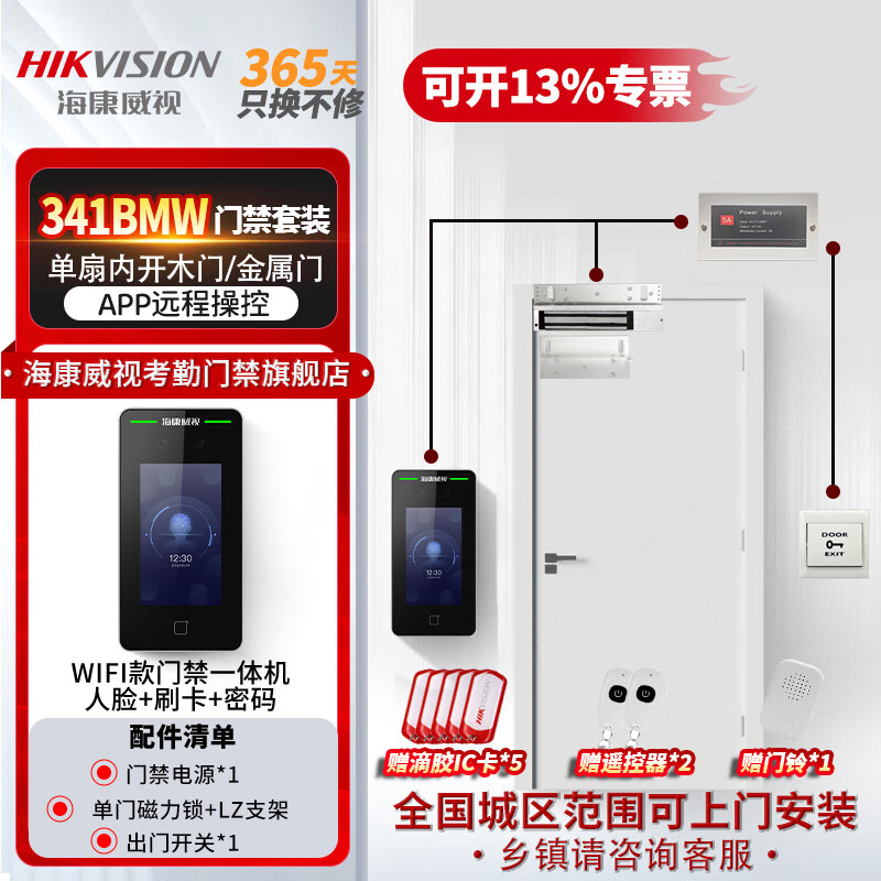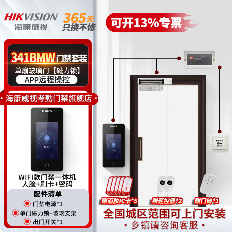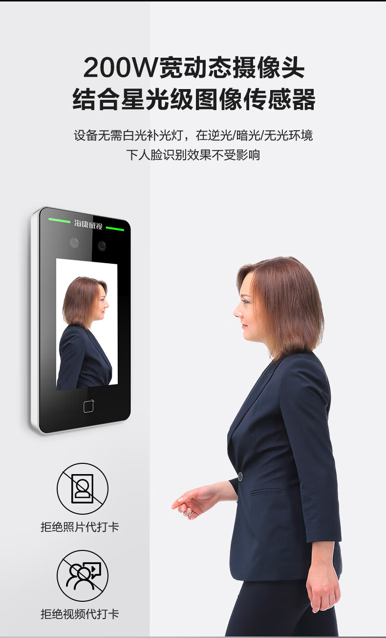 海康威视(HIKVISION)动态人脸识别门禁考勤一体机上班打卡工厂企业别墅公寓可视对讲刷卡门禁一体机341BM