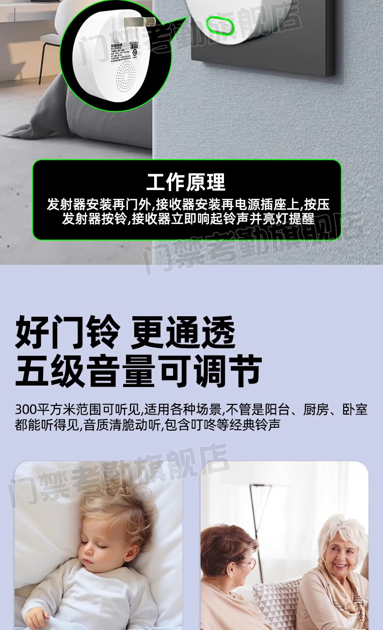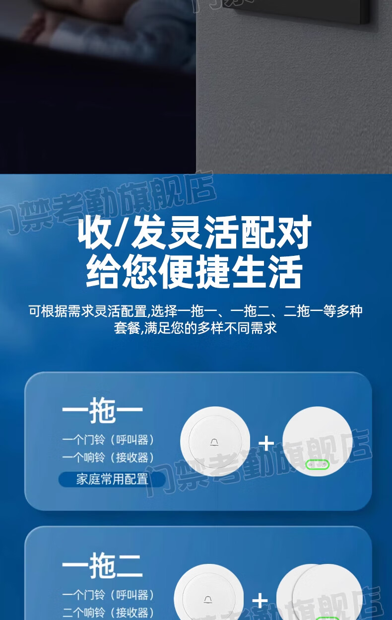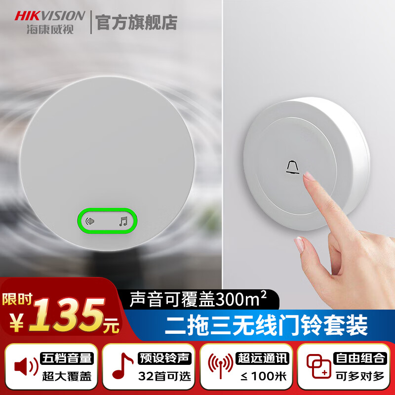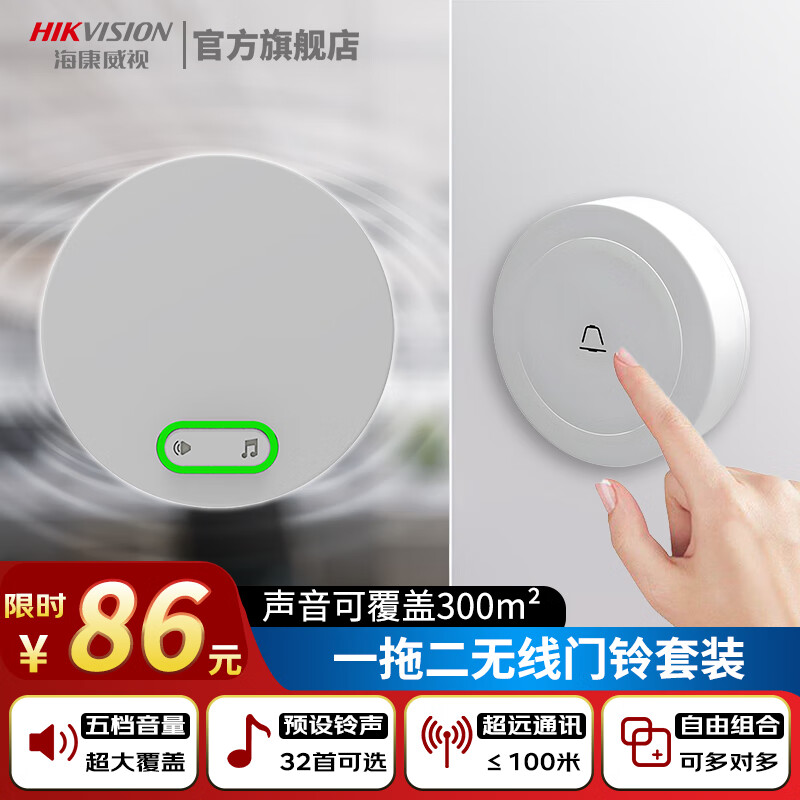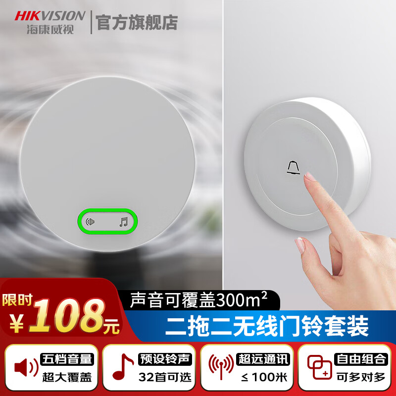 海康威视门铃家用无线远距离门玲免插电入户叮咚门钟老人呼叫器
