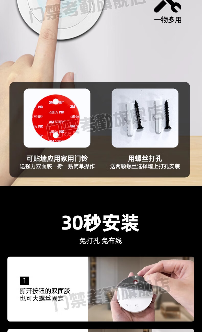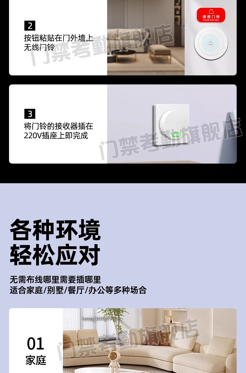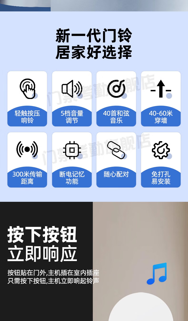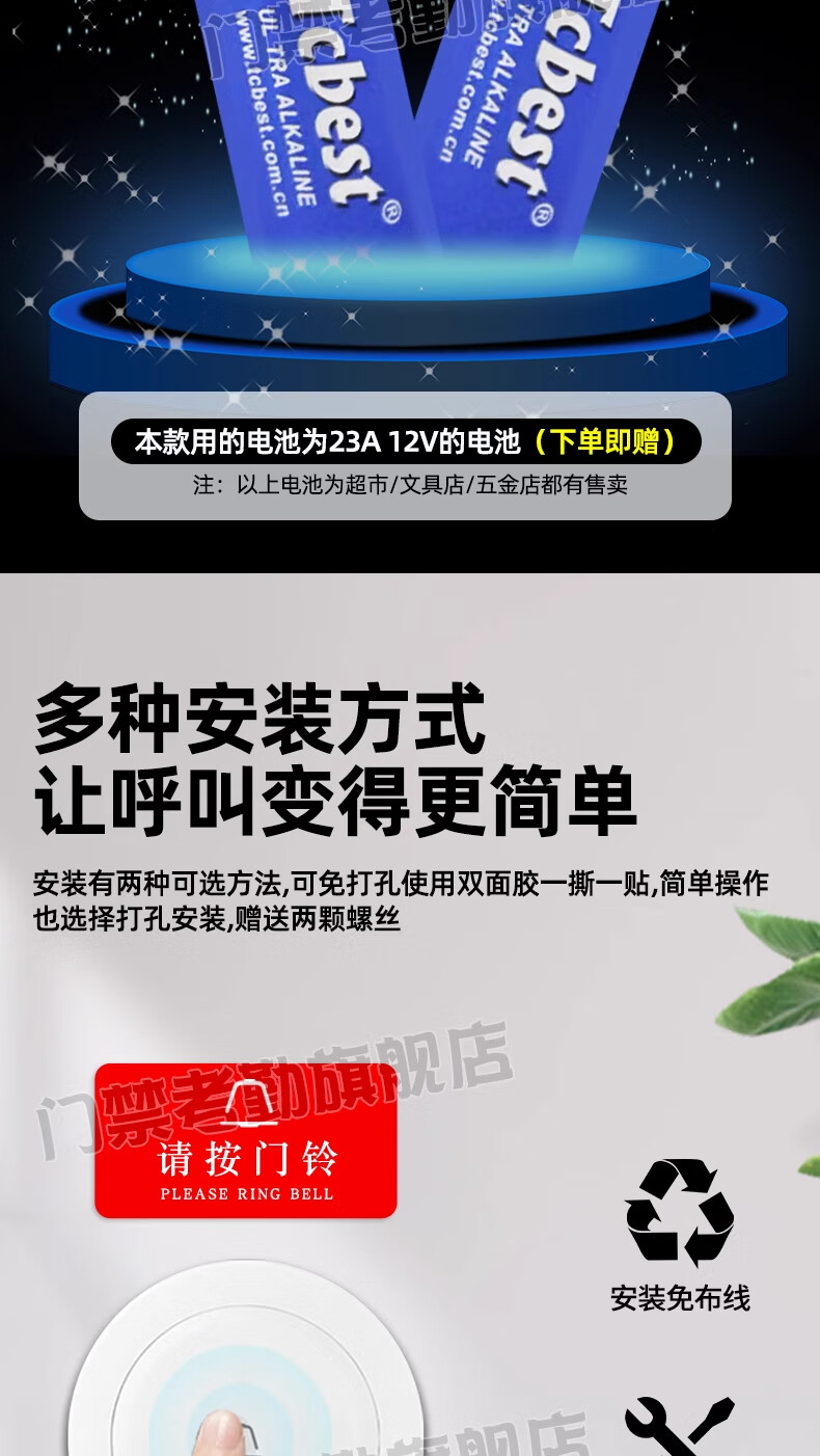 海康威视门铃家用无线远距离门玲免插电入户叮咚门钟老人呼叫器