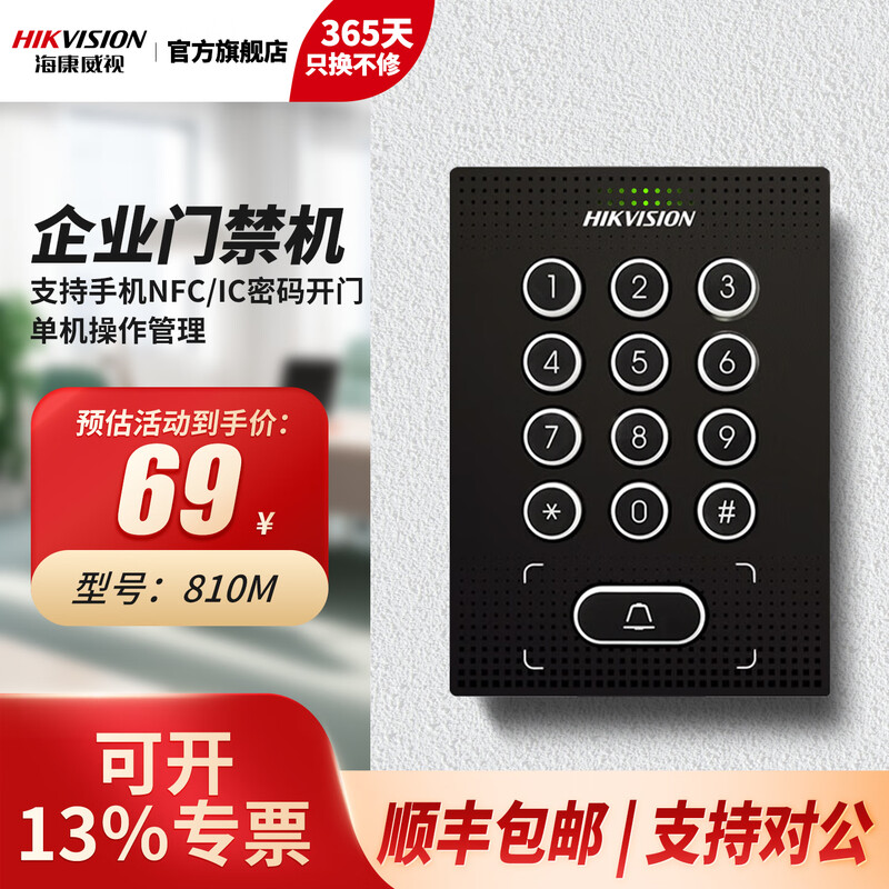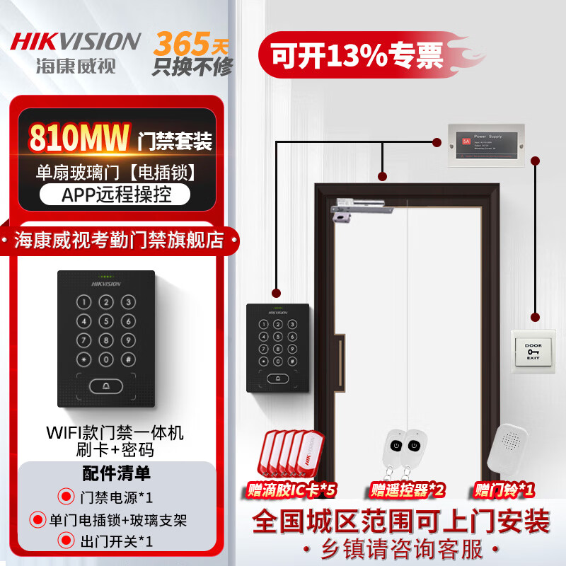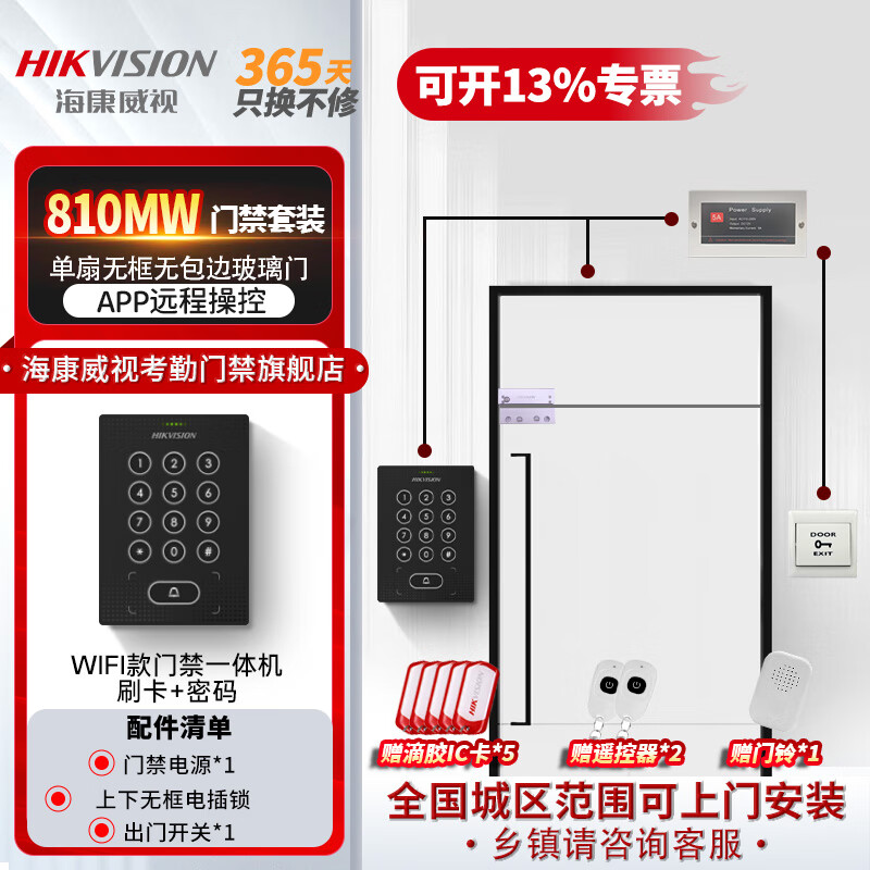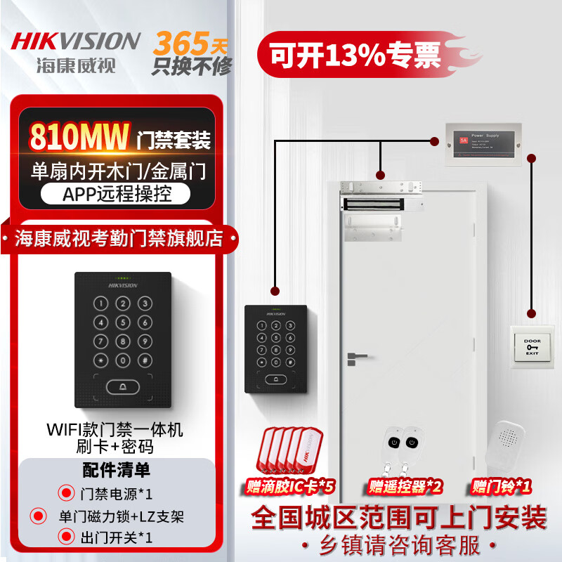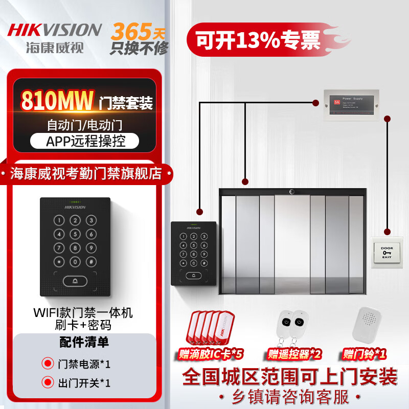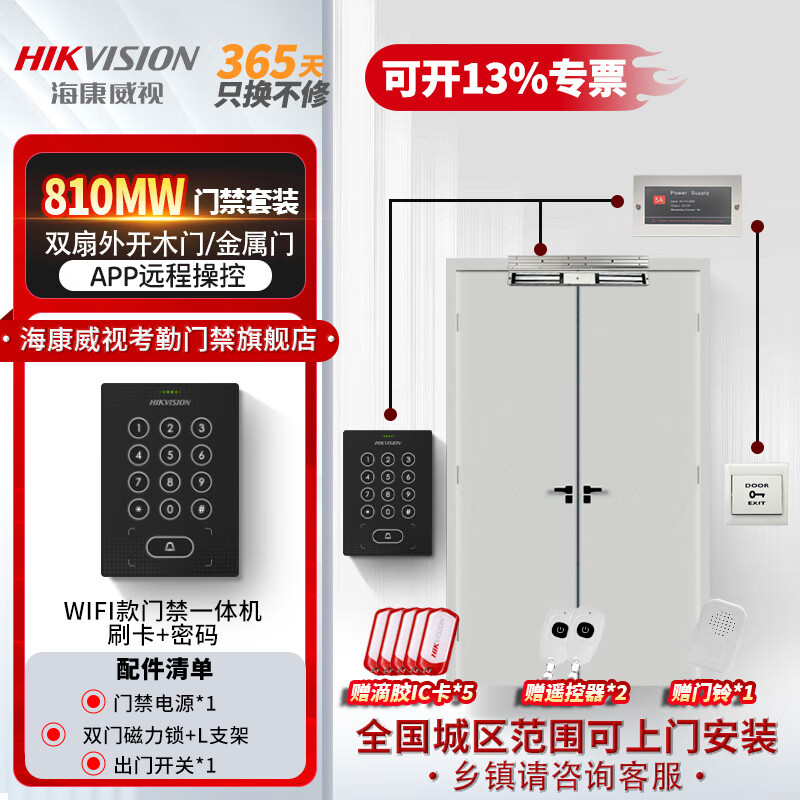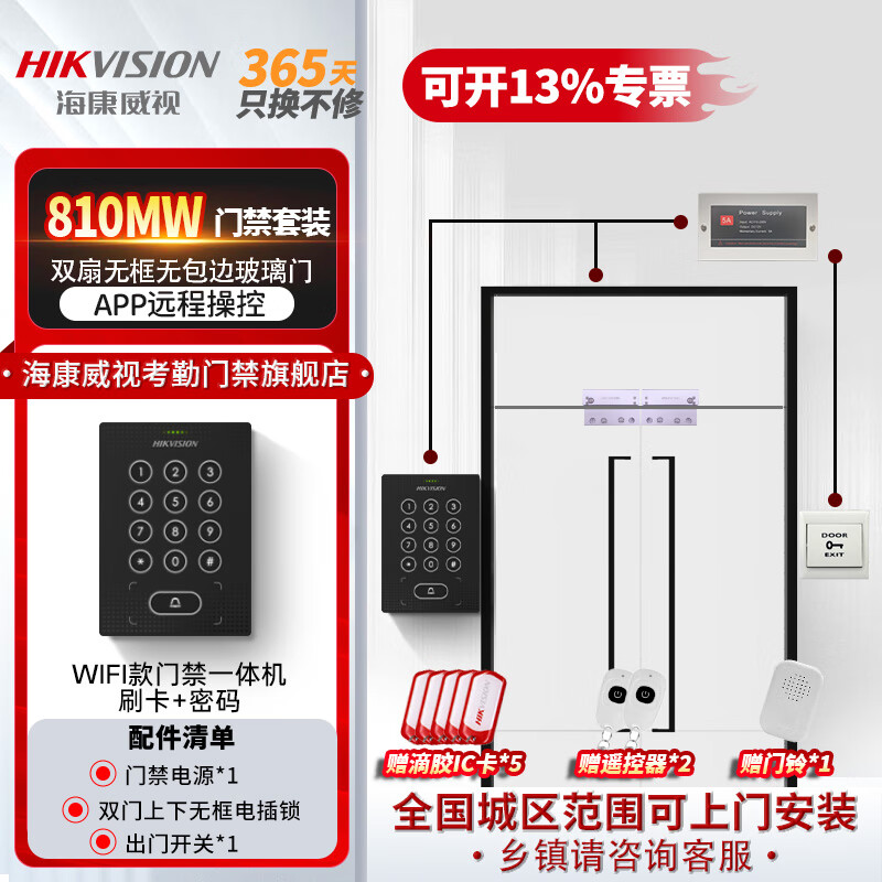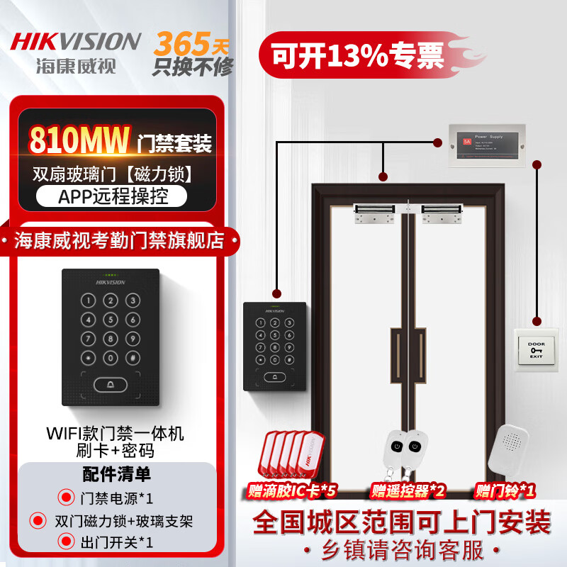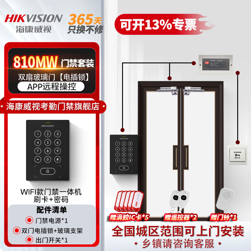 海康威视刷卡门禁一体机双开门办公室密码锁智能电子门禁系统套装WiFi版主机810MW(密码+IC刷卡+远程 W