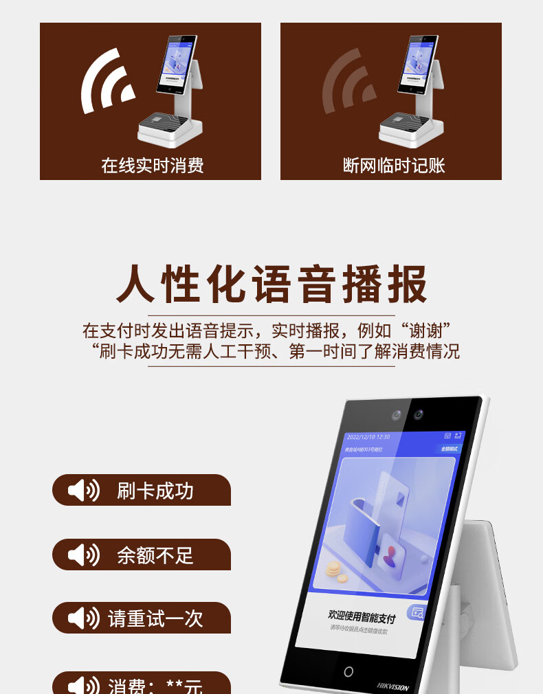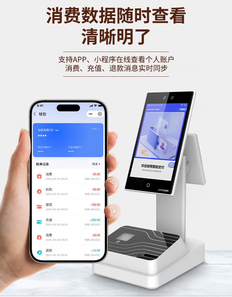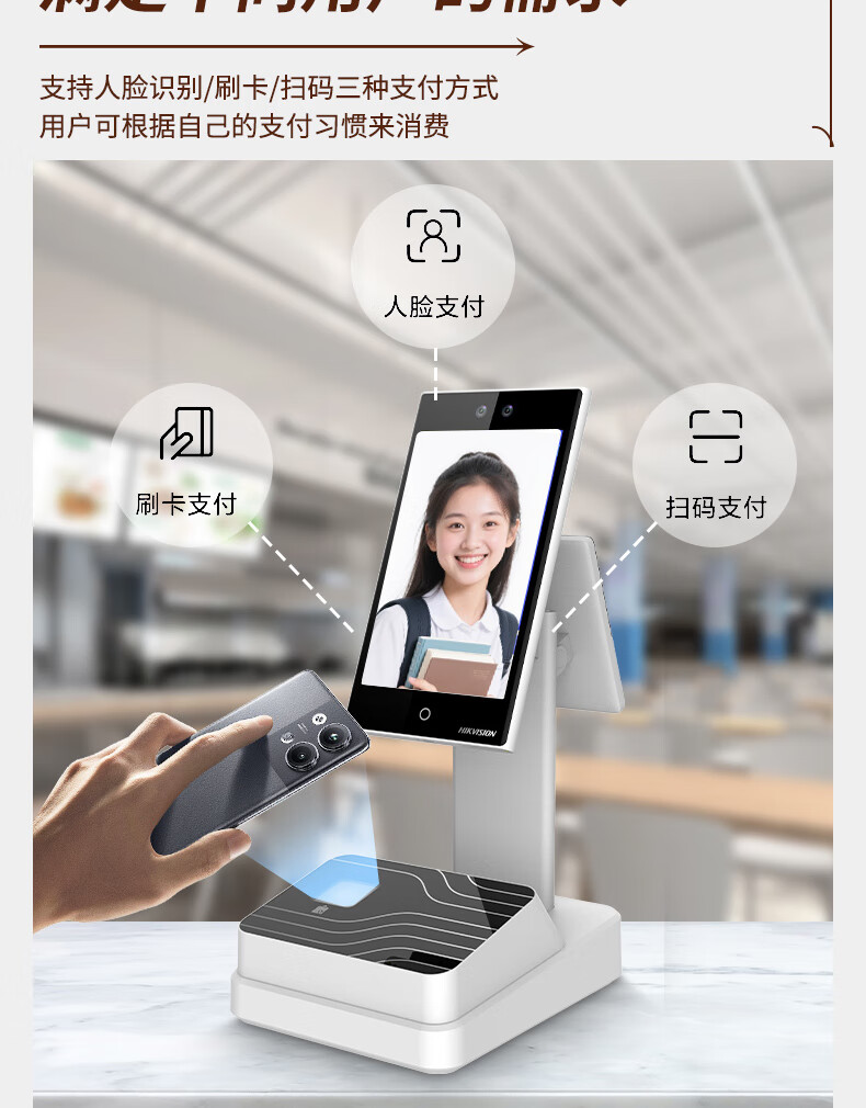 海康威视人脸识别消费机食堂消费机刷卡消费机饭堂餐厅IC卡售饭机工厂学校吃饭云端远程管理手机电脑