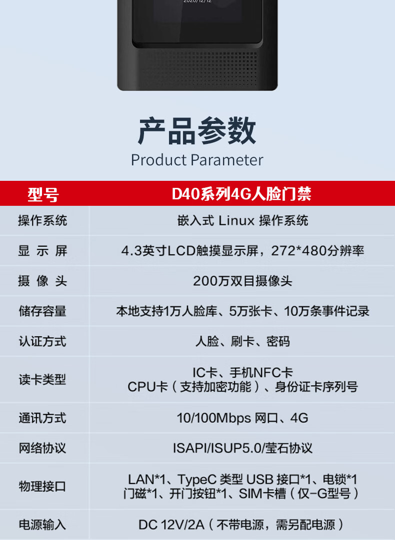 包含安装]D40[人脸+密码+刷卡+4G免流]