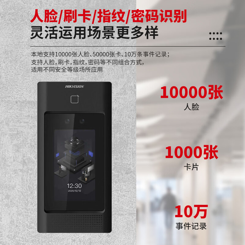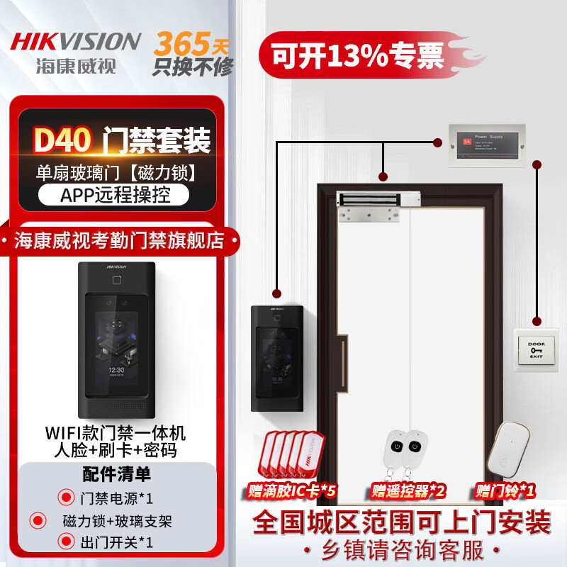 海康威视人脸识别门禁系统一体机4G免流量人脸打卡机远程公司办公室考勤机D40支持有线和4G