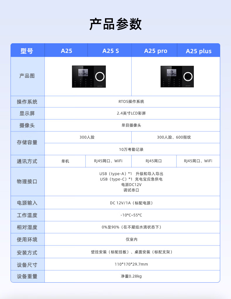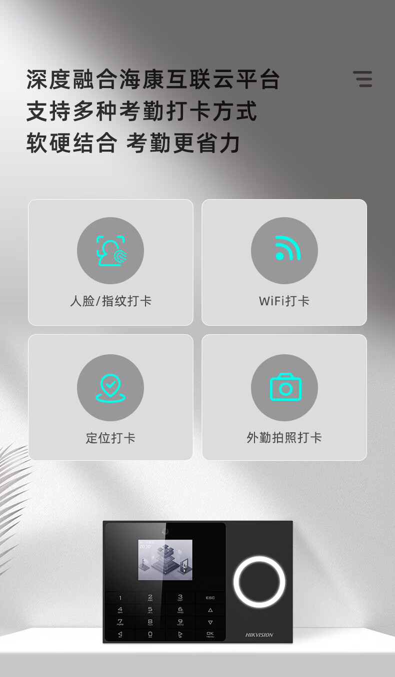 海康威视 考勤打卡机 企业公司人员签到上下班打卡机 快速人脸识别 A25 4G免流款 (人脸)内置流量卡+有线) A25免流款4G(人脸)内置流量卡+有线)