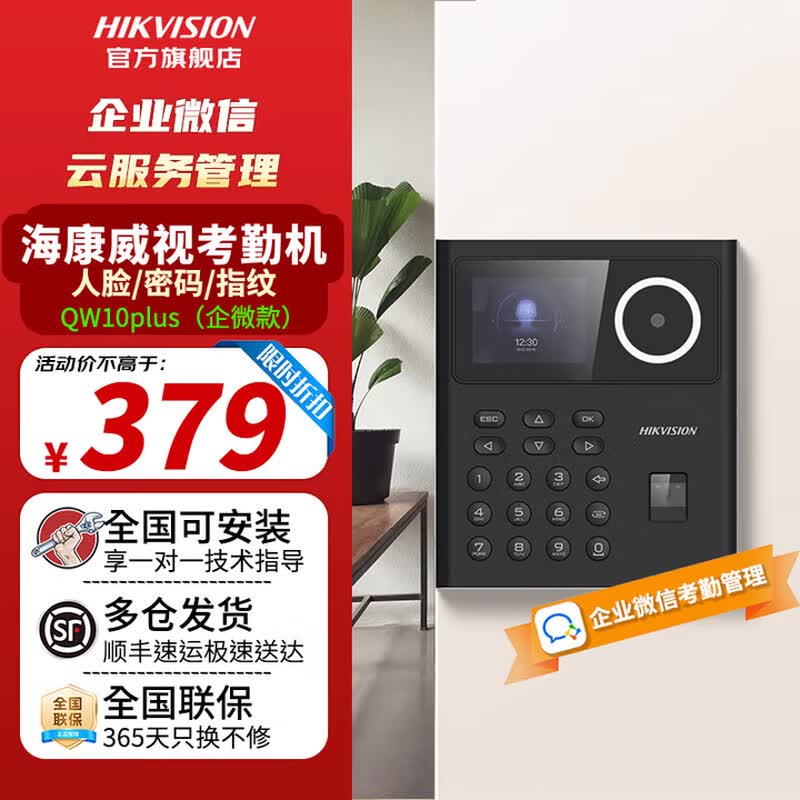 海康威视(HIKVISION)人脸识别考勤打卡机 人脸+指纹密码员工打卡机 面部识别刷脸打卡