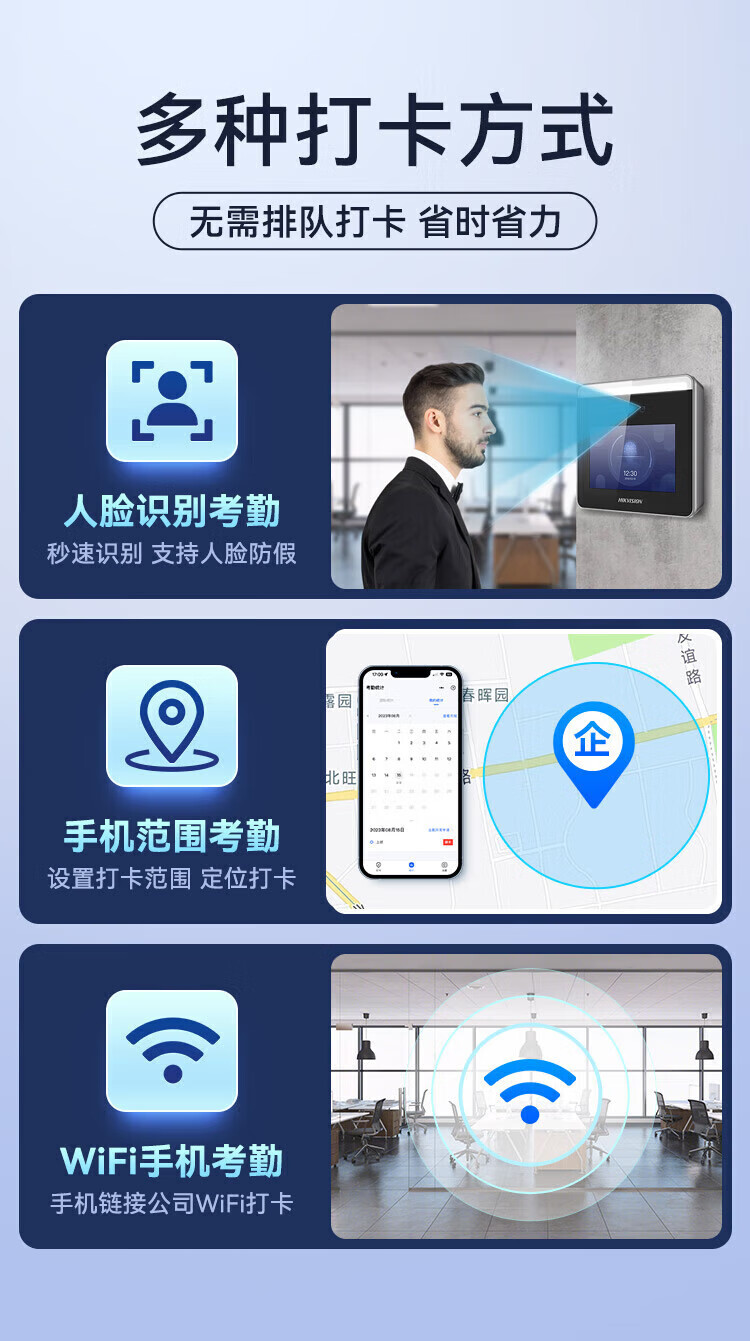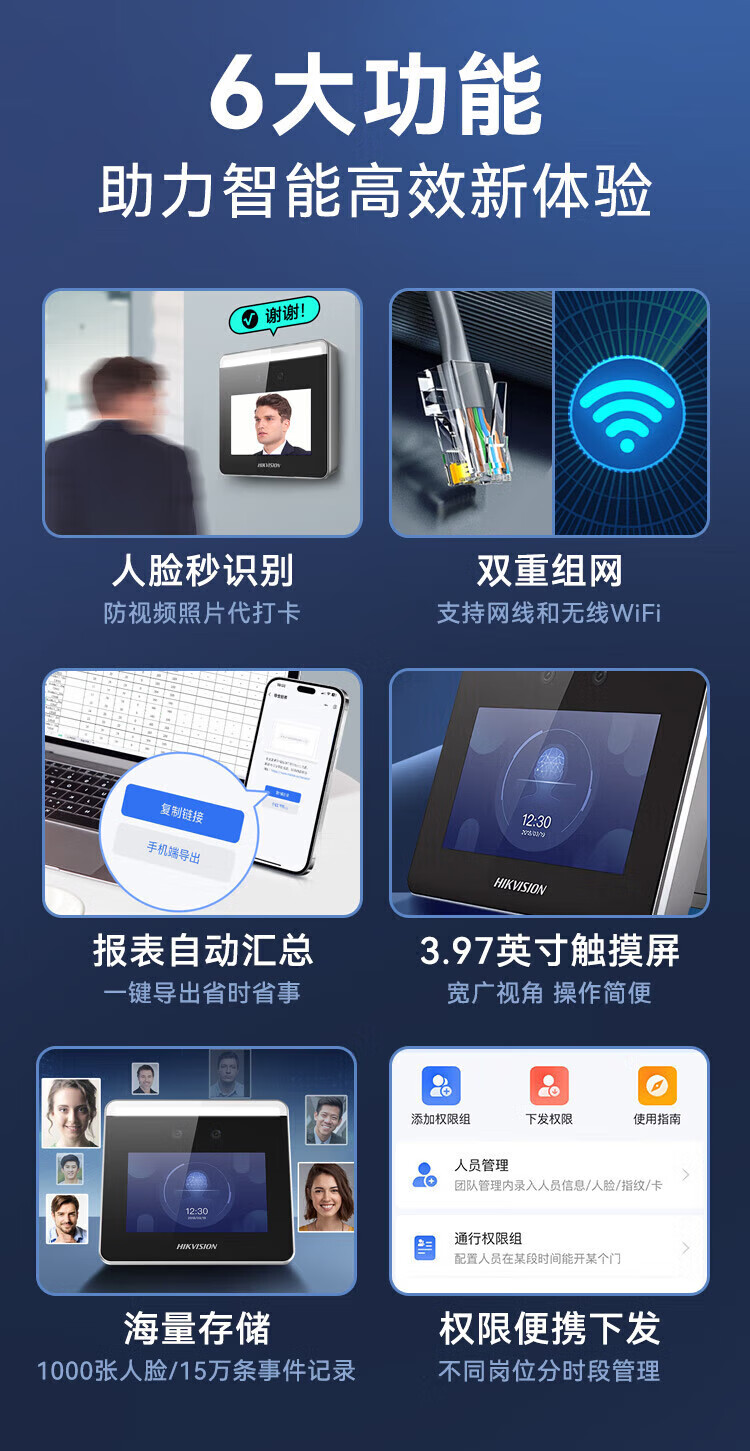 海康威视(HIKVISION)海康威视考勤机 人脸识别考勤机门禁一体机 门禁系统面部识别打卡机开门