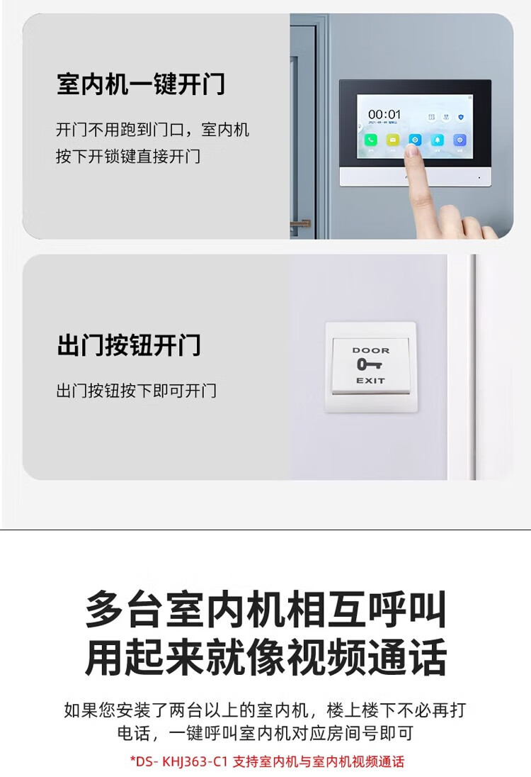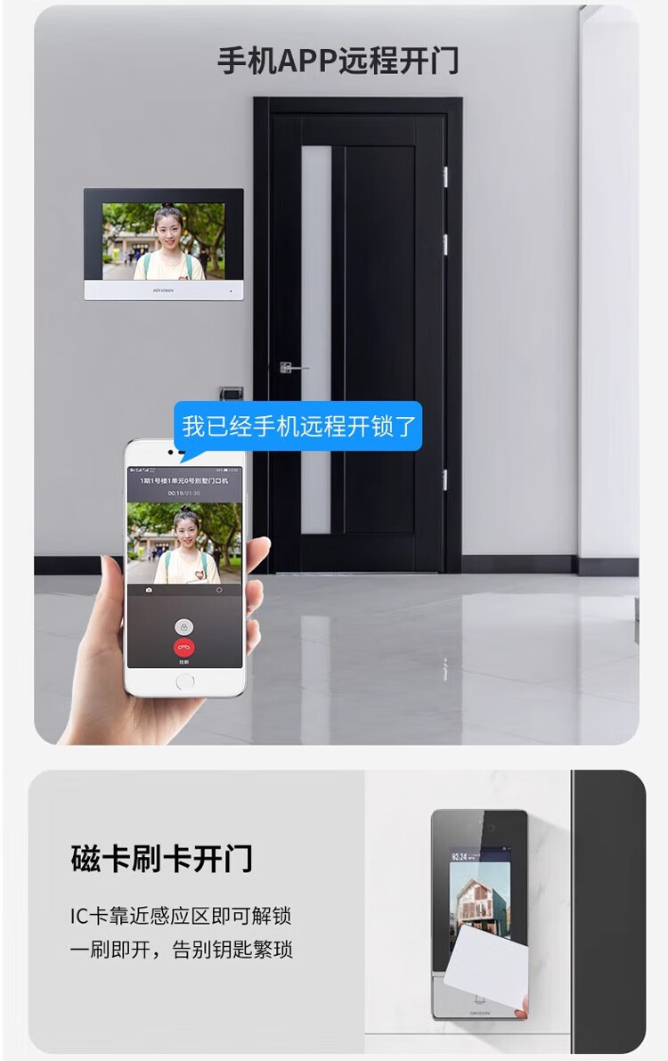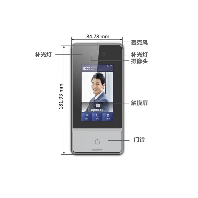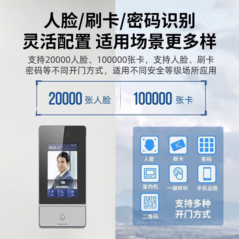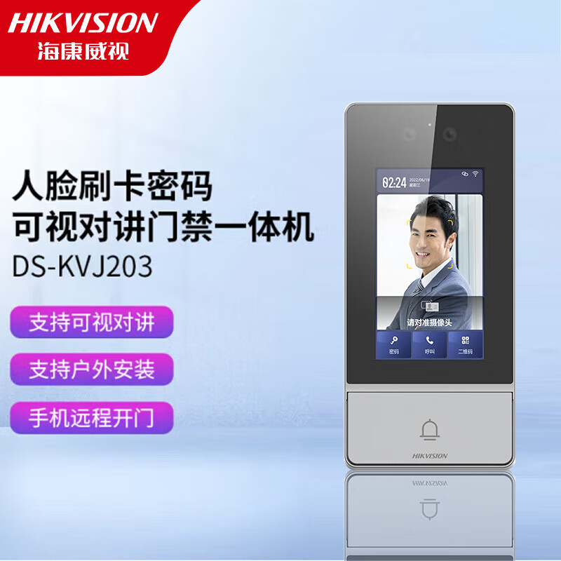 海康威视(HIKVISION)人脸识别门禁系统一体机DS-KVJ203刷脸密码刷卡办公室门禁电锁套装4.3英寸触摸屏