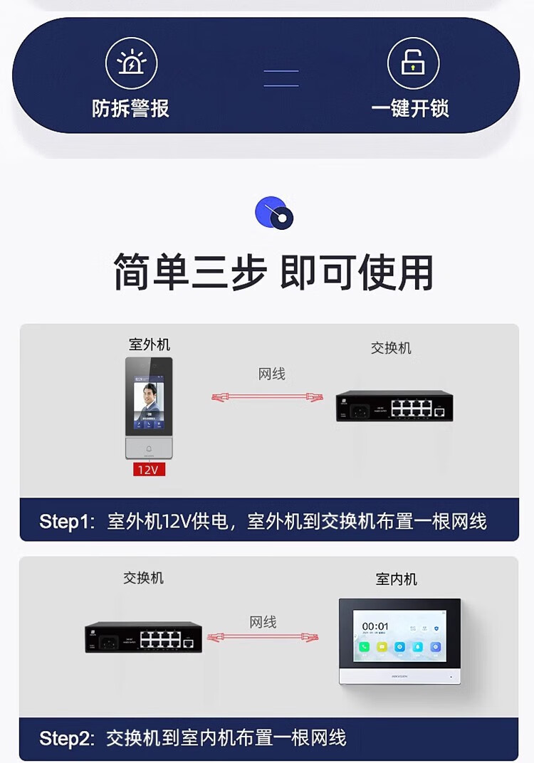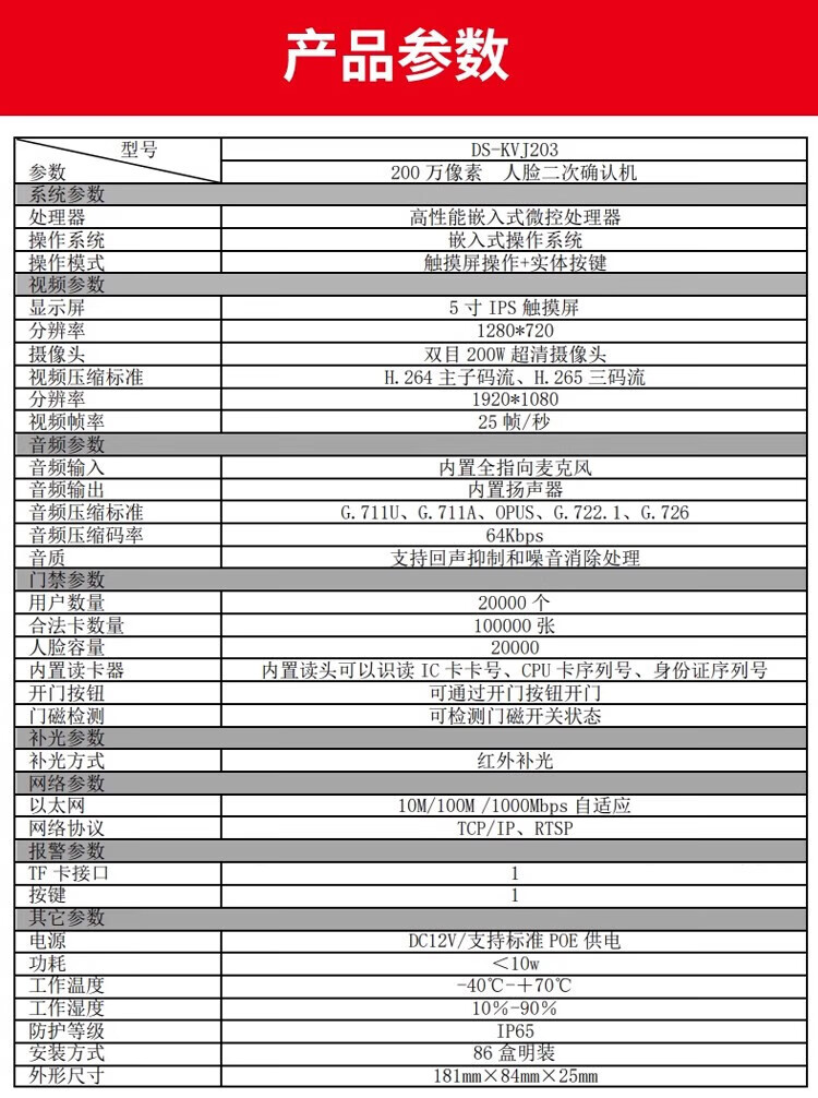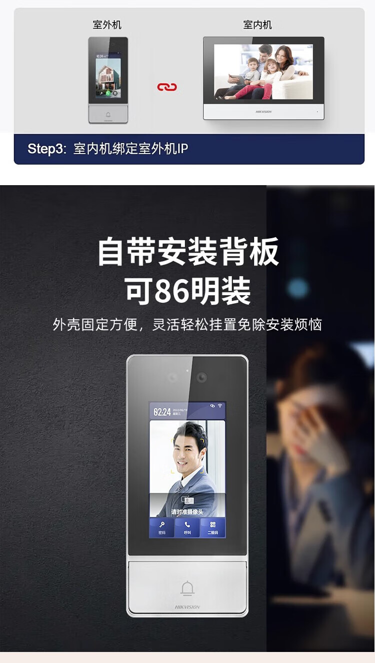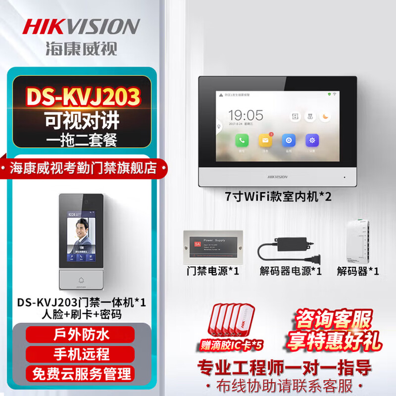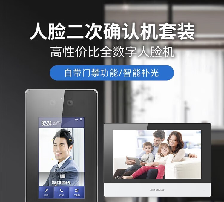 海康威视(HIKVISION)人脸识别门禁系统一体机DS-KVJ203刷脸密码刷卡办公室门禁电锁套装4.3英寸触摸屏