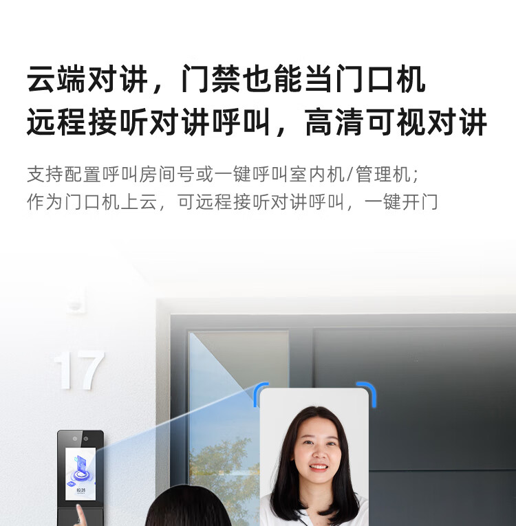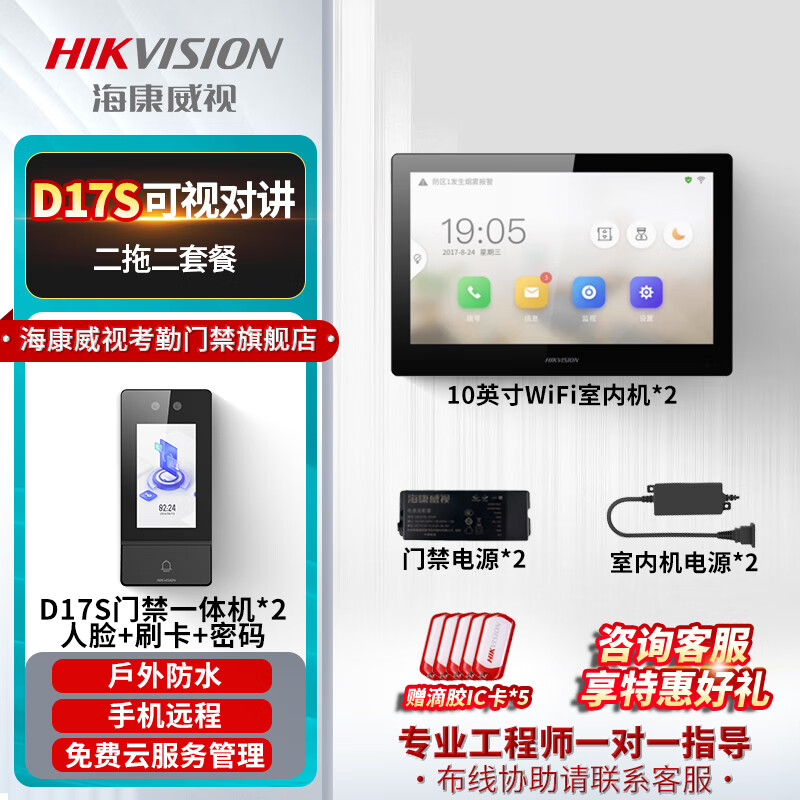海康威视门禁系统一体机刷脸指纹门铃刷卡自动感应人脸识别可视门铃门禁门禁控制器D17 +10寸WiFi室内机