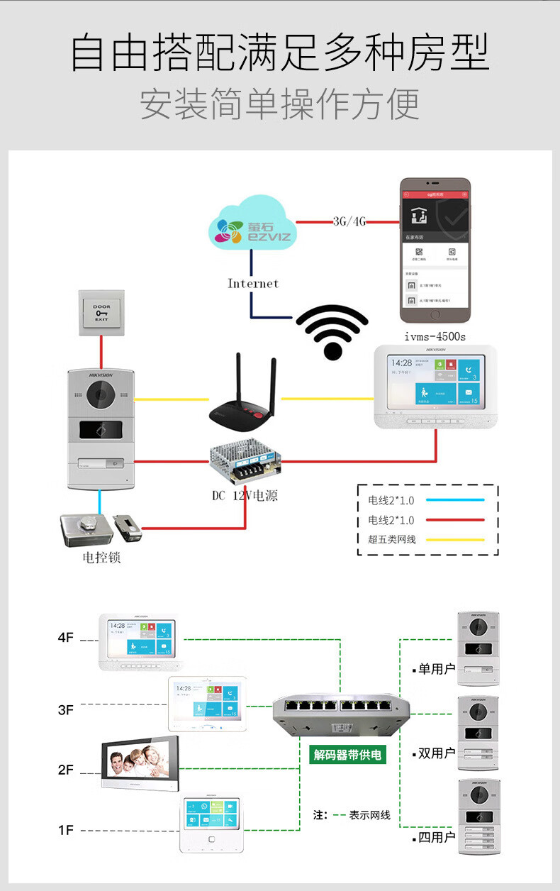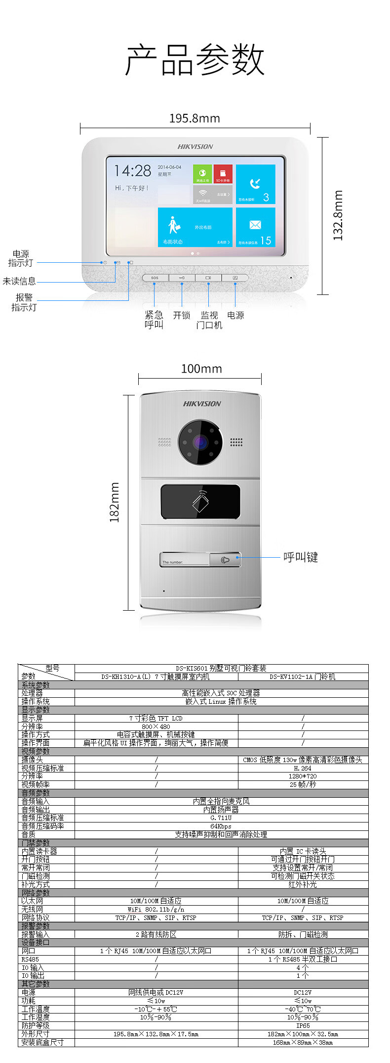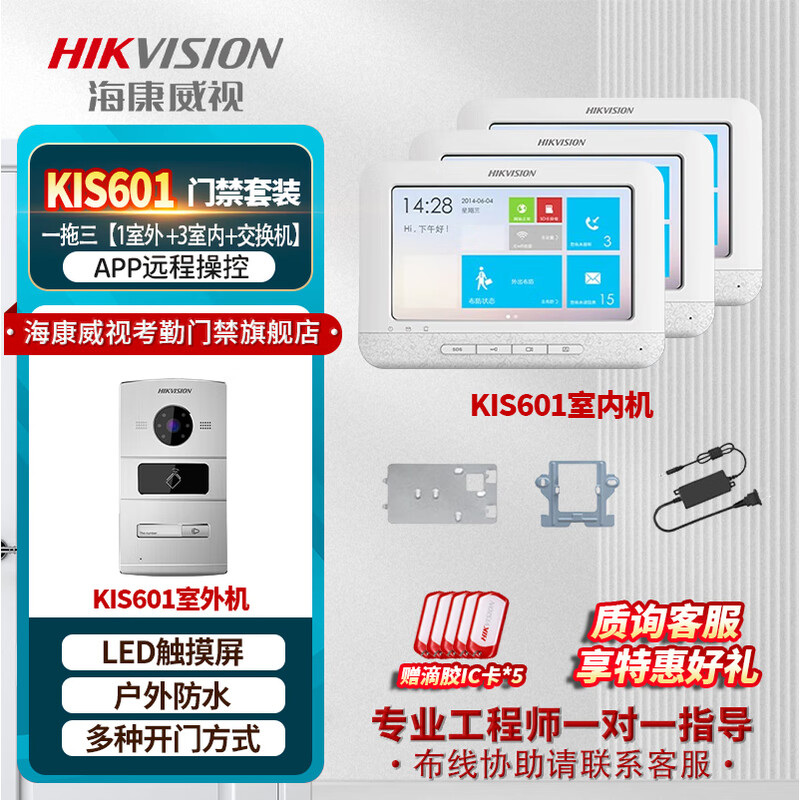 海康威视【别墅楼宇】可视对讲门禁主机 IC刷卡开门 智能电子猫眼人脸可视通话语音 实体按键DS-KIS601