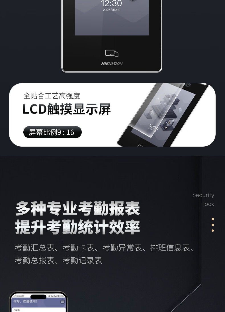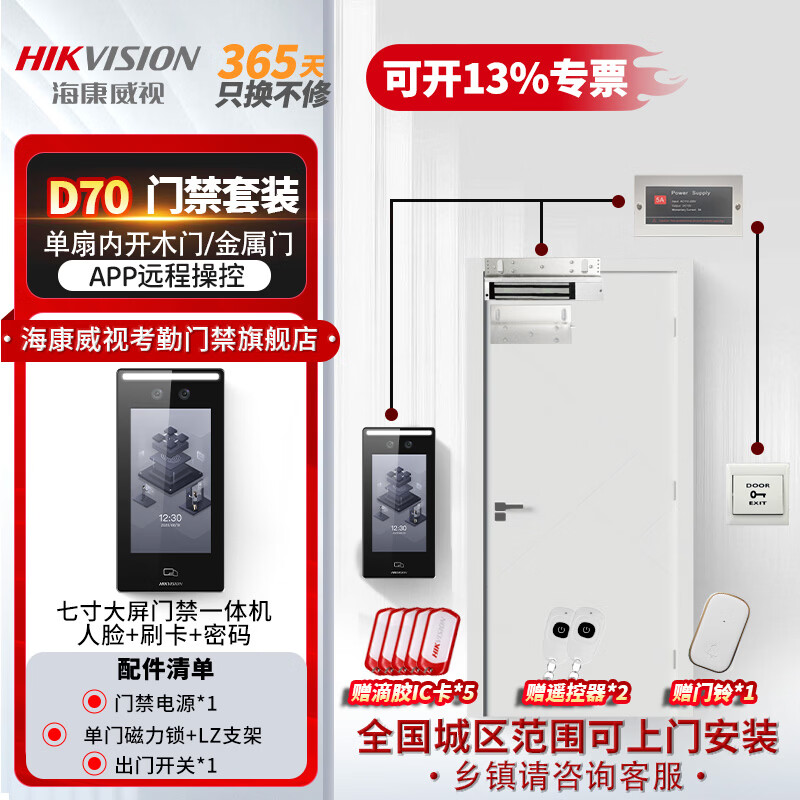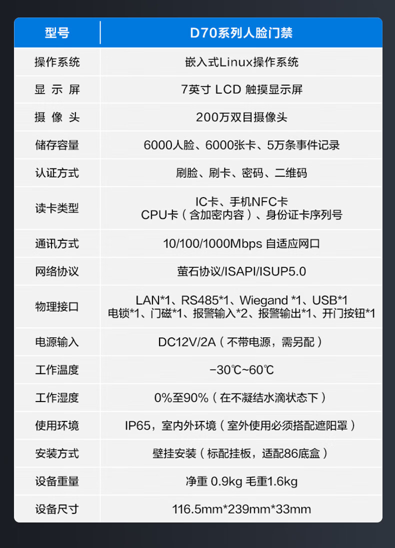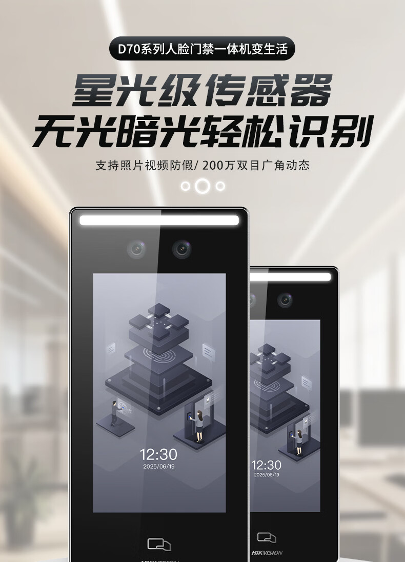 海康威视人脸门禁一体机7英寸大屏室外防水企业办公上班刷脸考勤指纹打卡机考勤门禁机D70