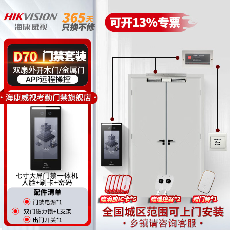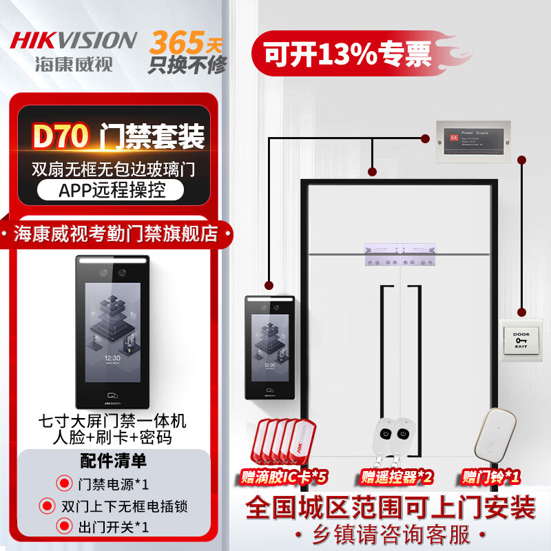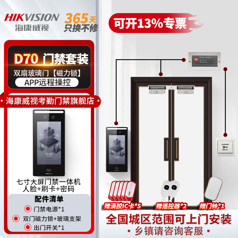 套餐八 【包安装】双扇玻璃门(磁力锁)套装