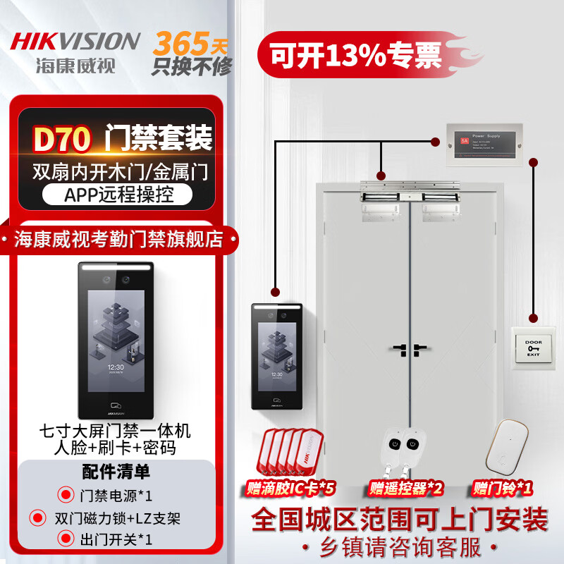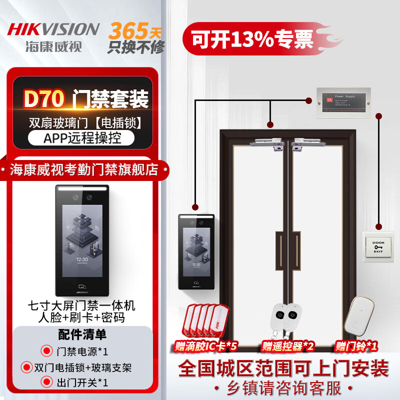 套餐六 【包安装】双扇玻璃门【电插锁】套装