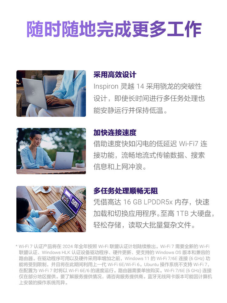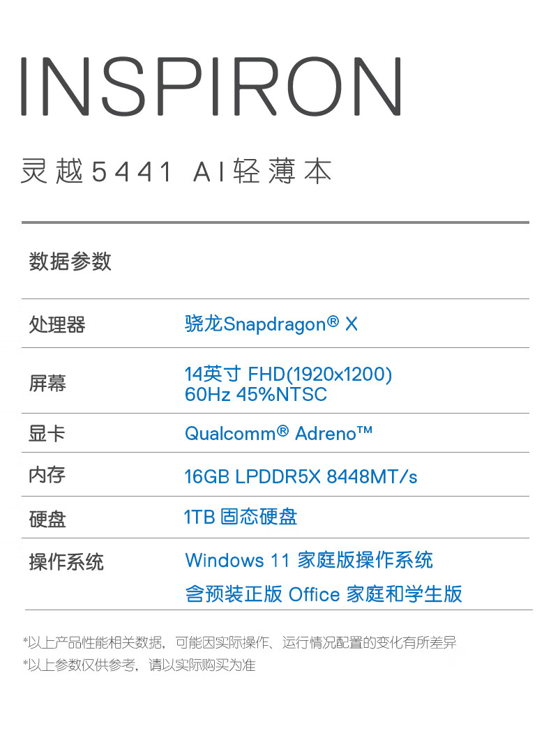 戴尔(DELL)国家补贴 笔记本电脑 灵越14 5441 新款 14英寸轻薄本高性能商务办公学生AIPC 骁龙X 16G 1TB