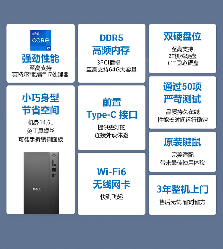 戴尔灵越 新款 高性能台式电脑主机(14代i5-14400 16G DDR5 512G+2T)23.8大屏 设计图站 可拓RTX4060