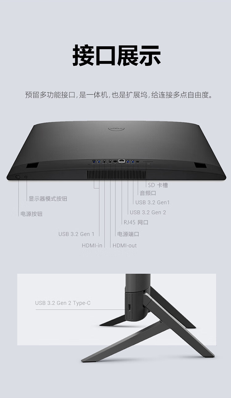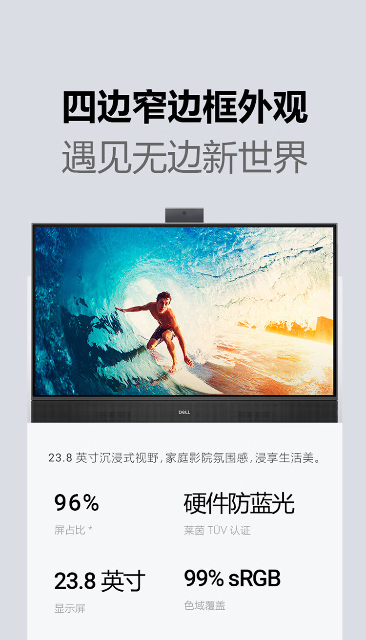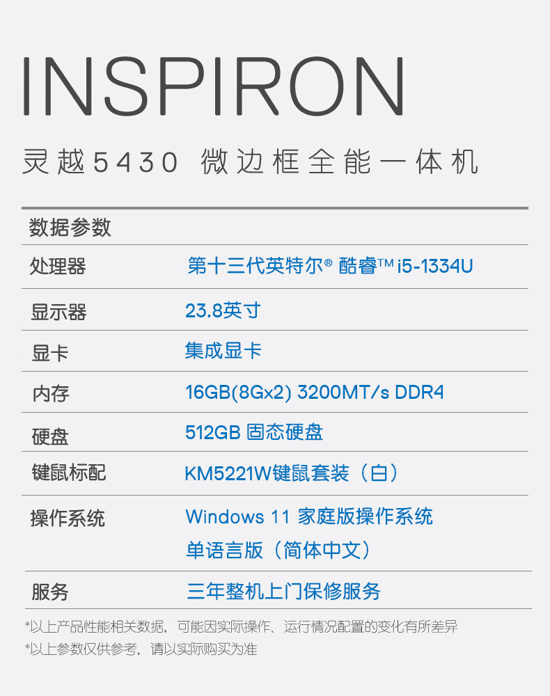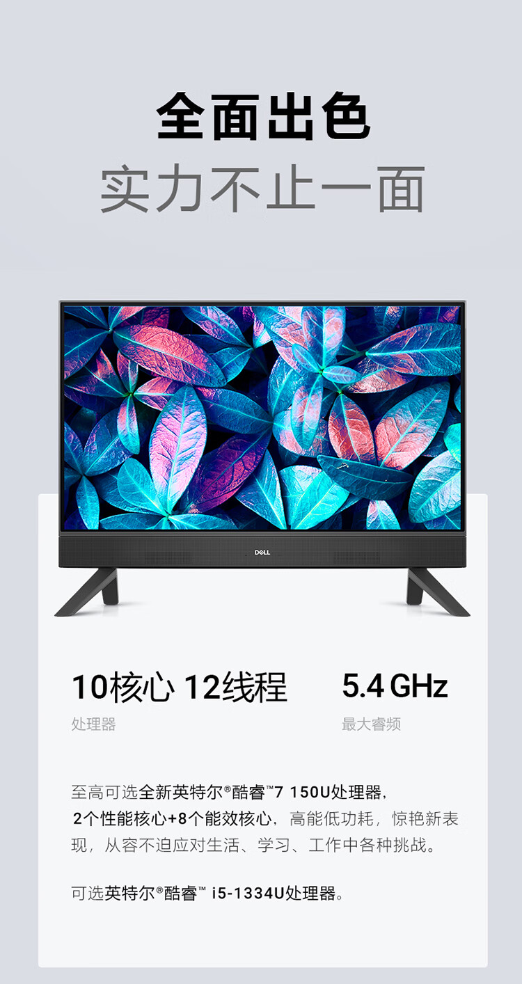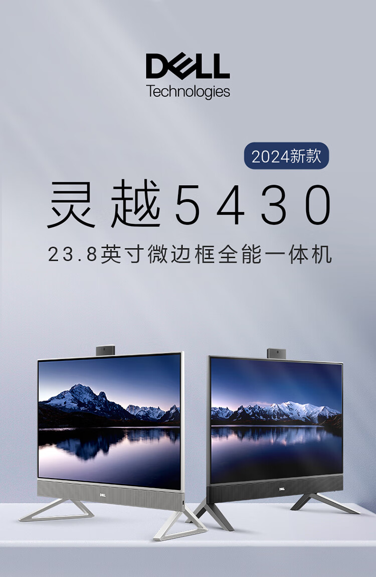 戴尔灵越5430 高端一体机 台式电脑(13代i5 16G 512G)美学白 23.8护眼大屏 商用办公 影音 教育学习机