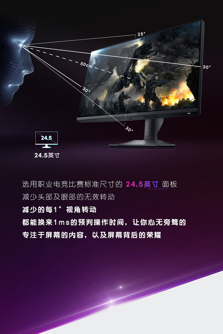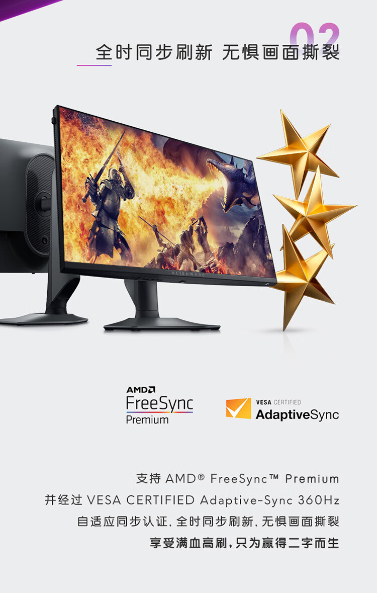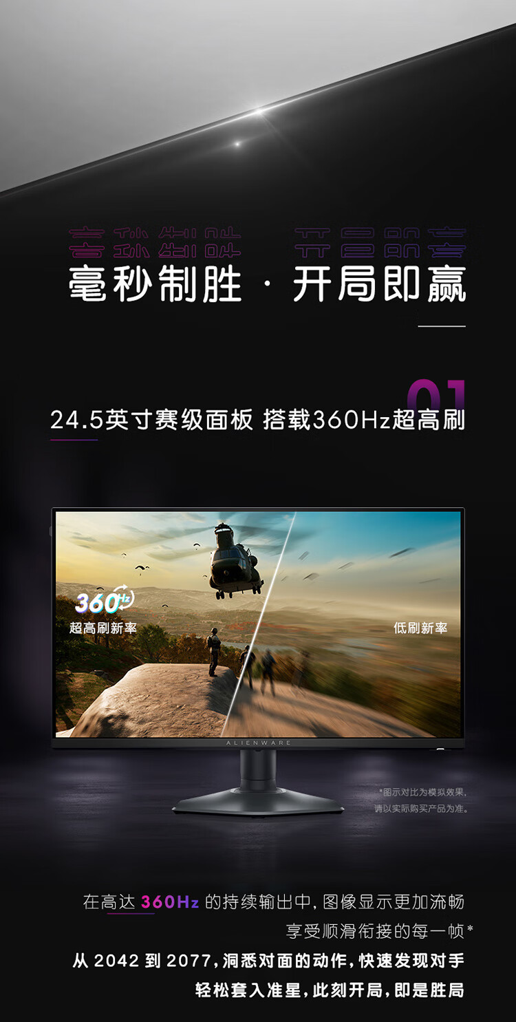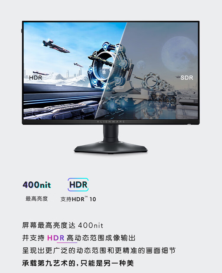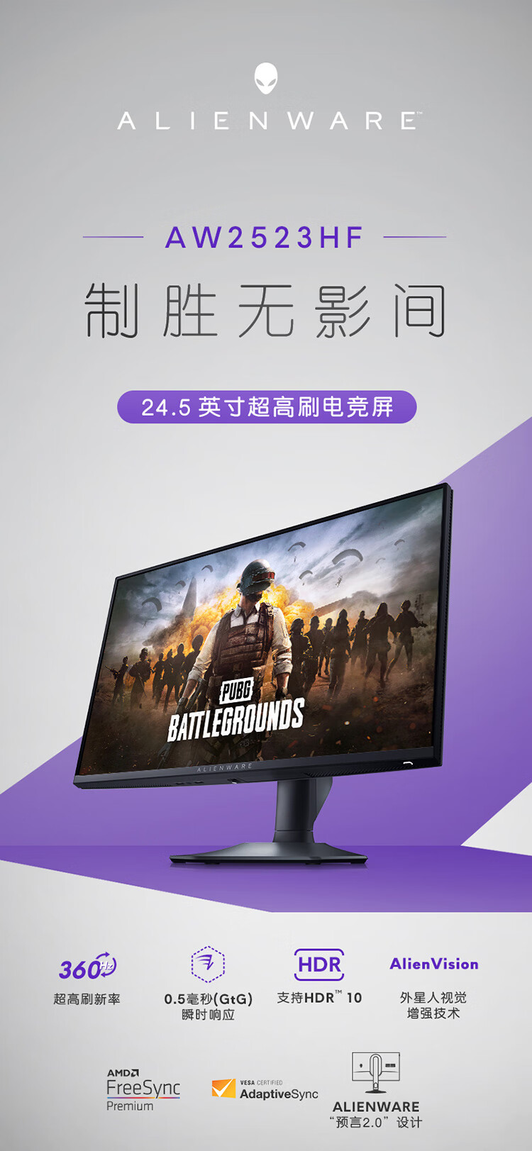 外星人(ALIENWARE)24.5英寸 电竞显示器Fast IPS 360Hz 0.5ms FreeSync兼容 游戏高刷屏AW2523HF