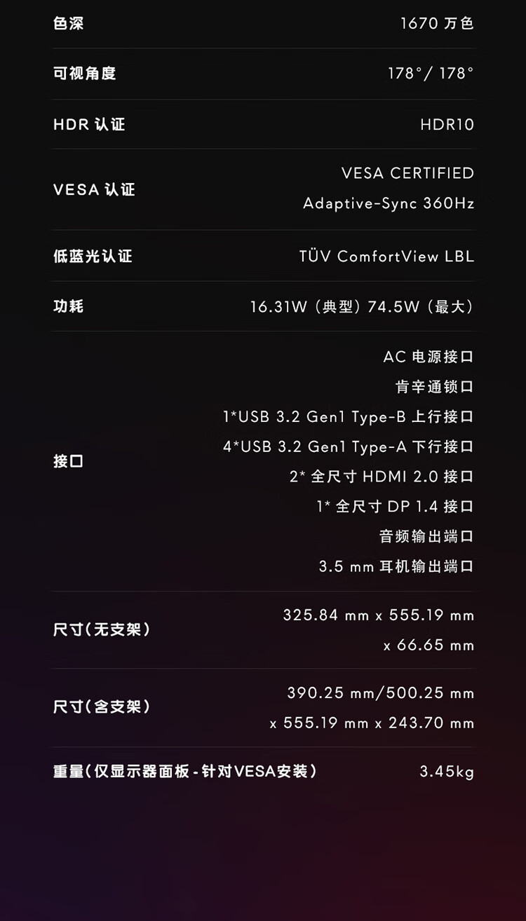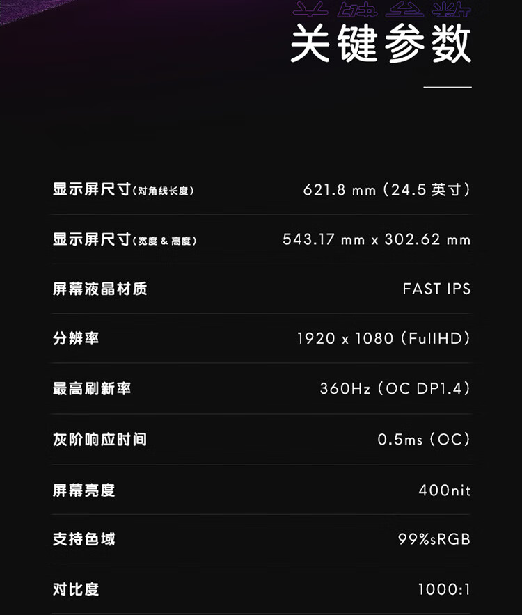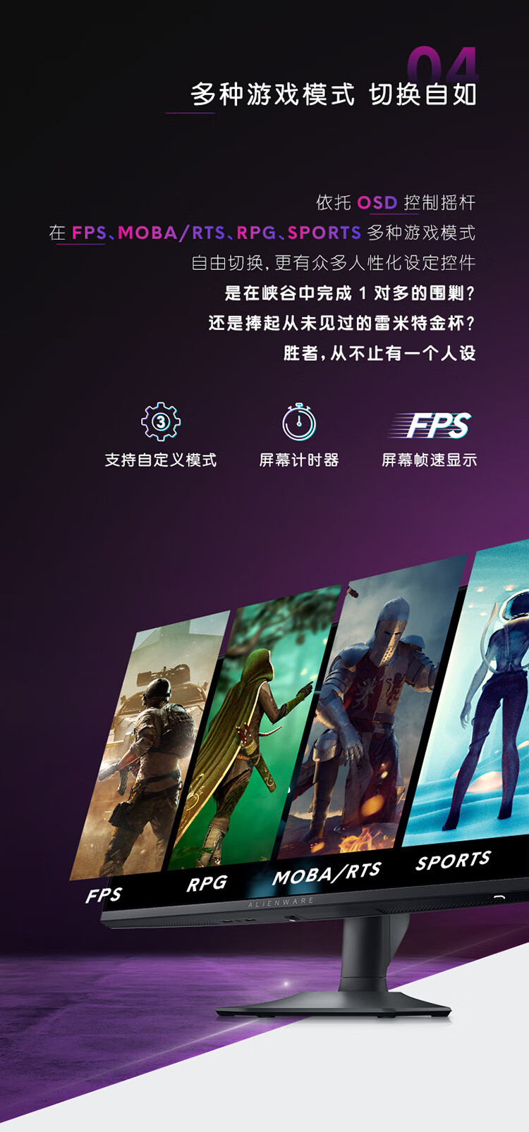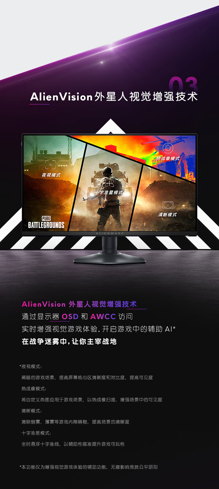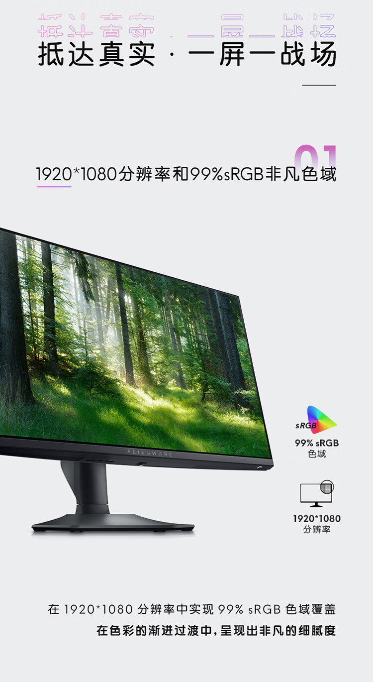外星人(ALIENWARE)24.5英寸 电竞显示器Fast IPS 360Hz 0.5ms FreeSync兼容 游戏高刷屏AW2523HF
