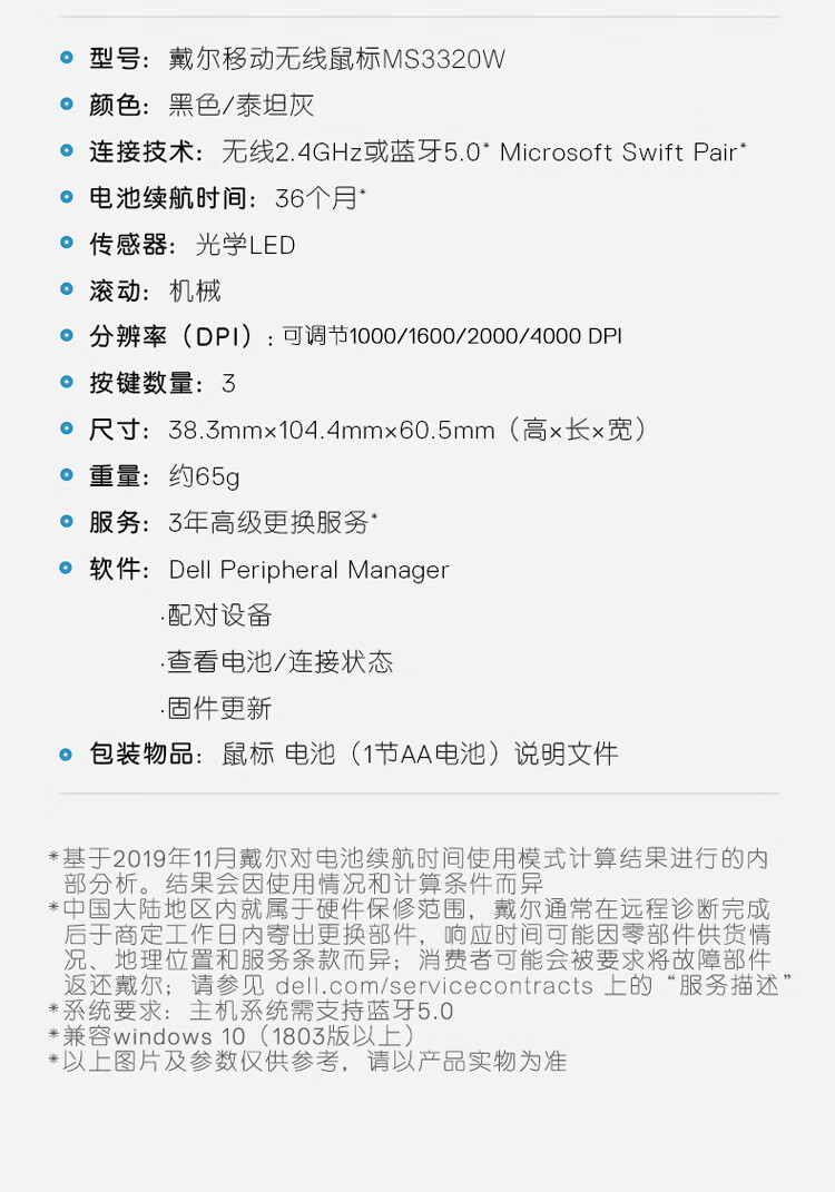 戴尔(DELL)MS3320W 鼠标 无线鼠标 蓝牙鼠标 办公家用鼠标 鼠标无线 对称鼠标 黑色