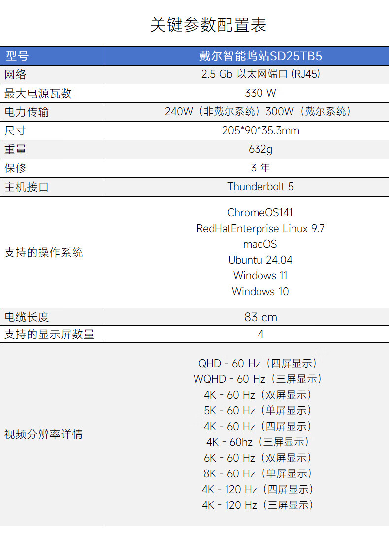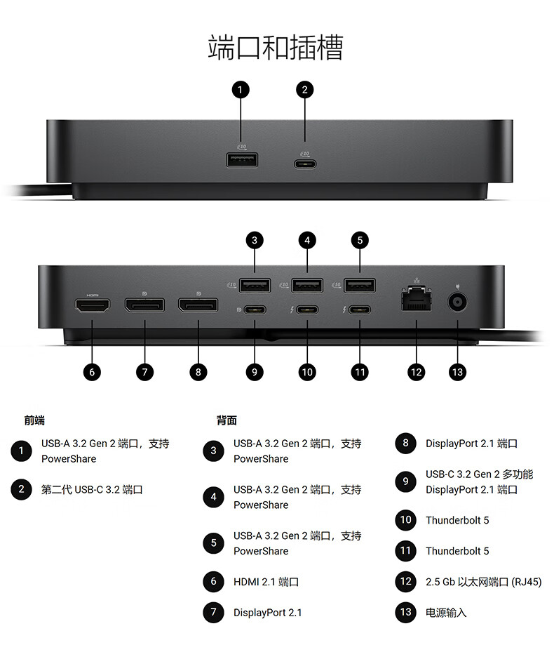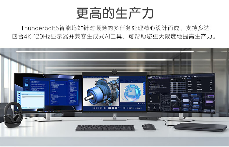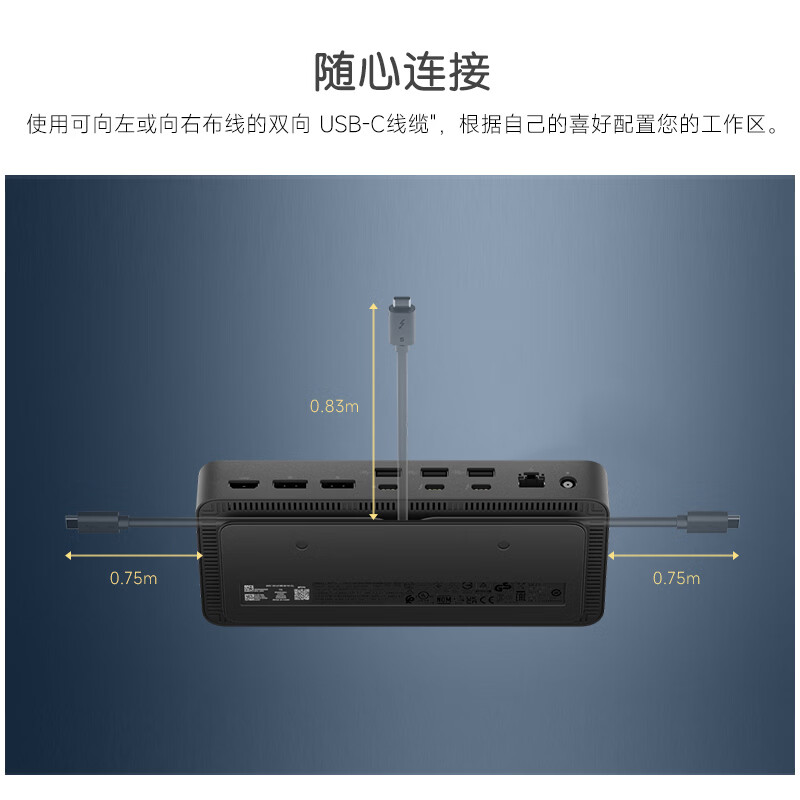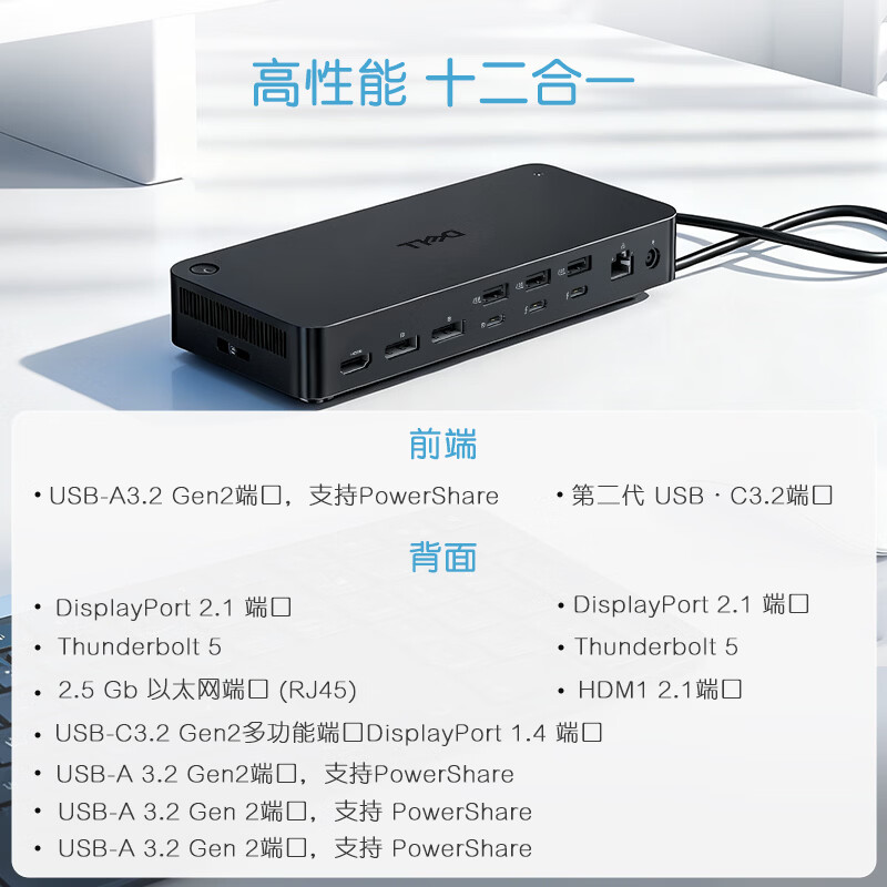戴尔(DELL)TB5 雷电5笔记本扩展坞 type-c usb拓展坞Dock 原装高性能坞站 Thunderbolt 5 线缆300W供电