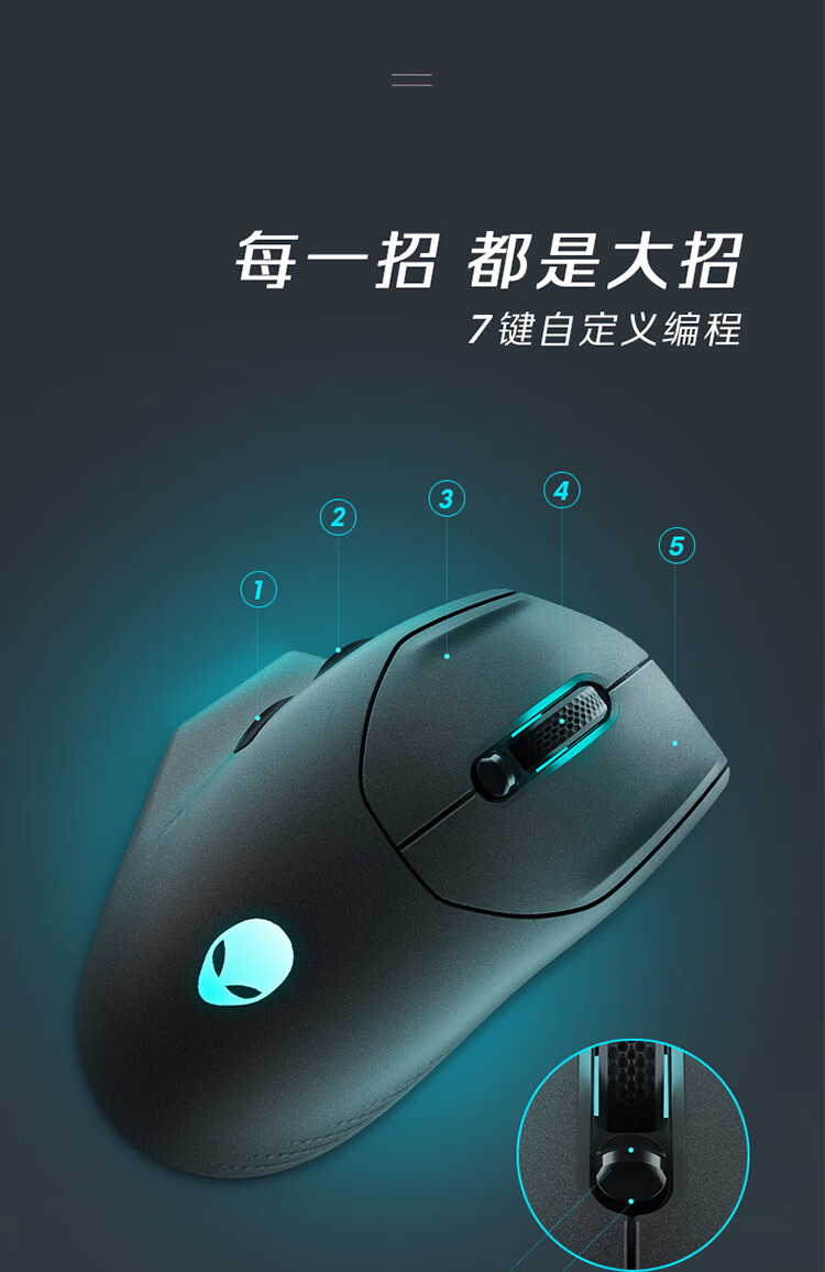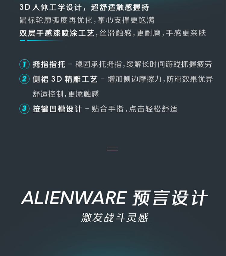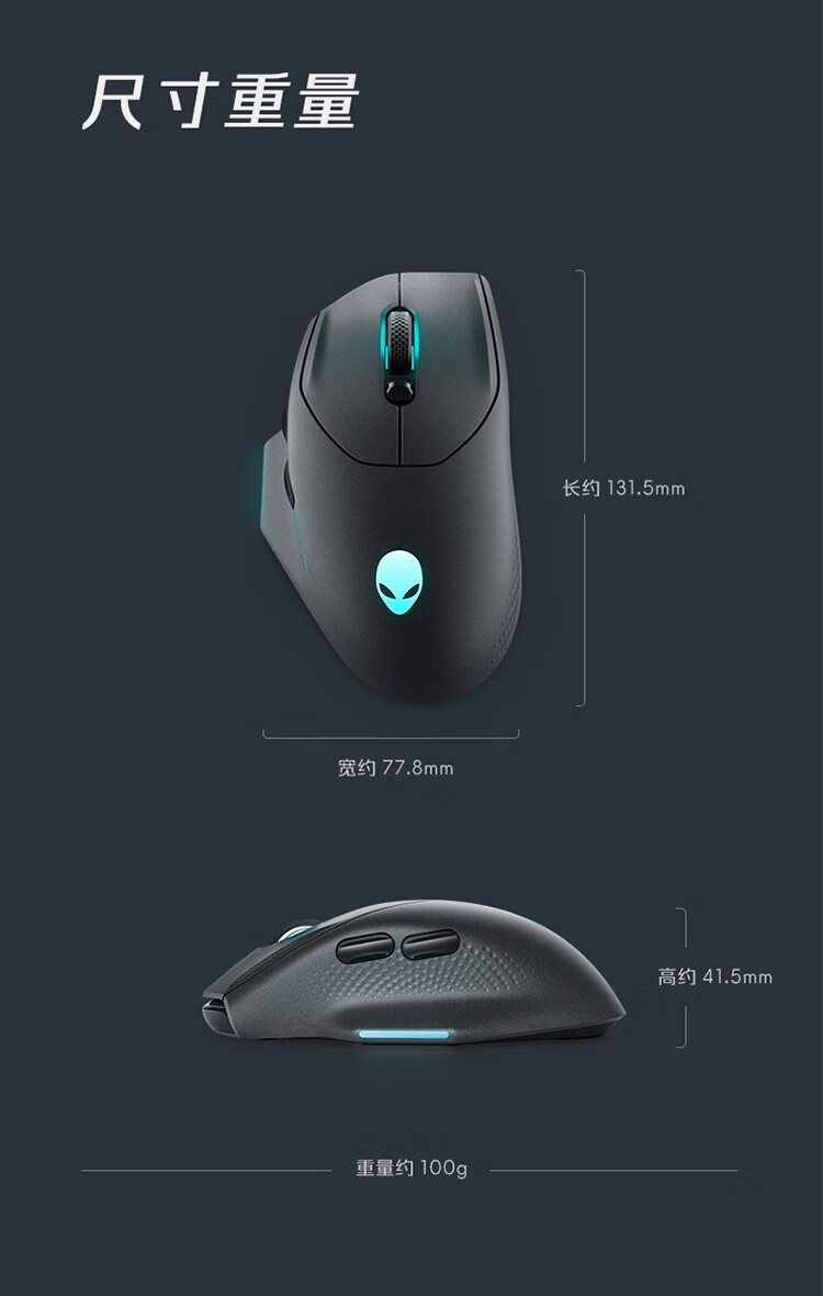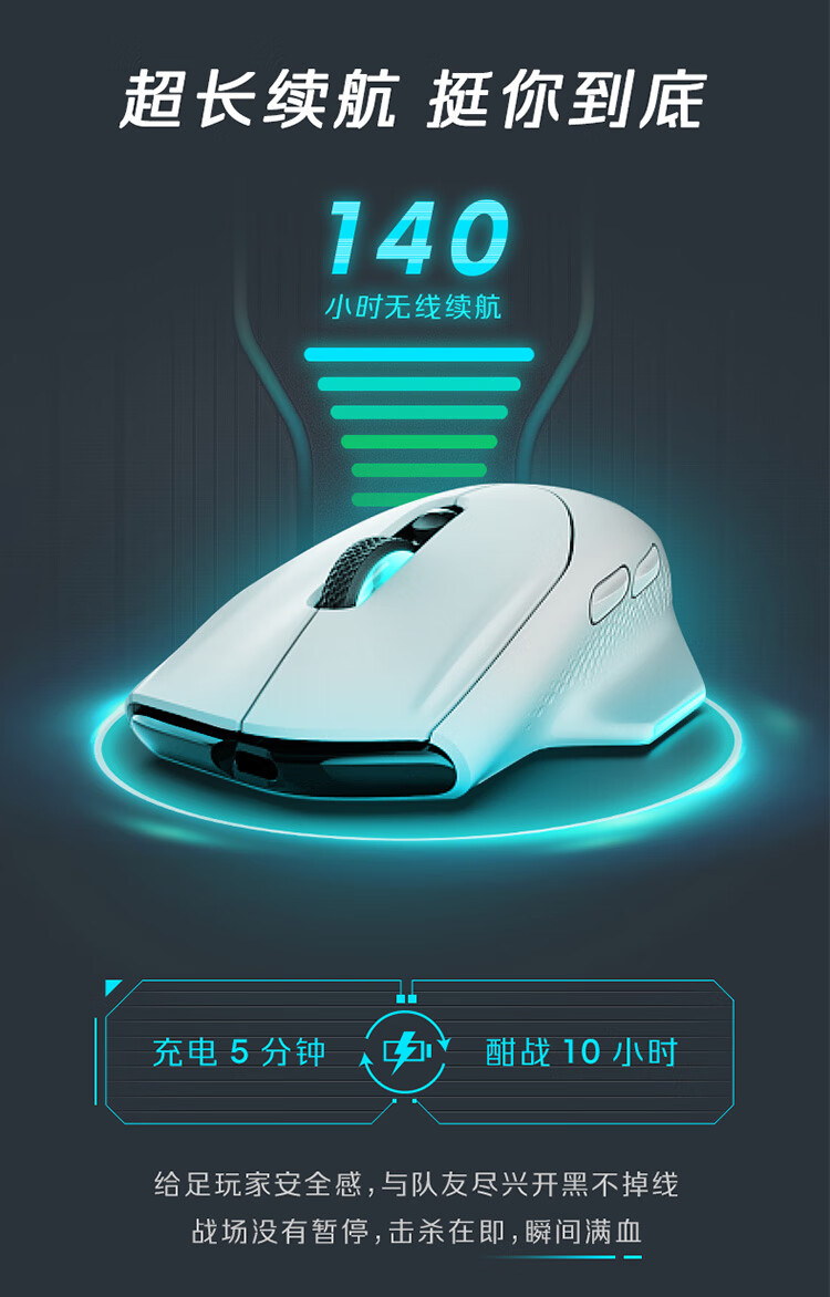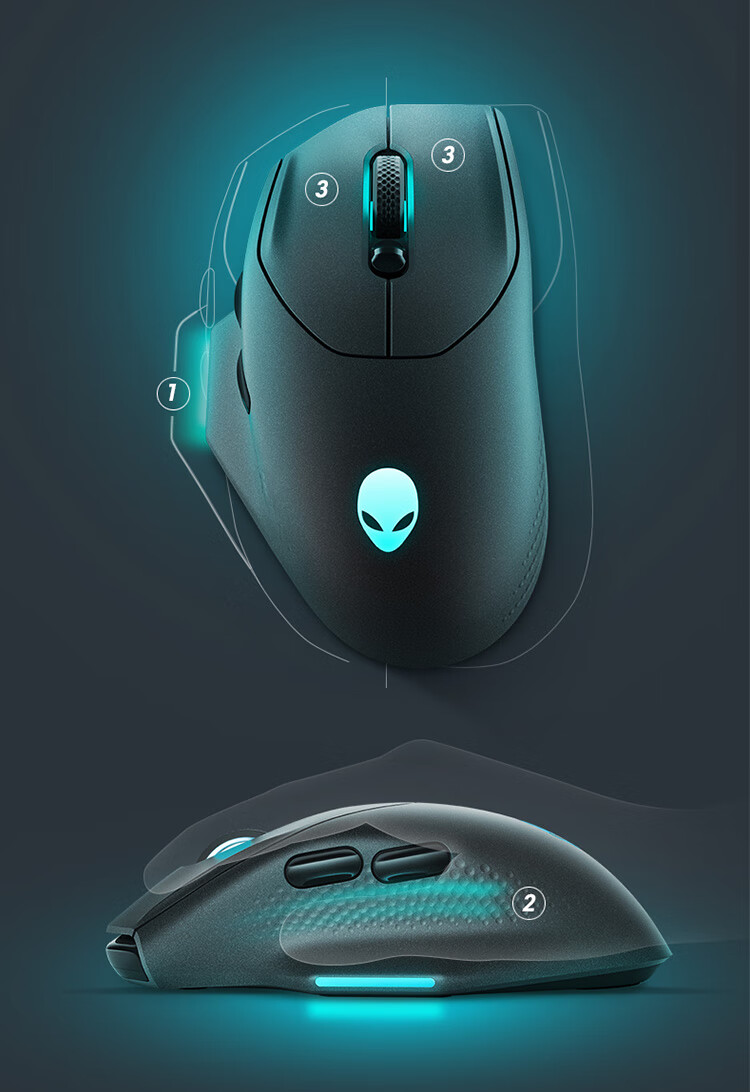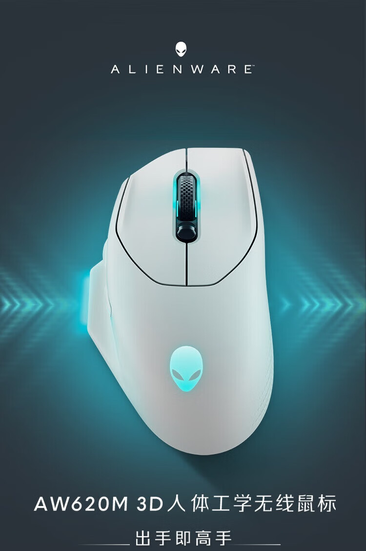 外星人(Alienware)AW620M无线游戏鼠标 右手型人体工学双模有线办公电竞宏鼠标 RGB灯效 26000原生DPI 磁力回弹 白色