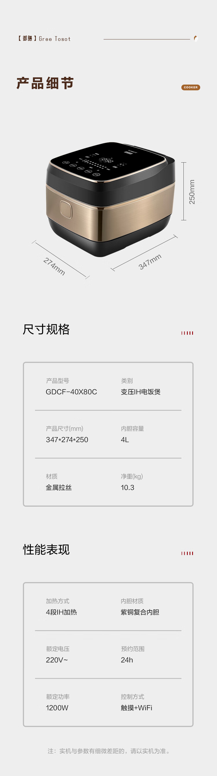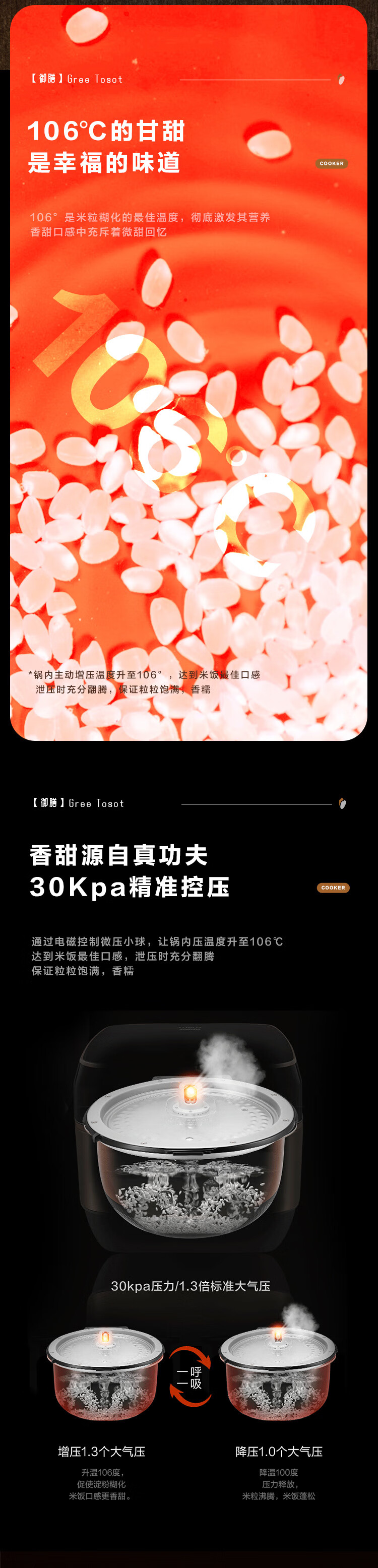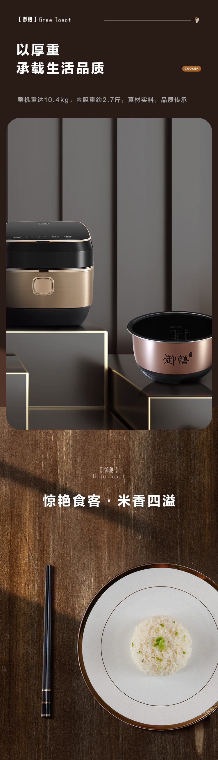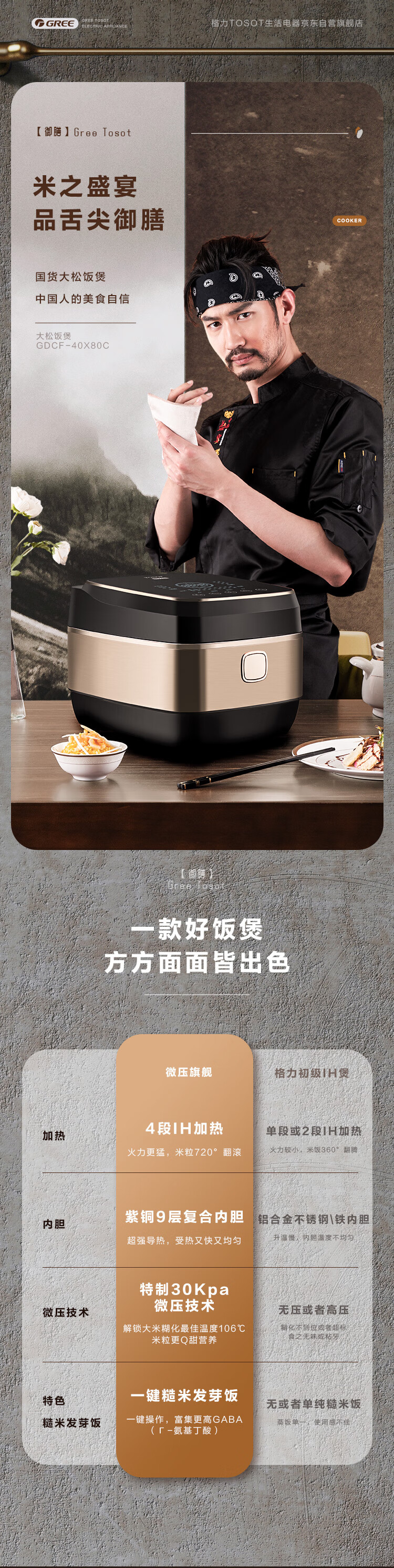 大松(TOSOT)格力电饭煲4-5人家用电饭锅4L微压力4段IH加热智能多功能煮粥煲汤带蒸屉健康发芽饭政府补贴40X80C