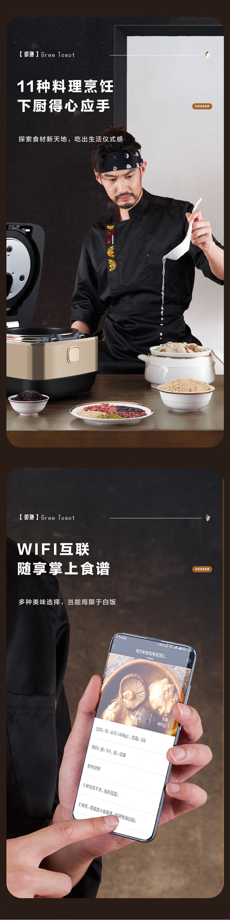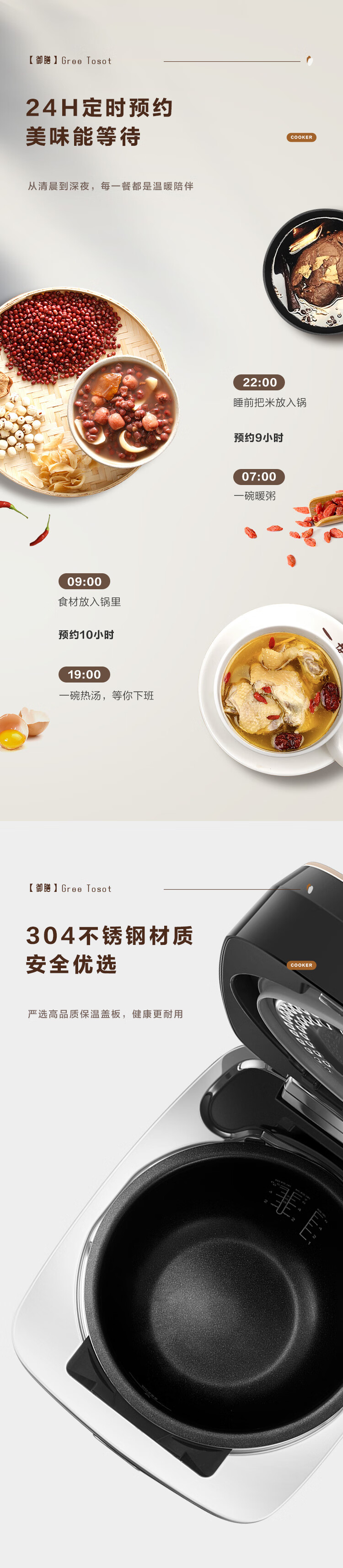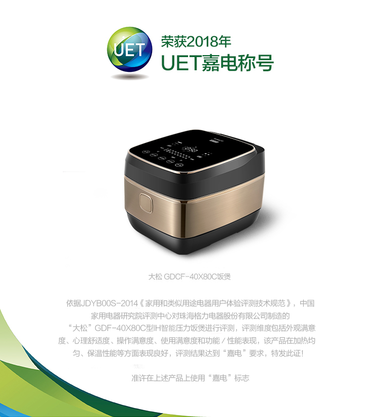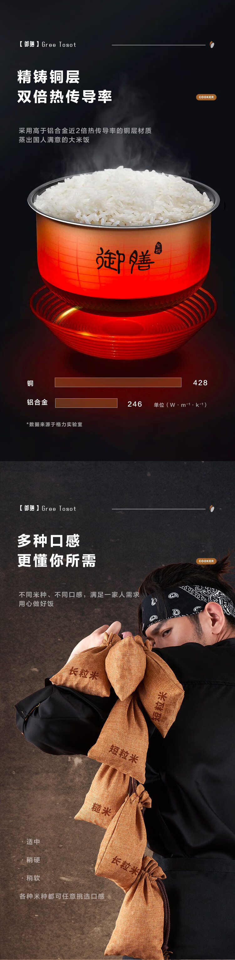 大松(TOSOT)格力电饭煲4-5人家用电饭锅4L微压力4段IH加热智能多功能煮粥煲汤带蒸屉健康发芽饭政府补贴40X80C