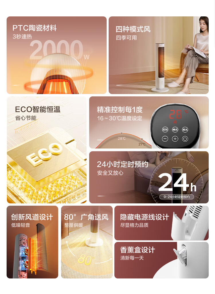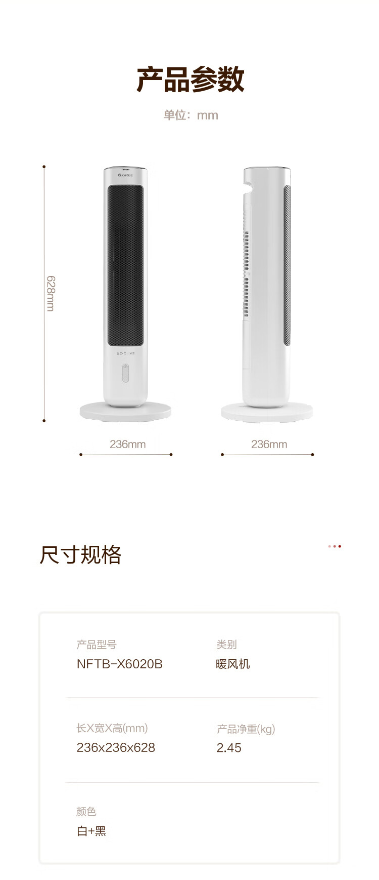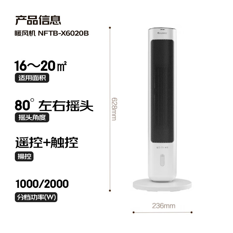格力(GREE)【80°广角送暖】取暖器家用遥控暖风机电暖器热风机电暖气摇头电暖风电暖扇轻音低耗 NFTB-X6020B