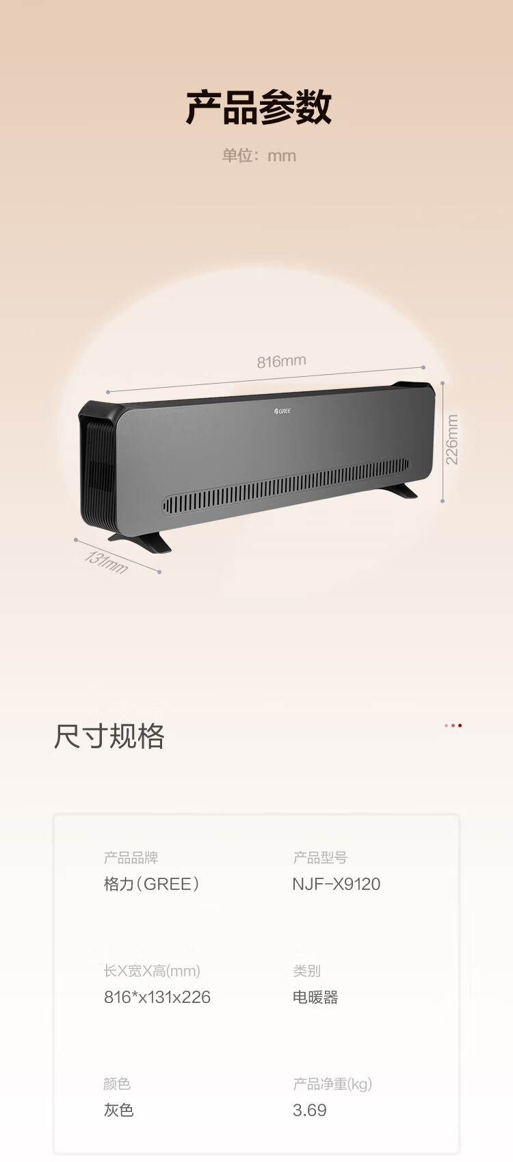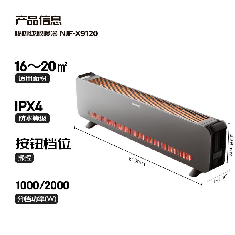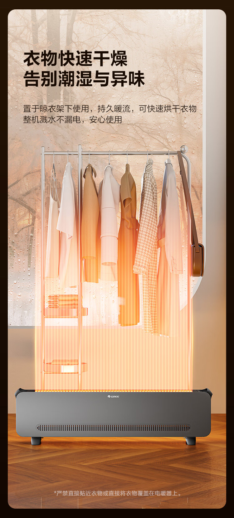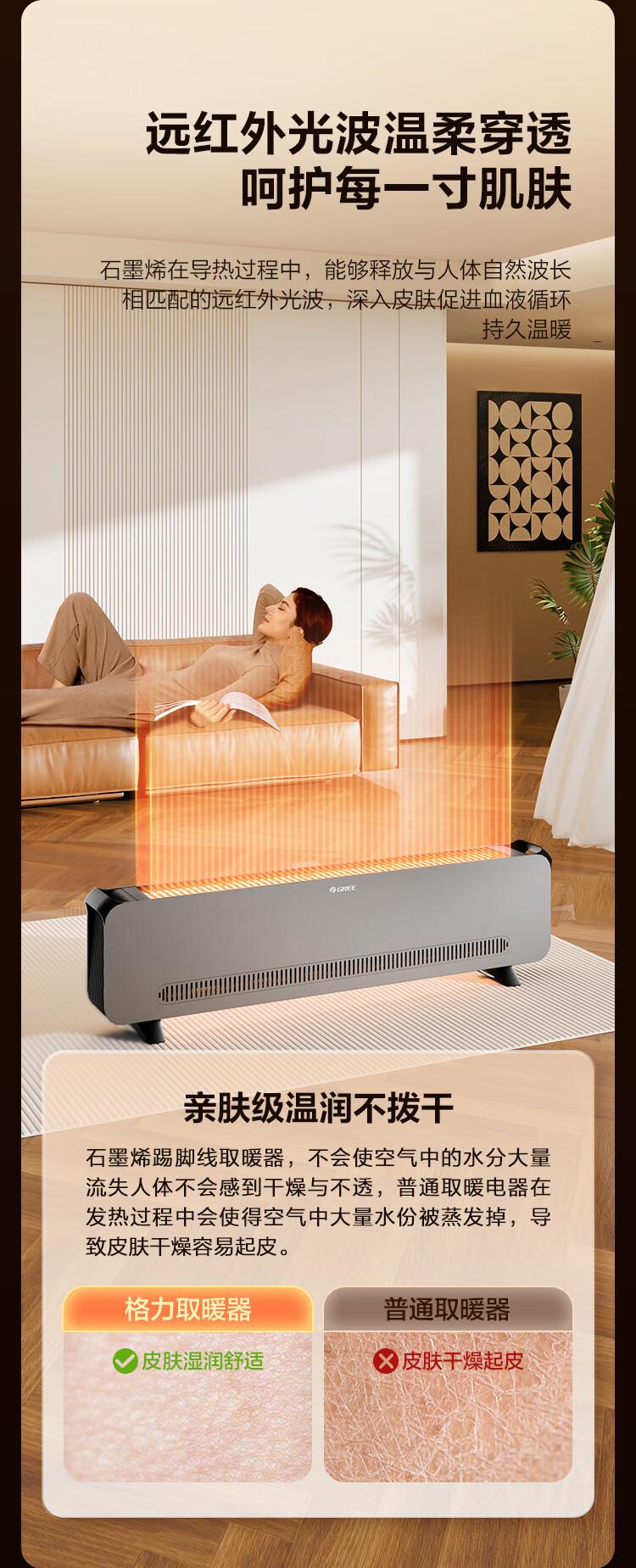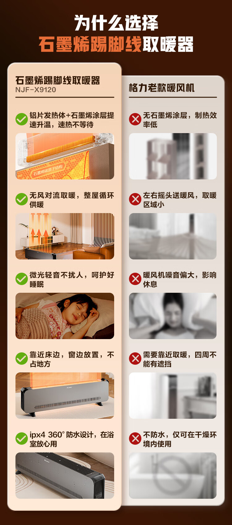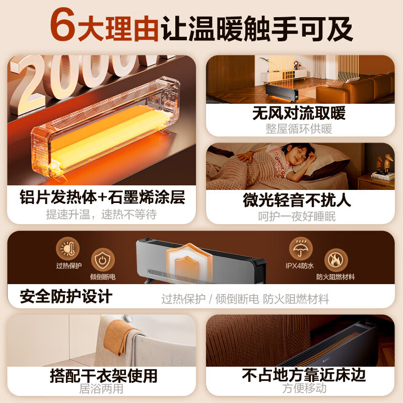 格力(GREE)【石墨烯取暖器】移动地暖取暖器家用电热电暖器电暖气暖风机浴室防水 NJF-X9120