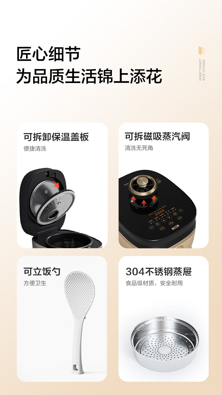 大松格力电饭煲4-5人家用电饭锅4L煮粥神器ih加热快速饭智能多功能蒸煮一体微压饭煲一级能效政府补贴
