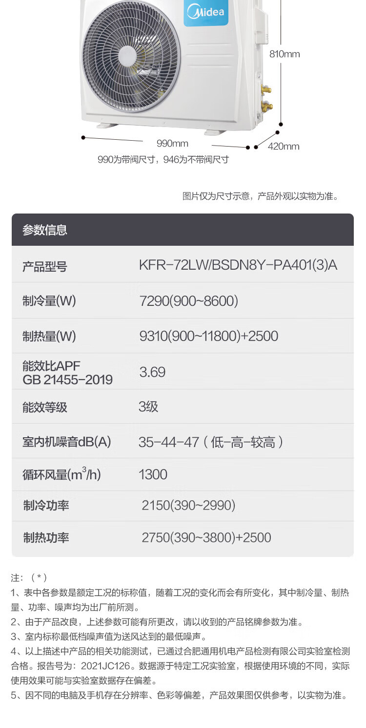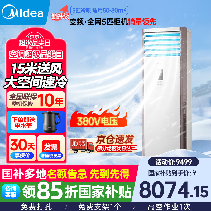 美的(Midea)3匹柜式空调 三级能效 变频冷暖 商用空调380v三相电KFR-72LW/BSDN8Y-PA401(3)A以旧换新京仓京配
