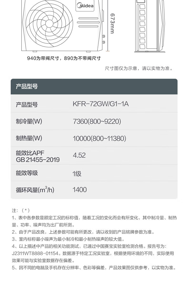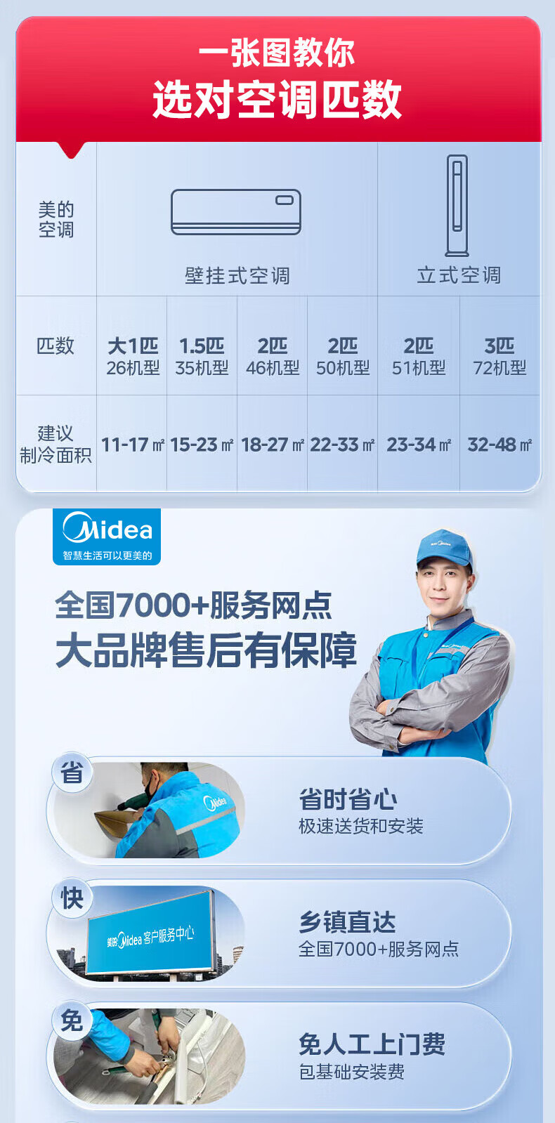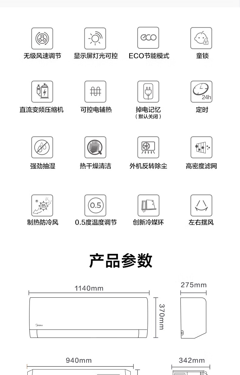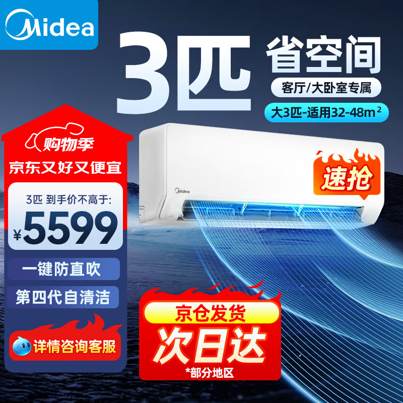 美的(Midea)3匹空调壁挂式 新一级能效 变频冷暖省电 客厅商用 KFR-72GW/G1-1A以旧换新京配一价全包包5米铜管