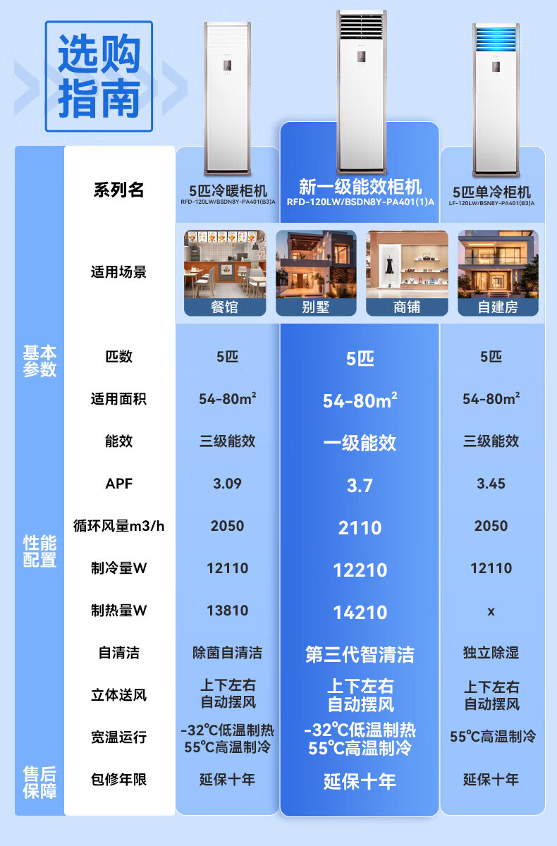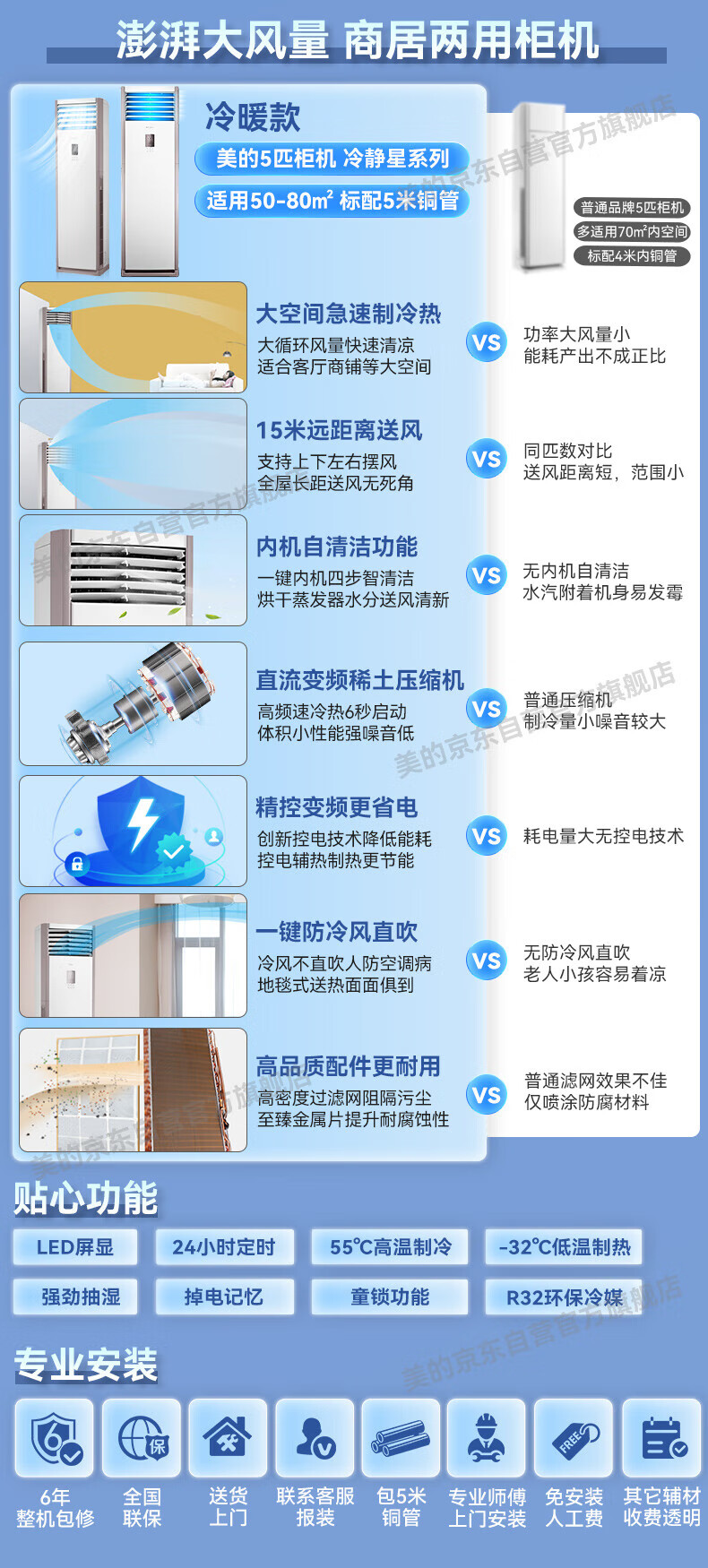 美的(Midea)5匹柜机 新一级能效 变频冷暖 客厅商用柜式空调 RFD-120LW/BSDN8Y-PA401(1)A以旧换新 一价全包