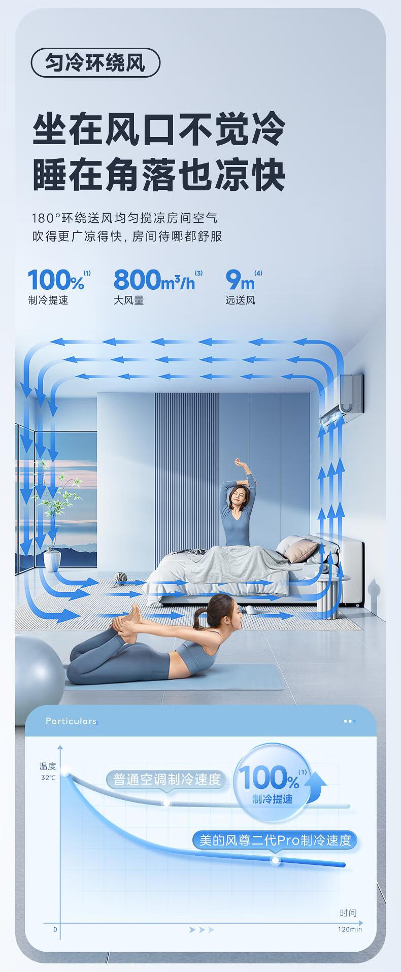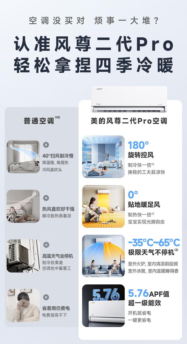 风尊二代 大1匹 舒适风不直吹 180°控风