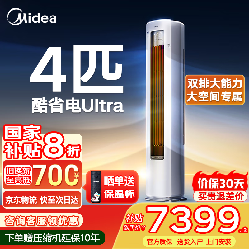 美的(Midea)空调立式大3匹 酷省电柜机升级版 超一级能效 变频节能 冷暖两用 客厅家用大风量空调柜式WiFi智控
