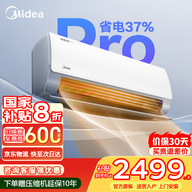 美的(Midea)空调大1.5匹挂机【25年新品】酷省电Pro新一级能效变频节能冷暖两用壁挂式卧室空调防直吹WiFi智控