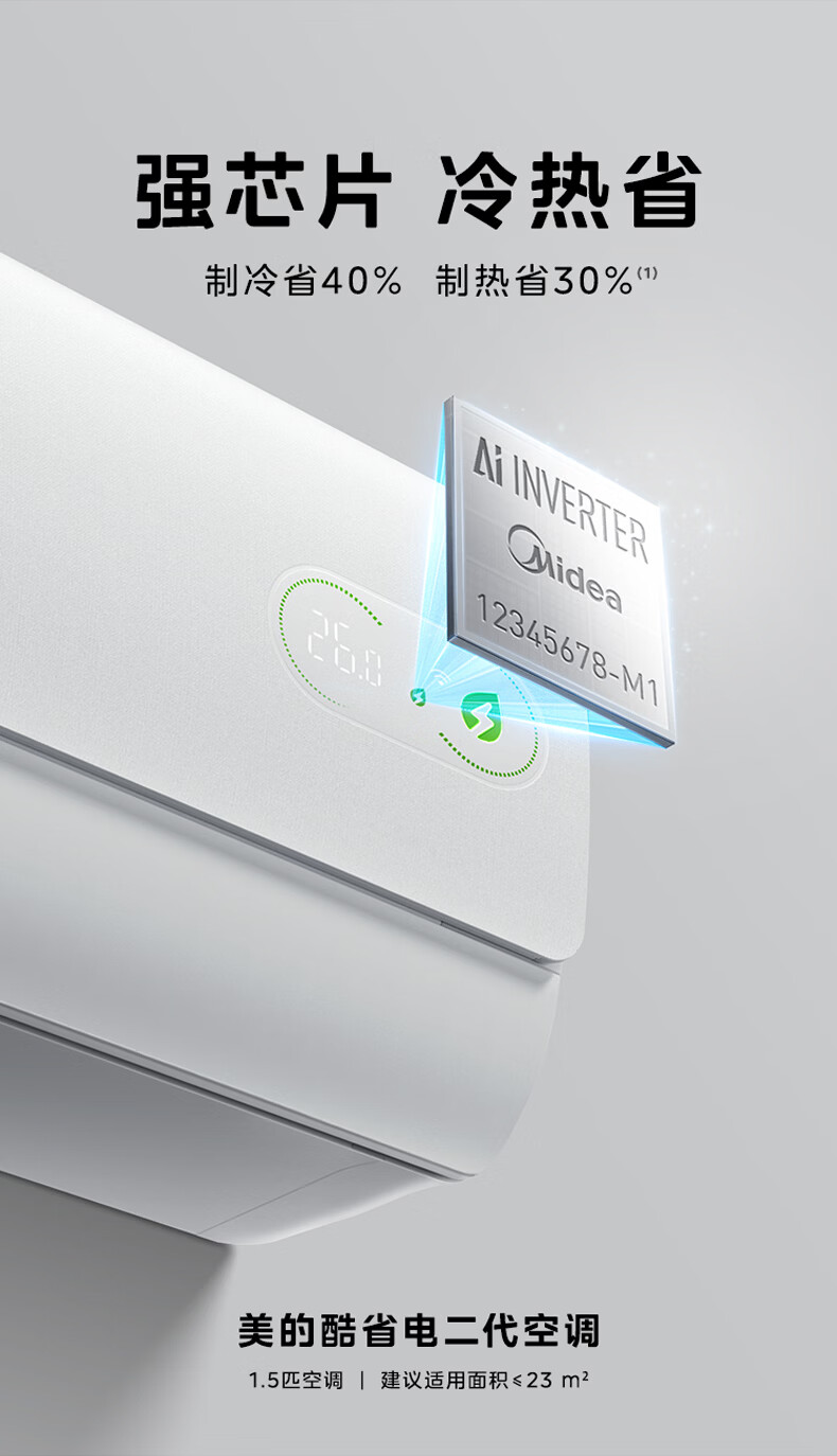 美的(Midea)空调大1.5匹挂机【重磅新品】酷省电二代 新一级 变频节能冷暖两用 壁挂式卧室空调防直吹WiFi智控