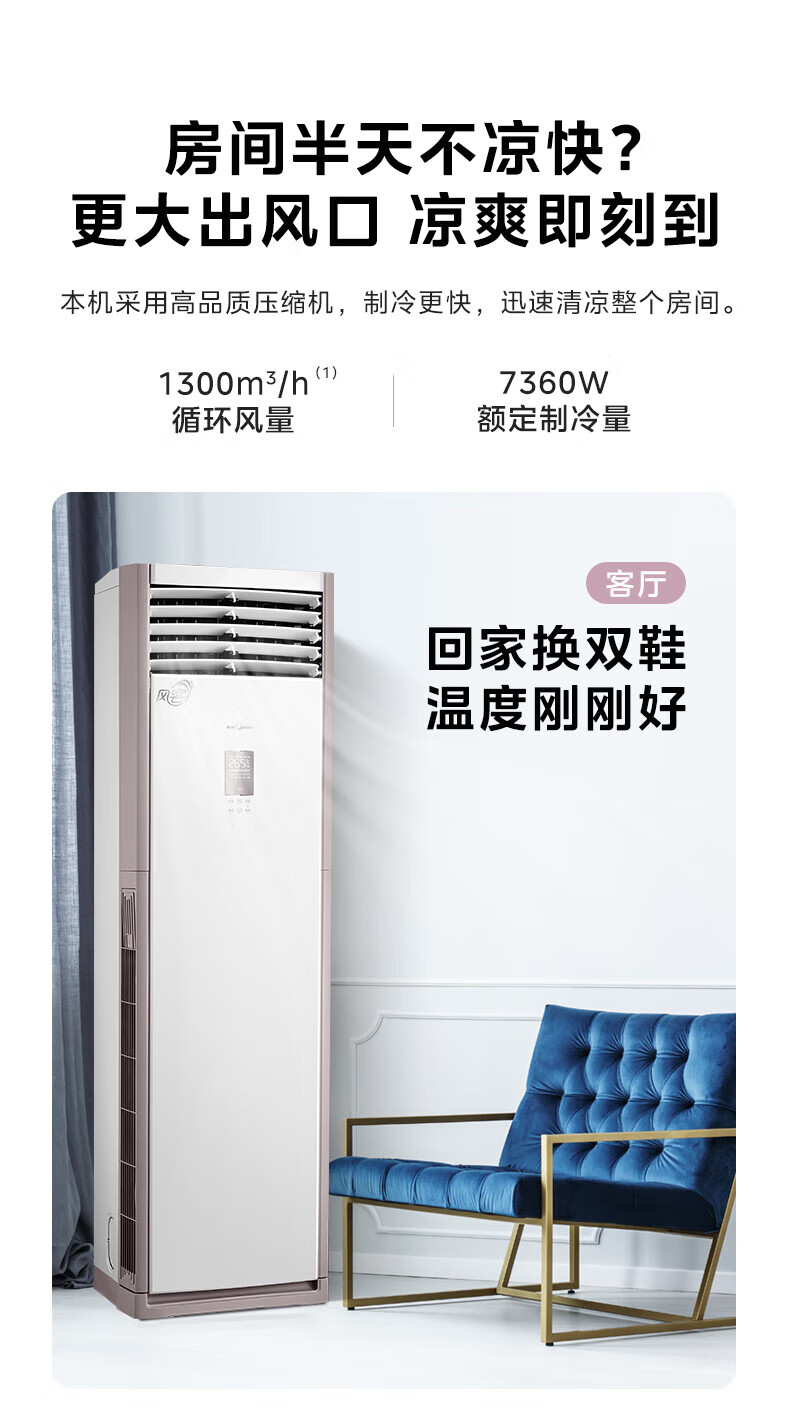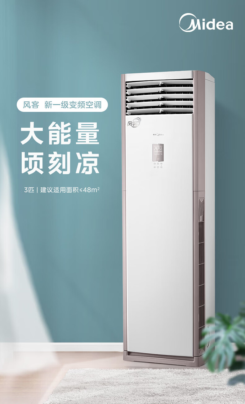美的(Midea)空调大3匹立式柜机【国家补贴】新一级节能变频冷暖 自清洁大风量客厅空调商居两用方柜 3匹 一级能效 循环大风量 速享冷暖