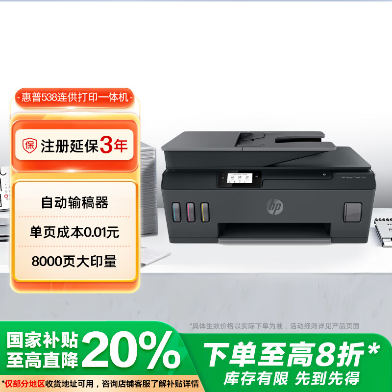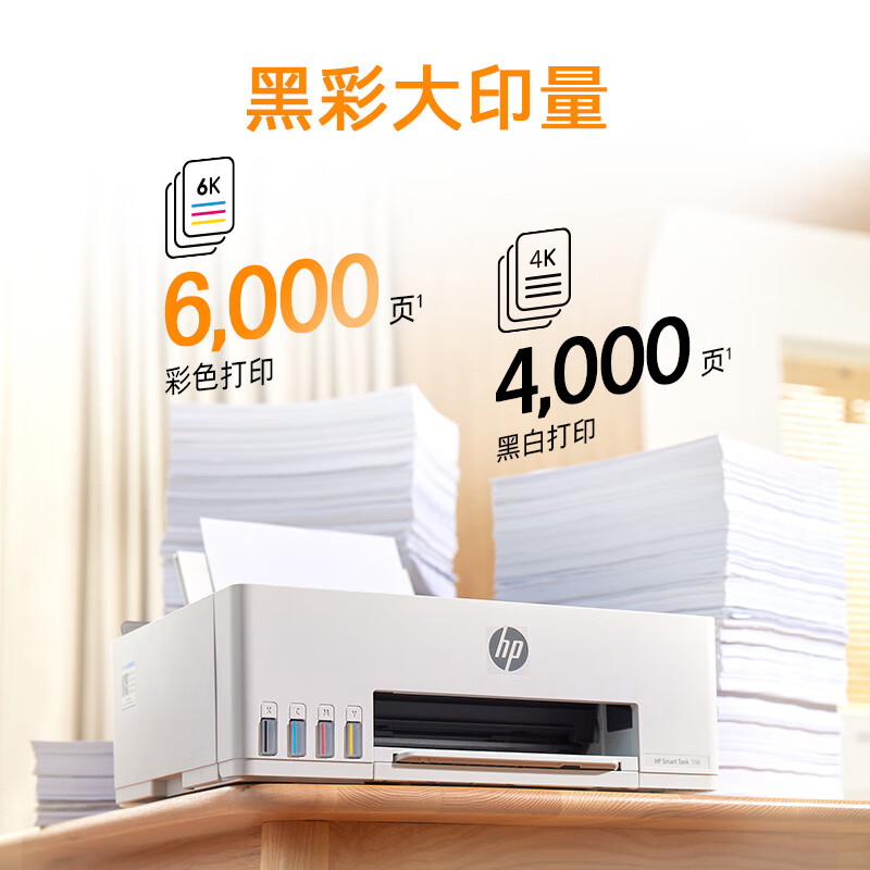 惠普(HP)598 家用学习连供无线打印一体机 大容量可加墨多功能打印复印扫描 彩色家庭打印机
