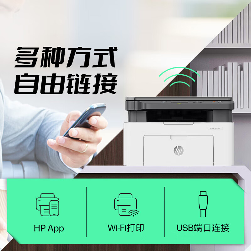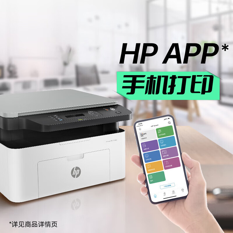 惠普(HP)1136w 黑白激光无线打印机 多功能家用办公打印机 复印扫描无线连接(116w提速版)
