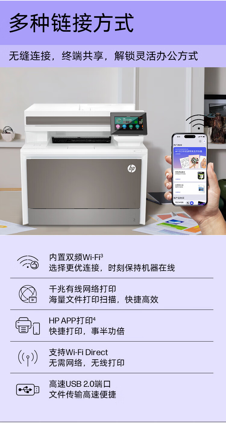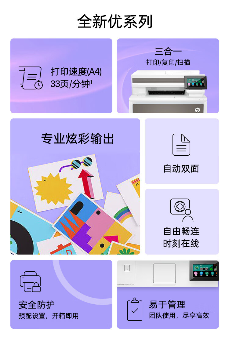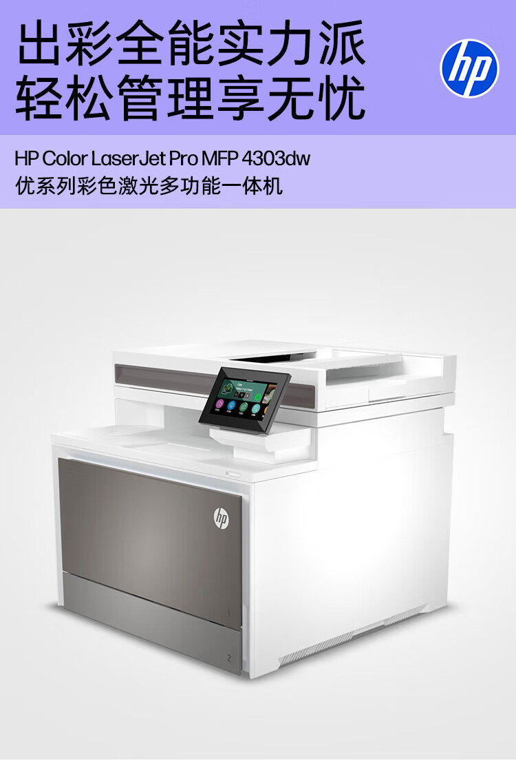 惠普(HP) 4303dw 彩色激光打印机 家用无线多功能一体机 高效办公打印无线双面打印复印扫描