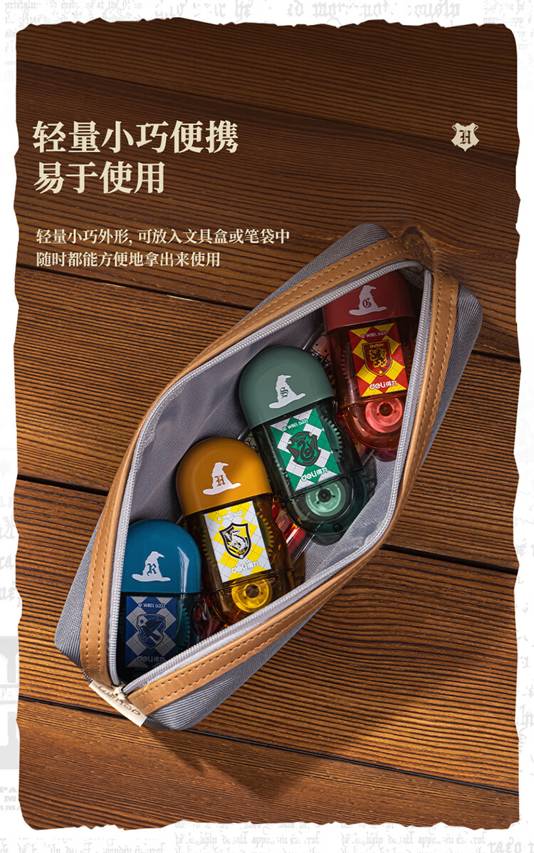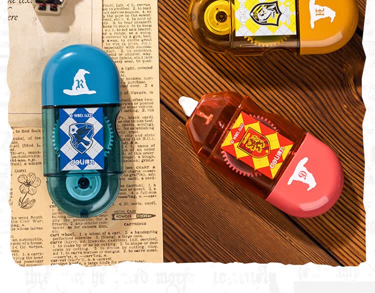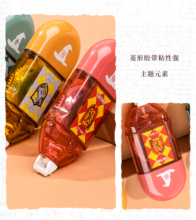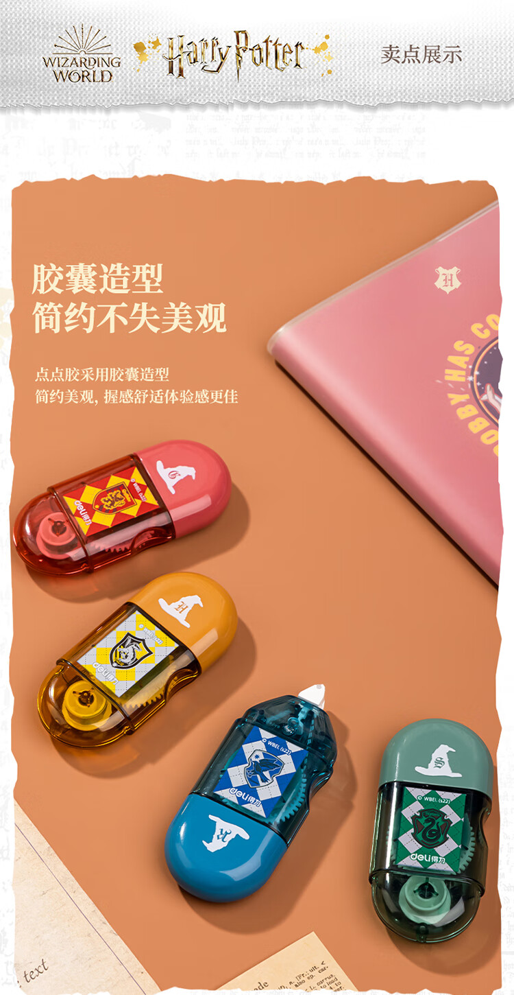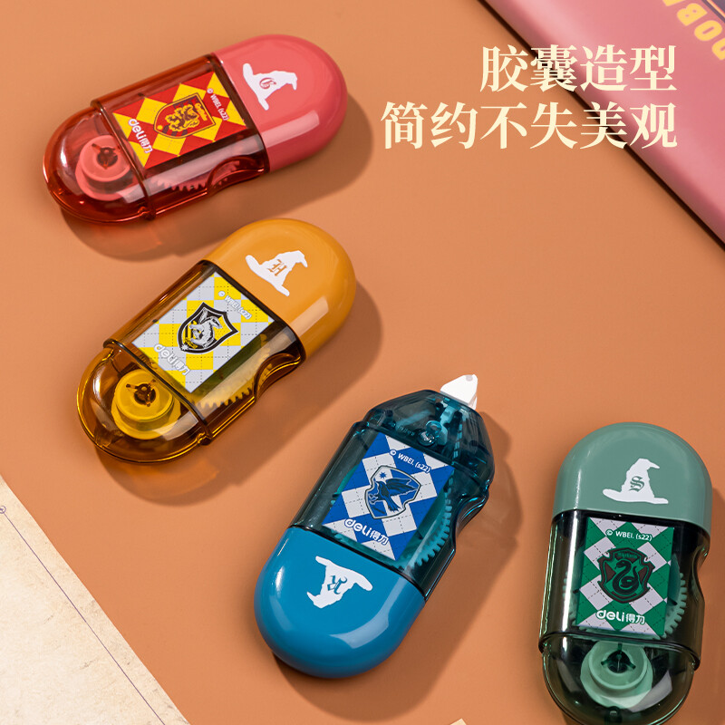 【开学必备】得力哈利·波特迷你胶囊便携点点胶套装 创意手工胶带新型固体胶 四支装颜色随机 54389