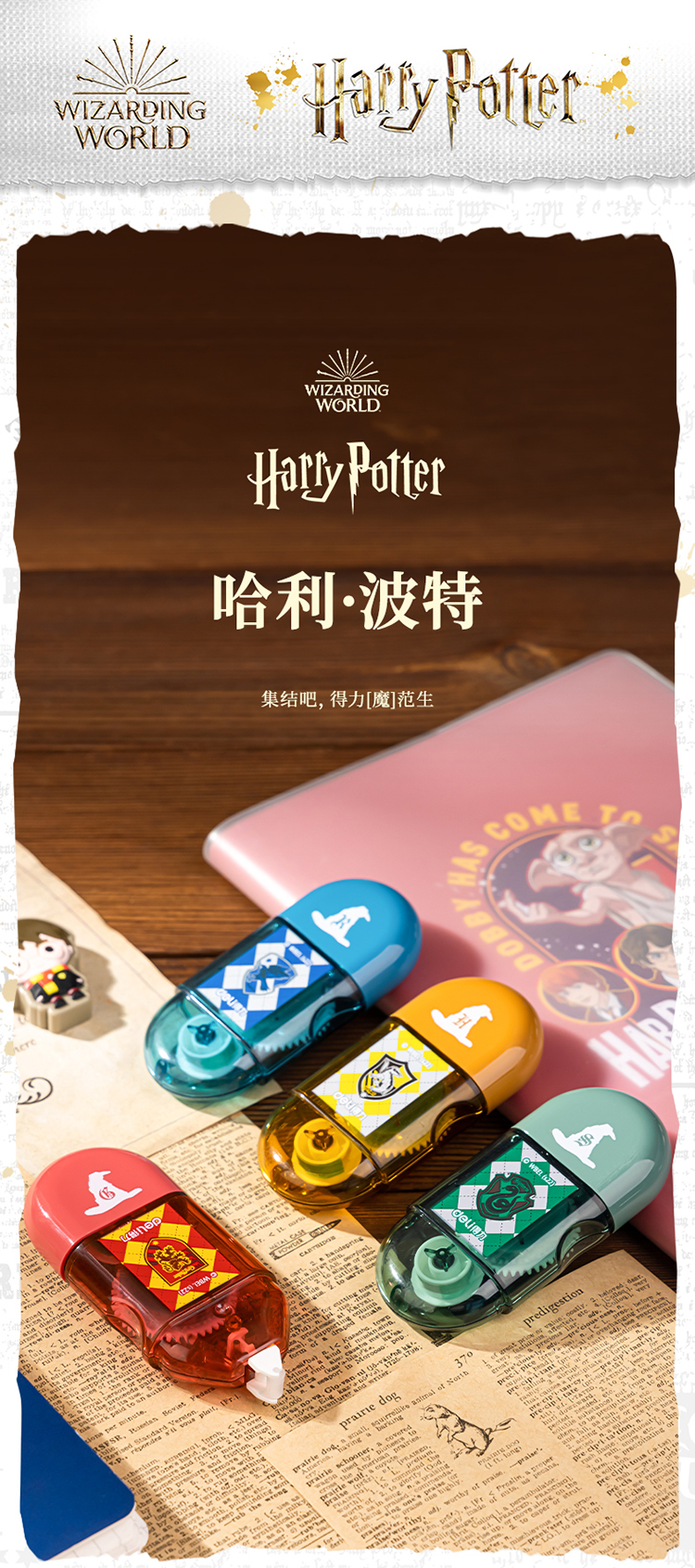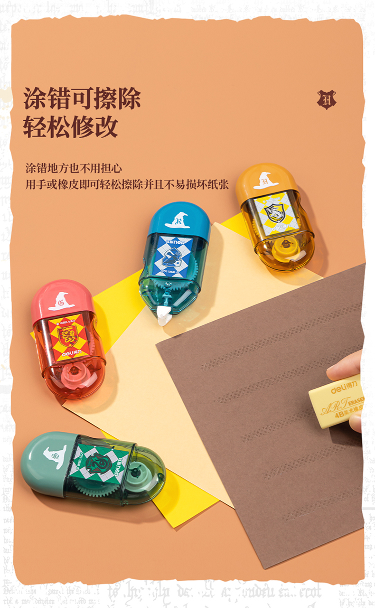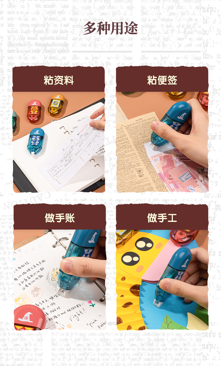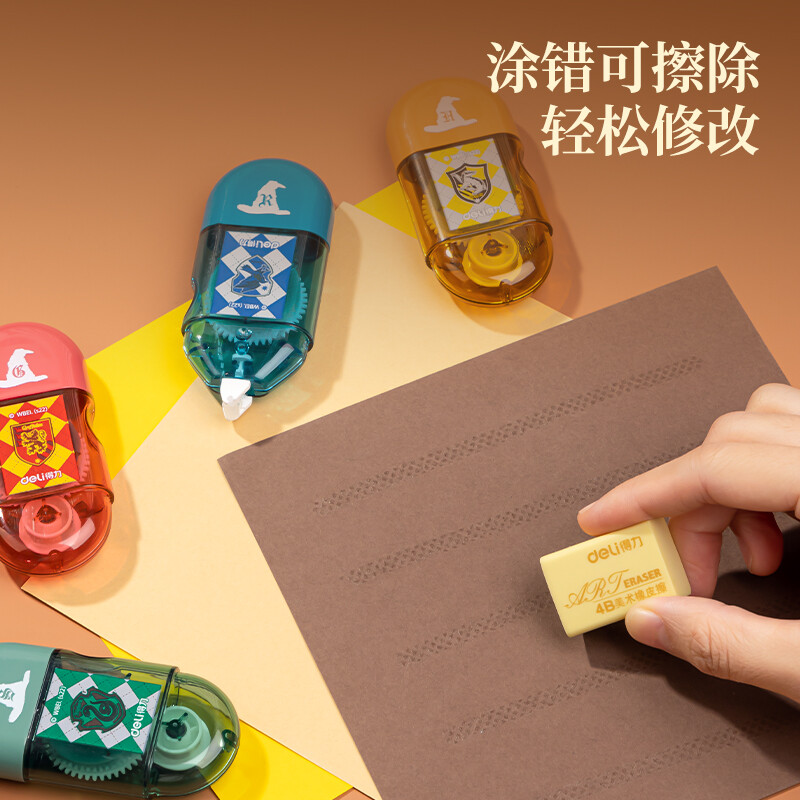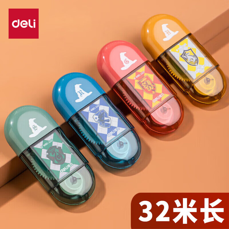 【开学必备】得力哈利·波特迷你胶囊便携点点胶套装 创意手工胶带新型固体胶 四支装颜色随机 54389