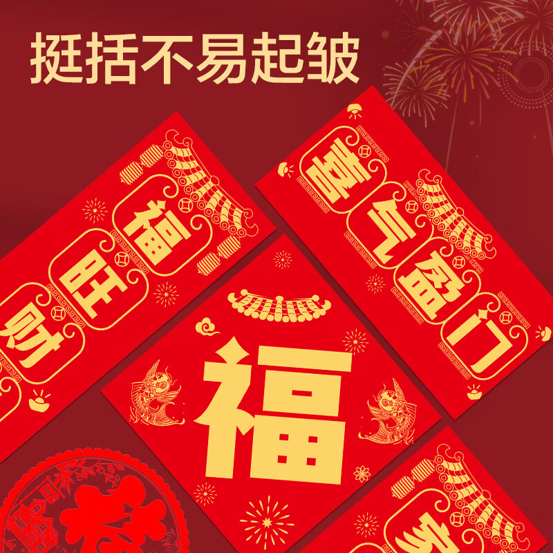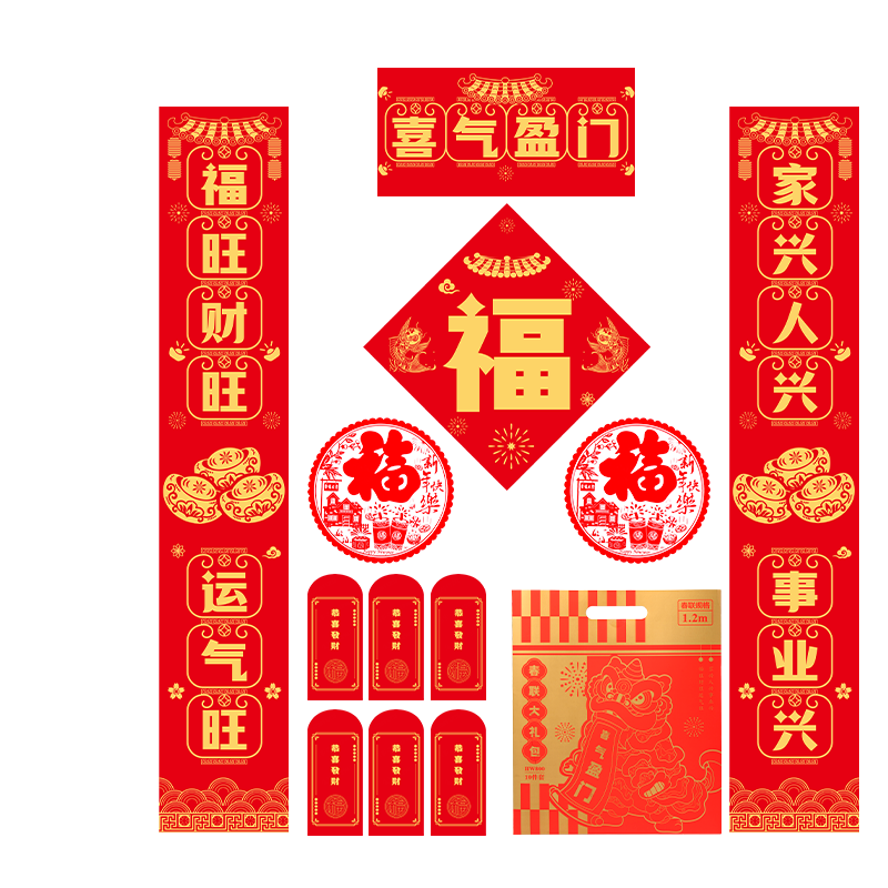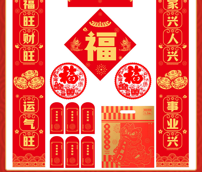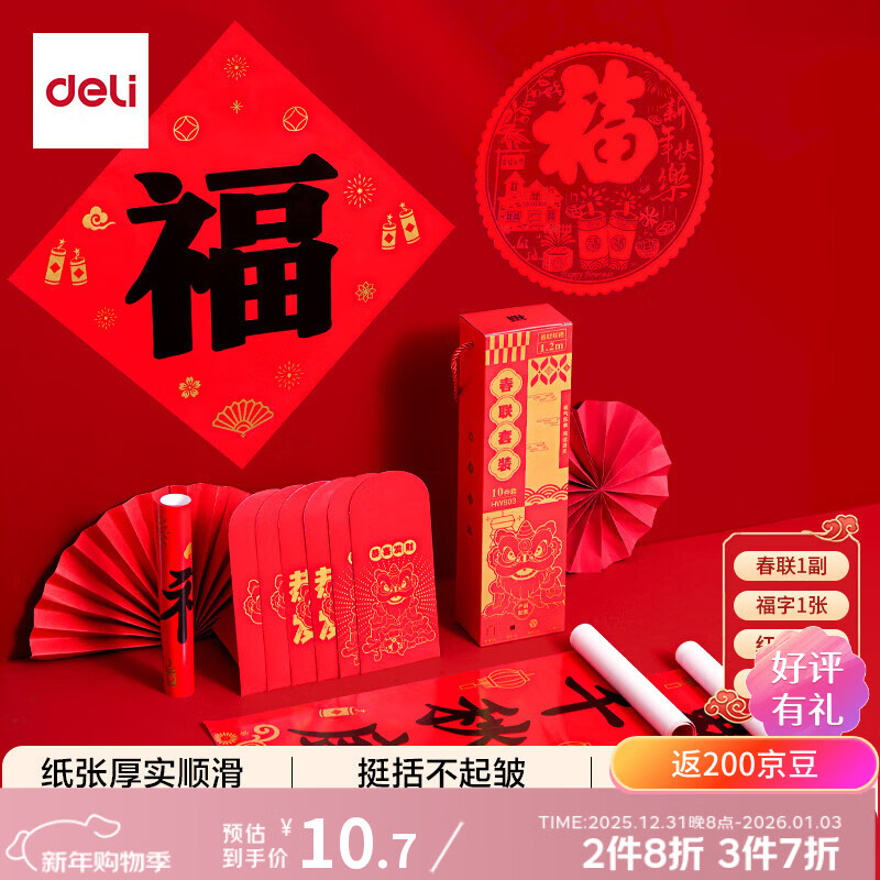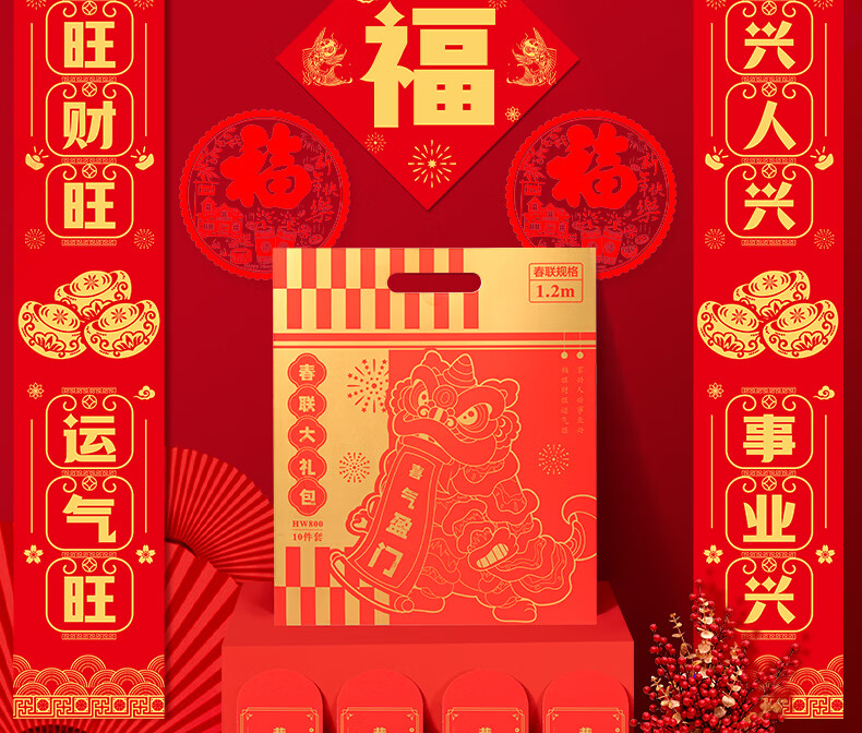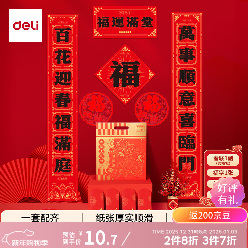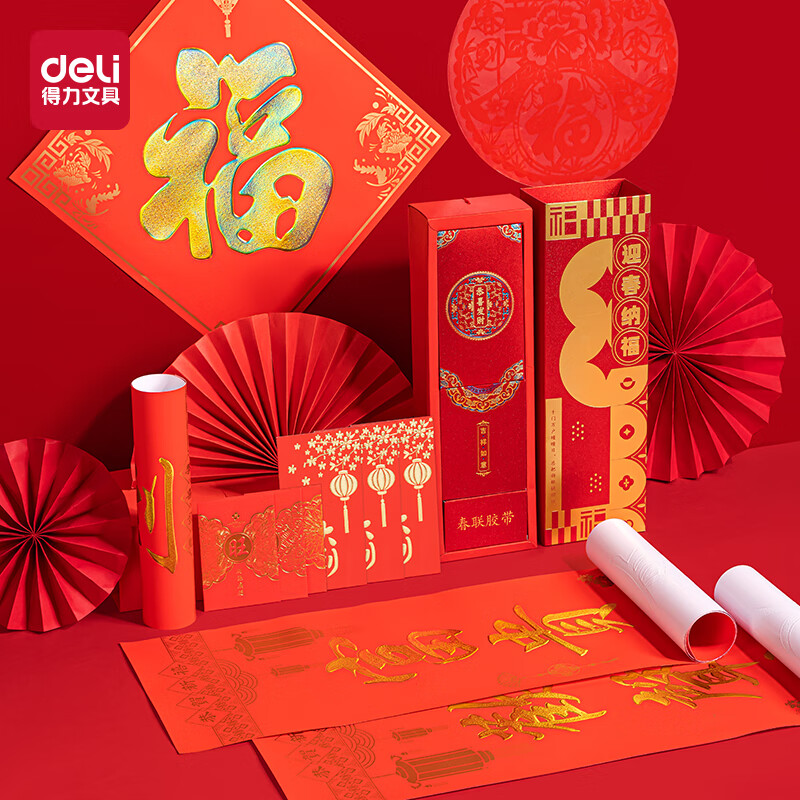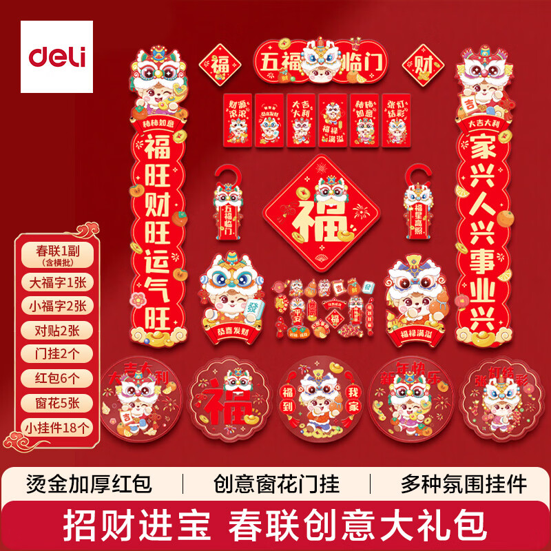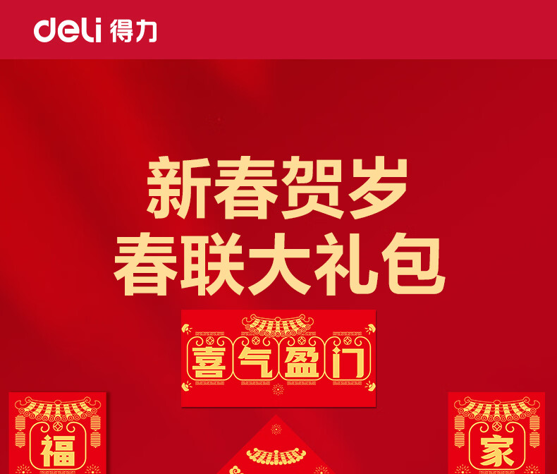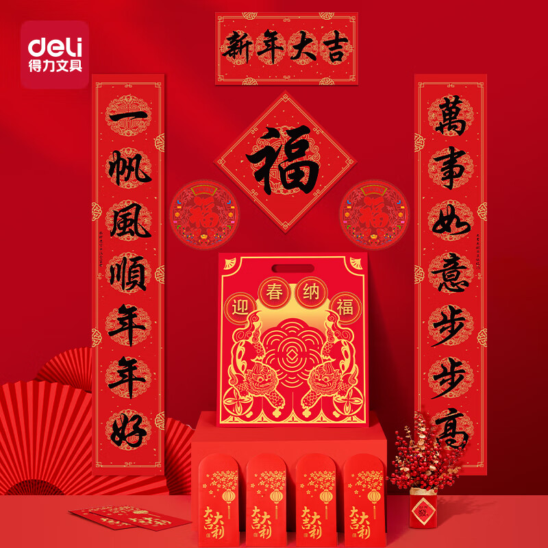 得力对联大礼包新春节贺岁金福马年春联过年红包玻璃窗花装饰套装1.2m