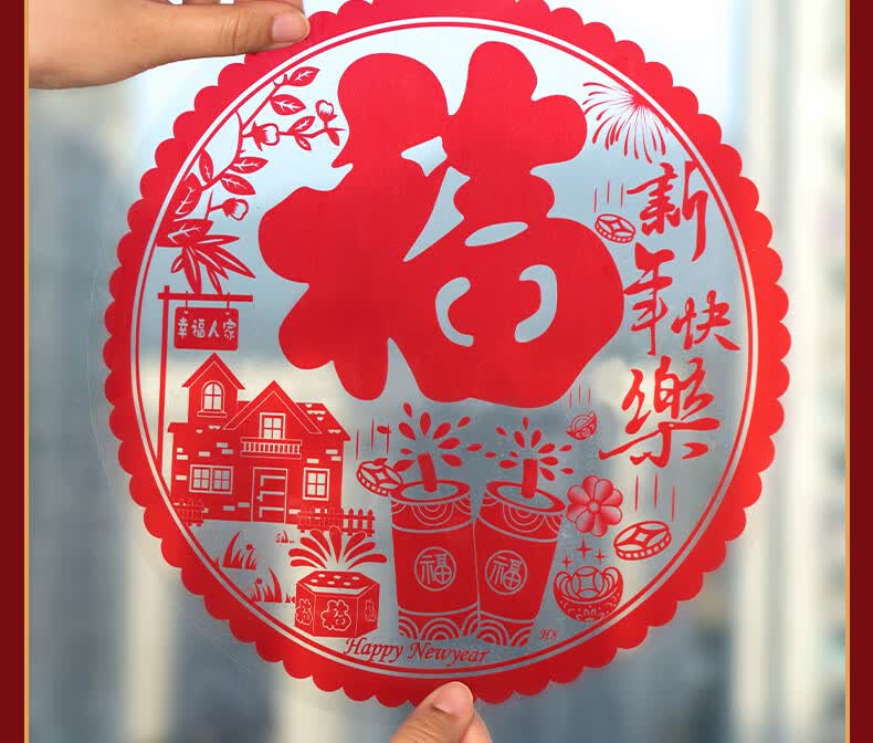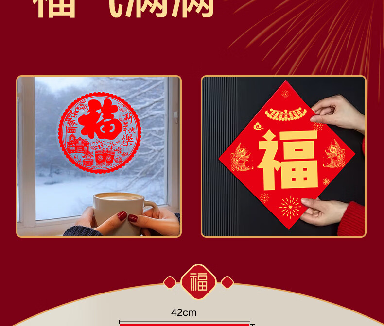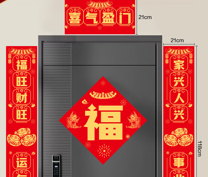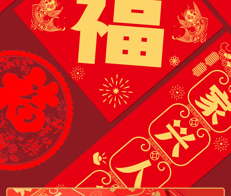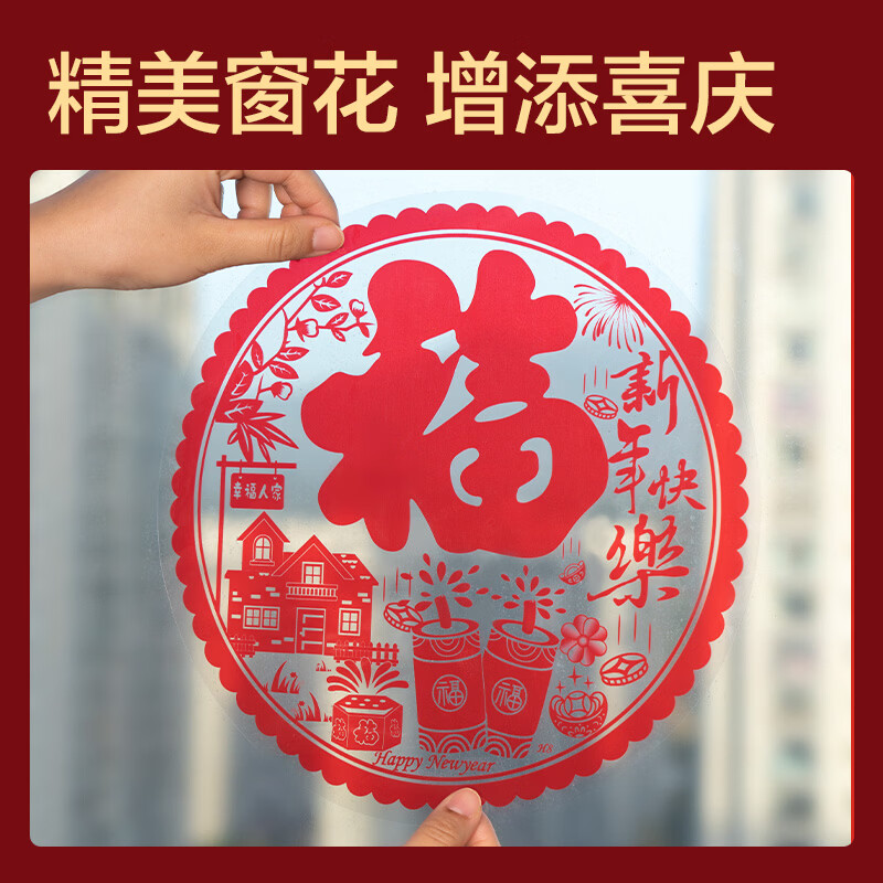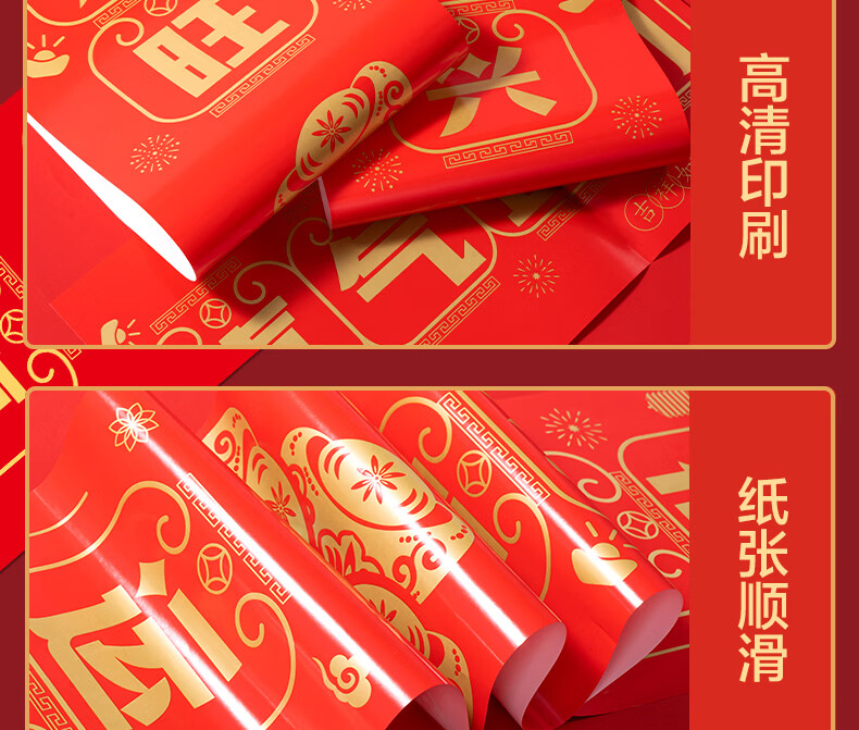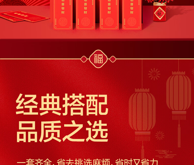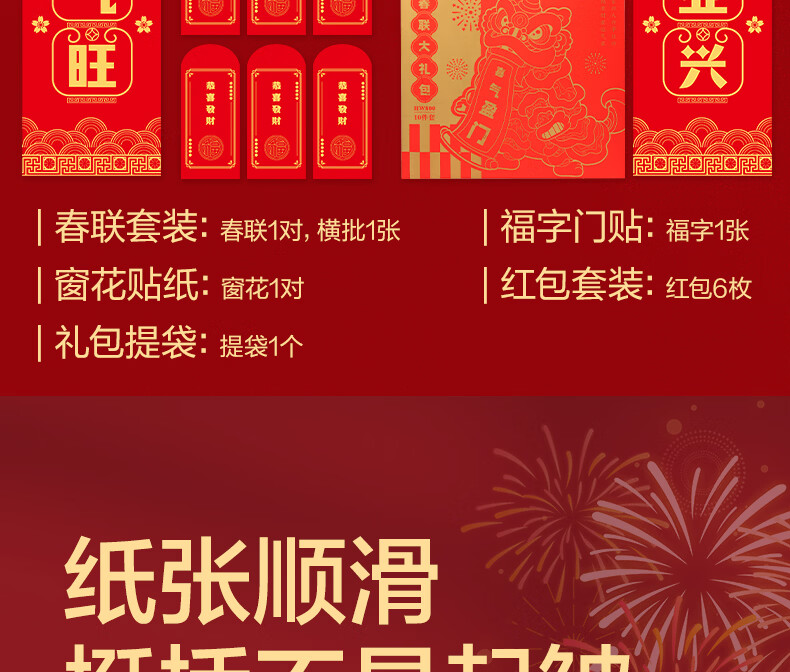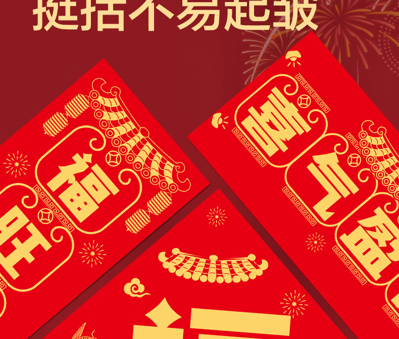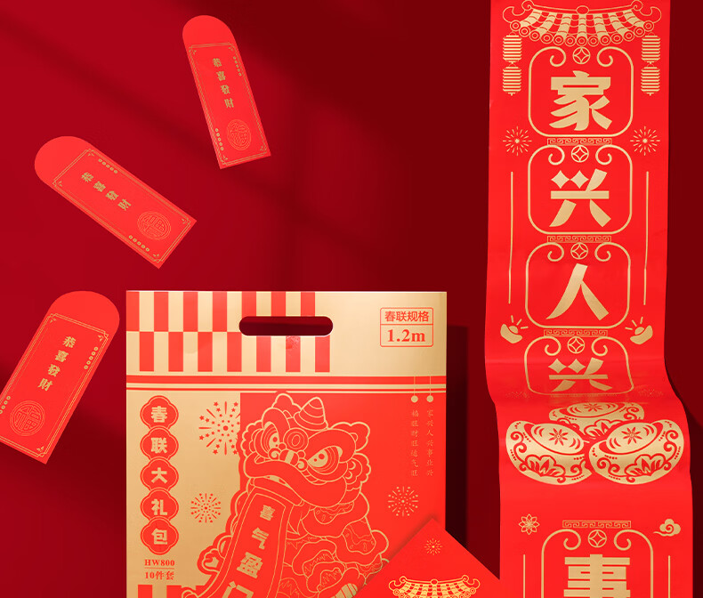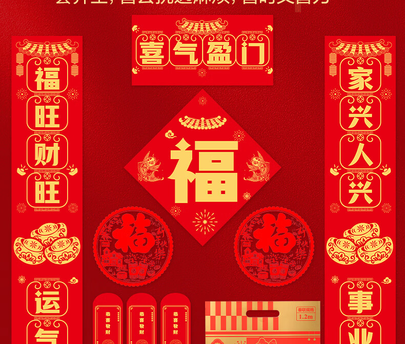 得力对联大礼包新春节贺岁金福马年春联过年红包玻璃窗花装饰套装1.2m