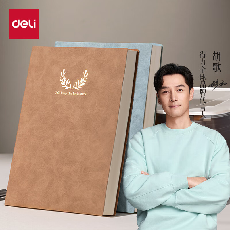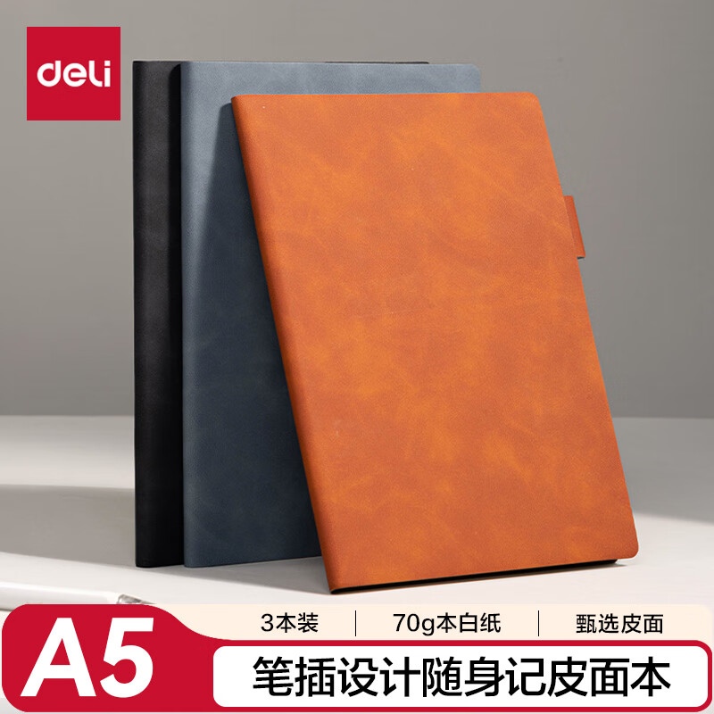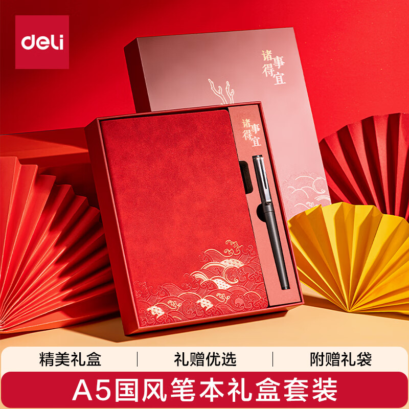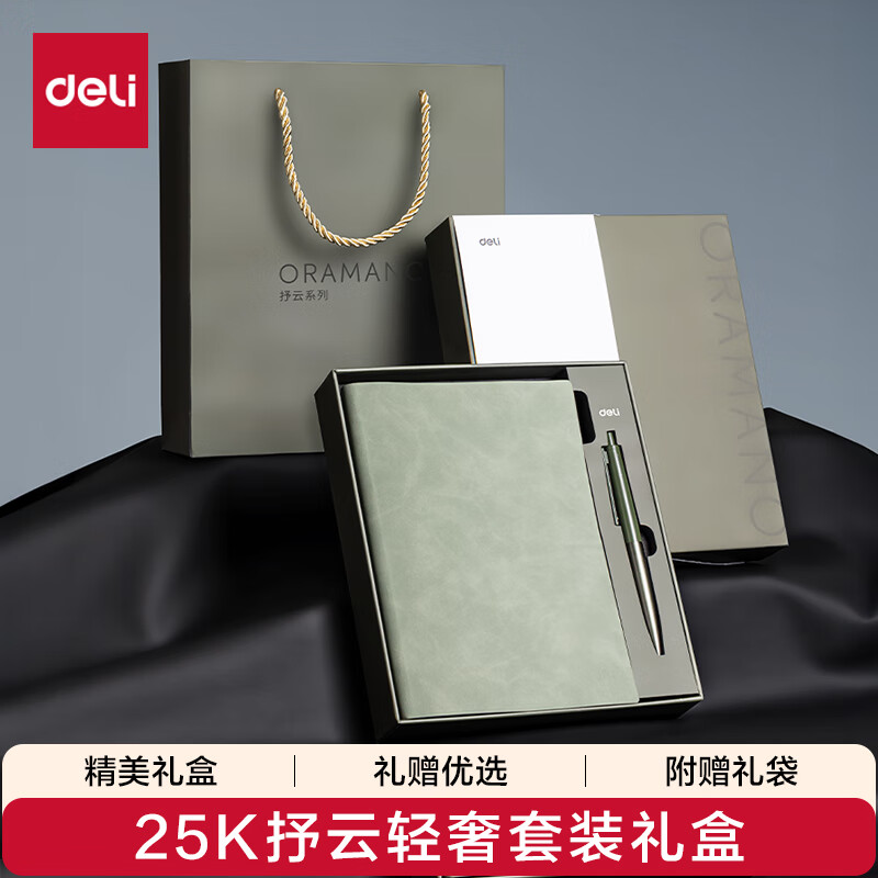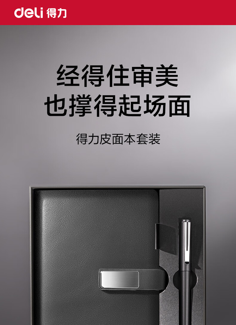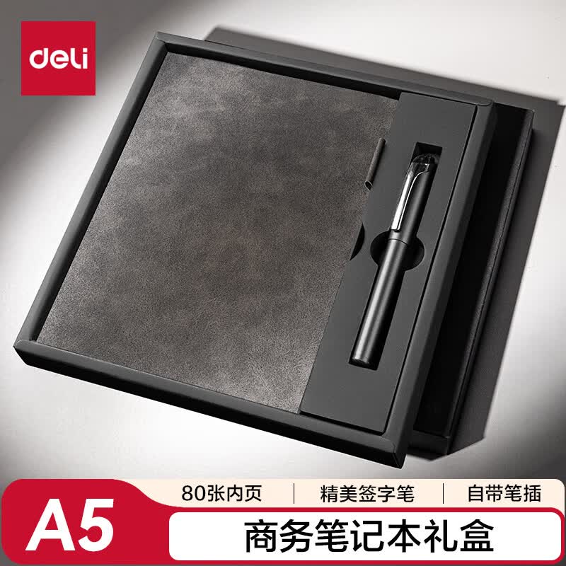 得力(deli)笔记本礼盒A5/80张皮面本精美套装办公礼盒书写礼盒签字笔+搭扣皮面本BP81
