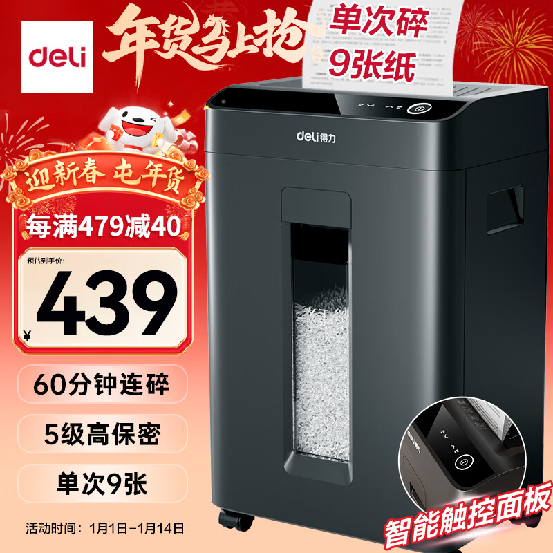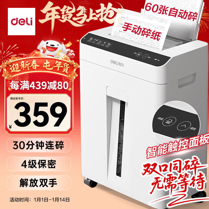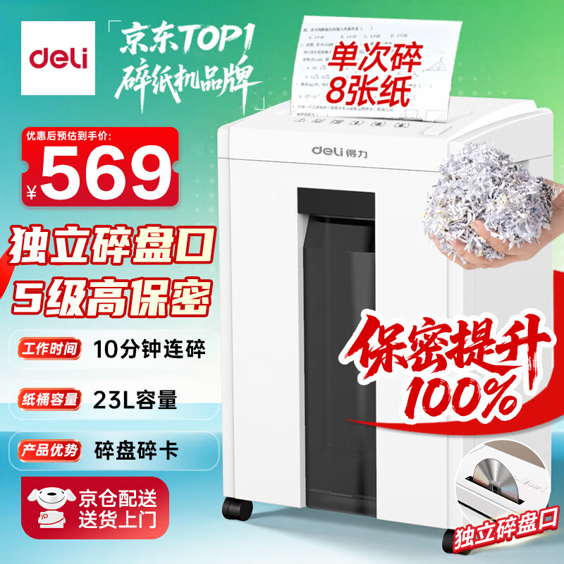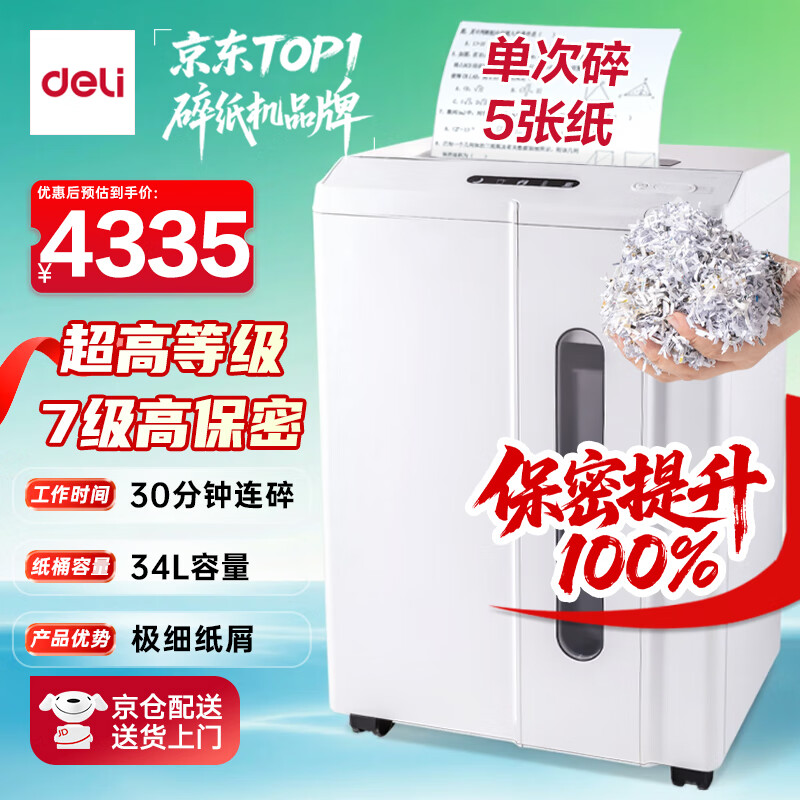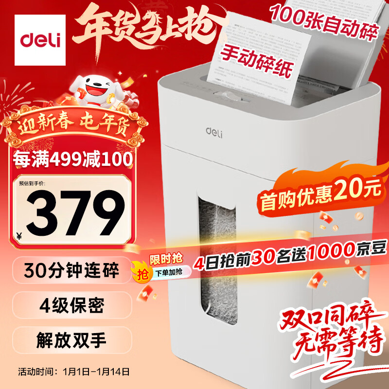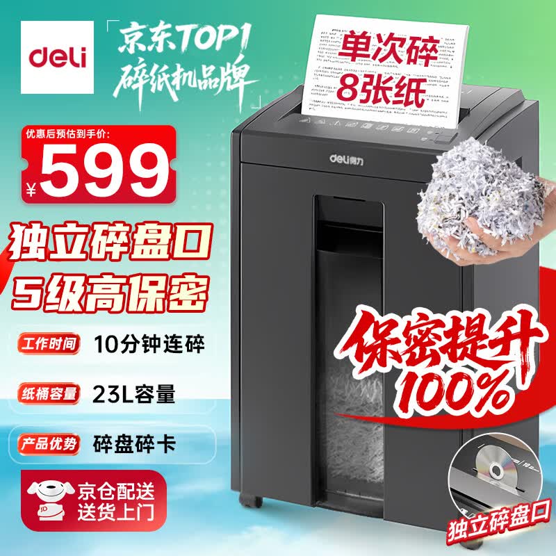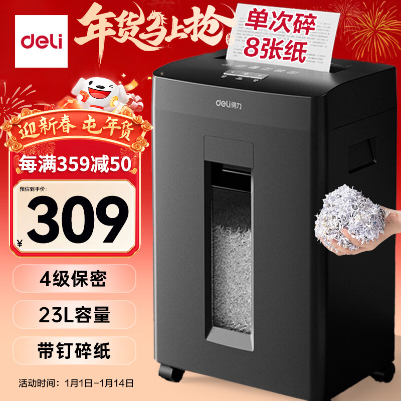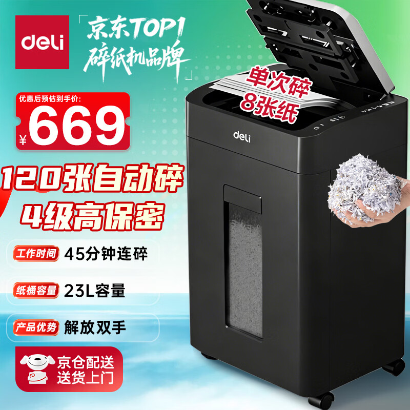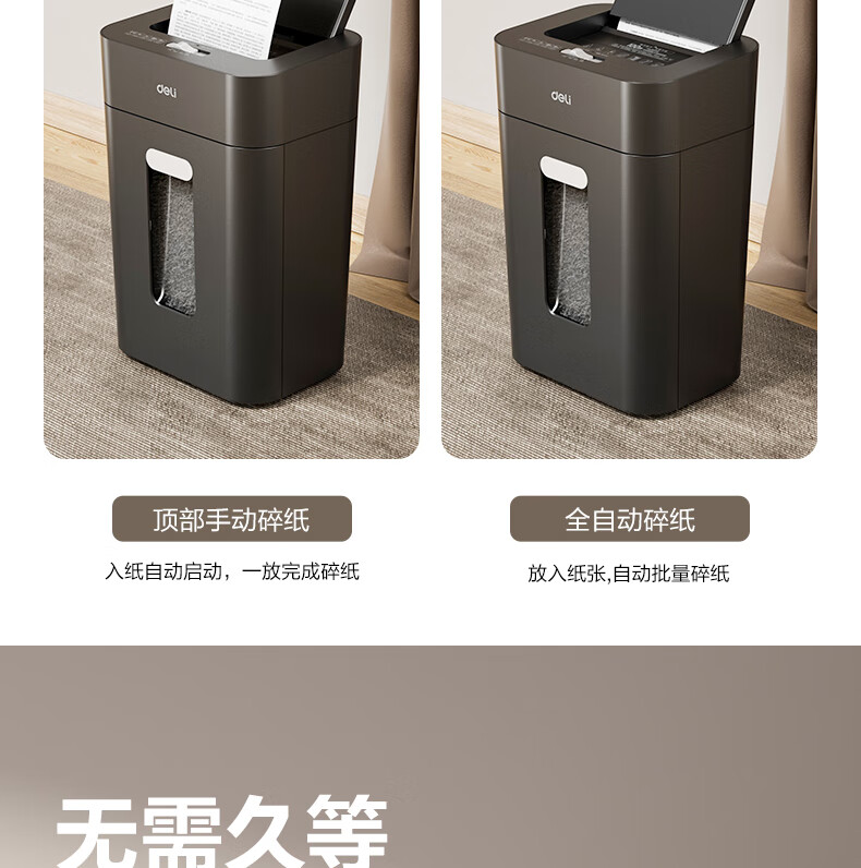 得力自动碎纸机100张30分钟连碎4级保密大型强力办公室专用文件粉碎机 18L托盘式14501
